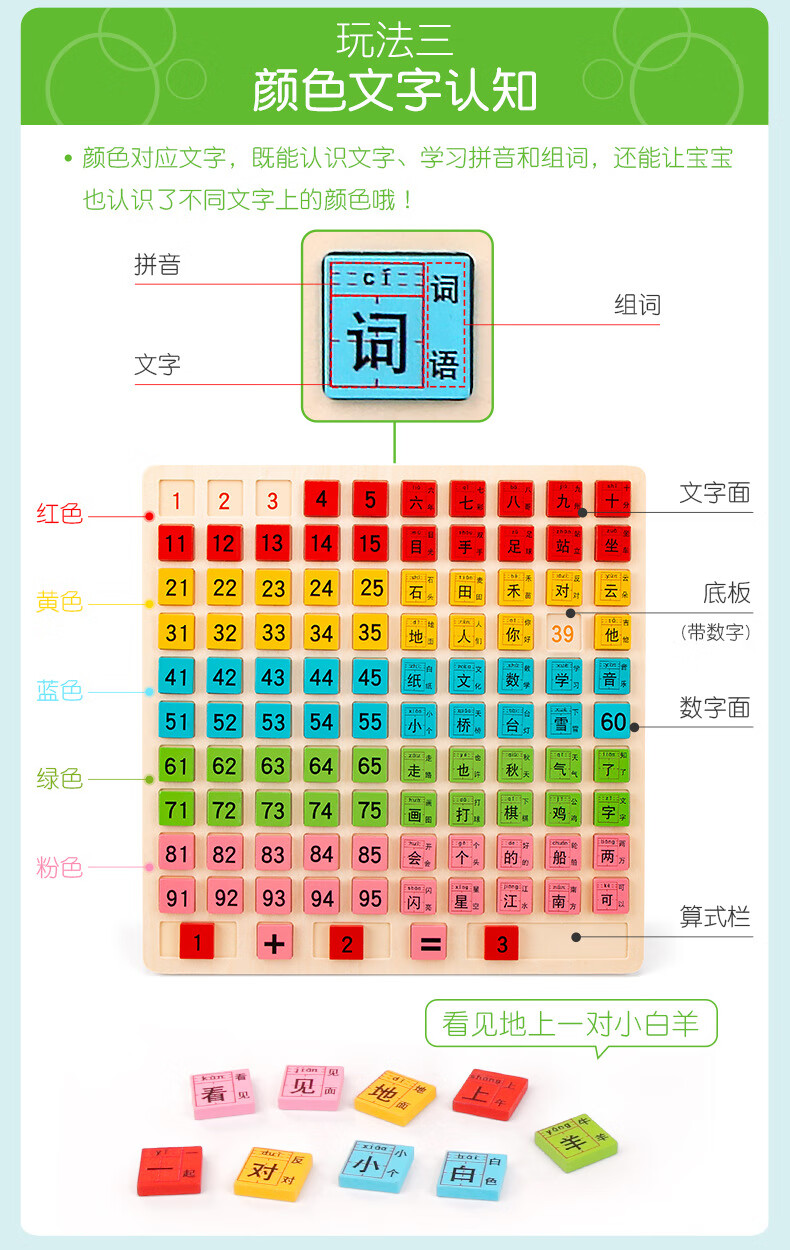 Tableau de comptage de centaines en bois pour l'éducation précoce des enfants, apprentissage des blocs de construction cognitifs, jouets d'addition et de soustraction, outils pédagogiques de première année, tableau de comptage de centaines de caractères chinois double face