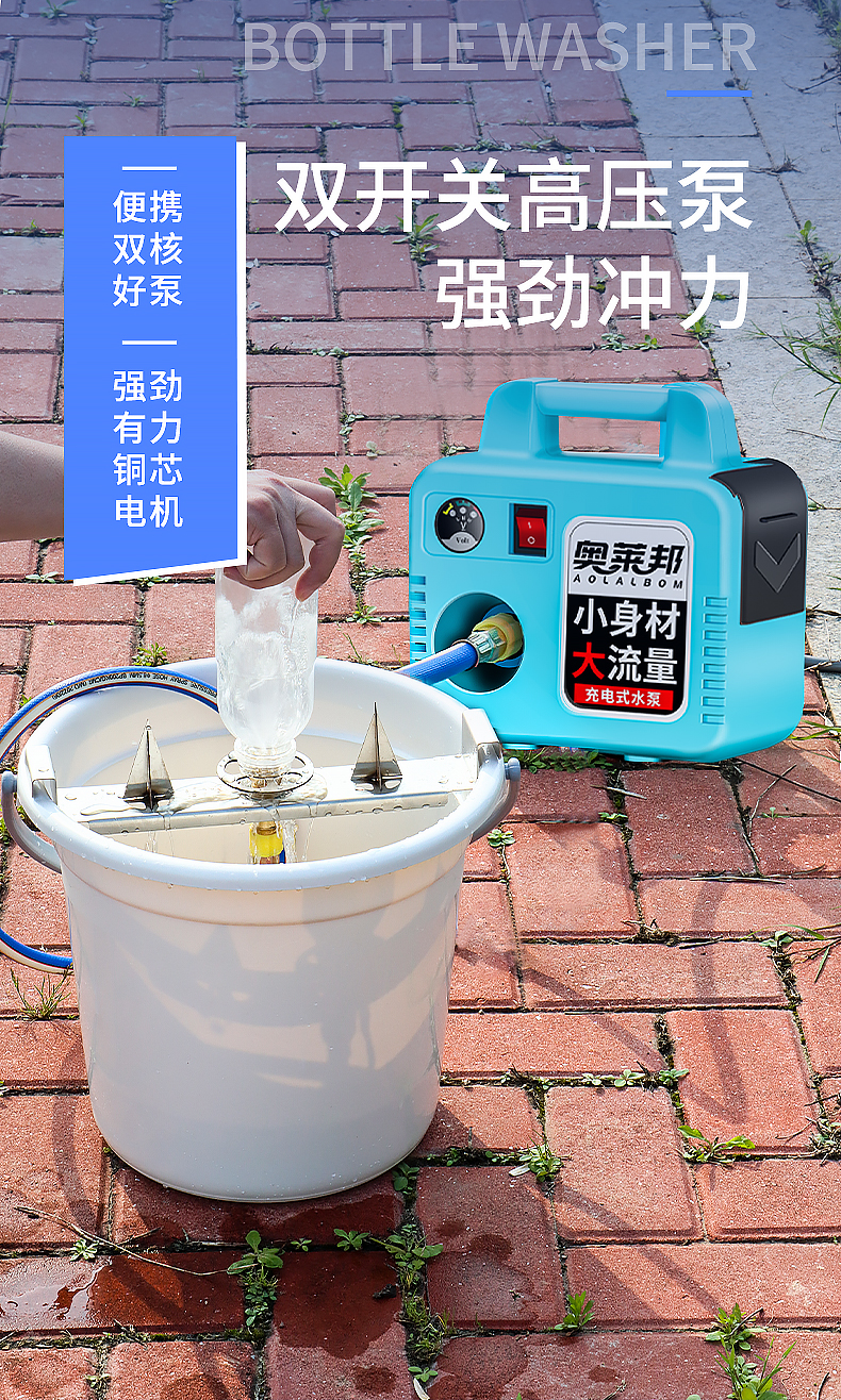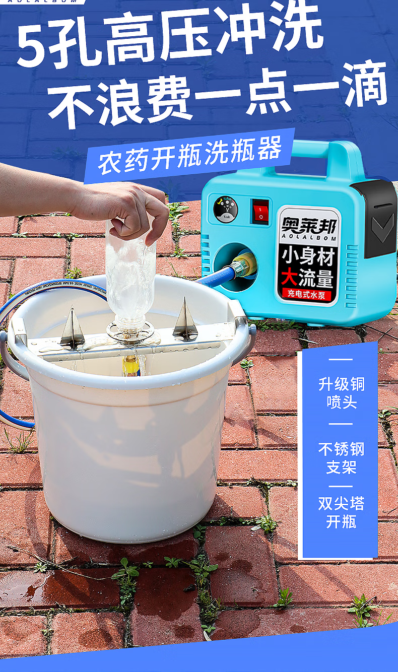 Aolalbom Olaibang ouvre-bouteille de pesticide et lave-bouteille électrique rinçage haute pression entièrement automatique pour mélanger les médicaments et empêcher les médicaments de voler, artefact de nettoyage des bouteilles de médicaments support de dragon à double tête + pompe d'endurance King A826