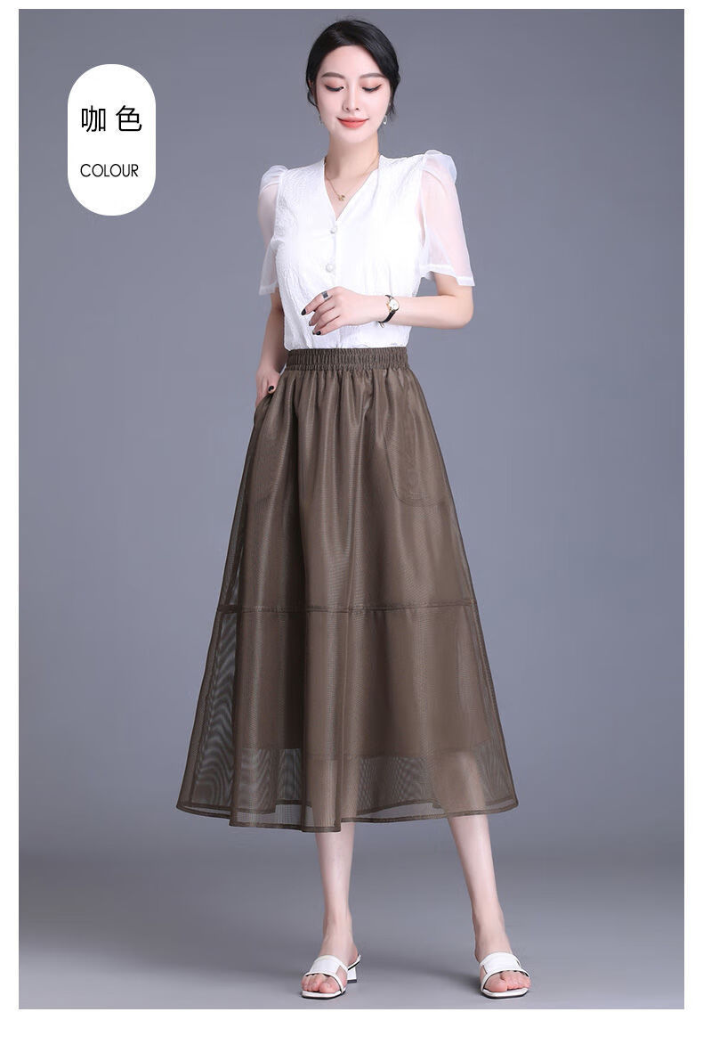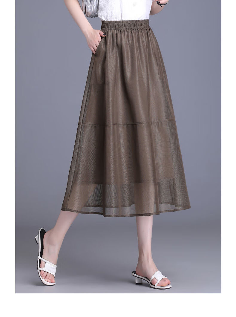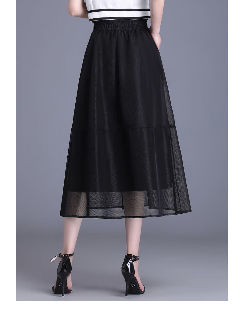 AEMAPE high waist mesh large hem A-line half-length gauze skirt 2025 new summer design simple and fashionable mid-length skirt 9902 long gauze skirt black one size (95-130Jin Jin equals 0.5 kg)
