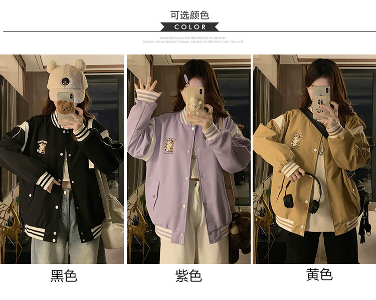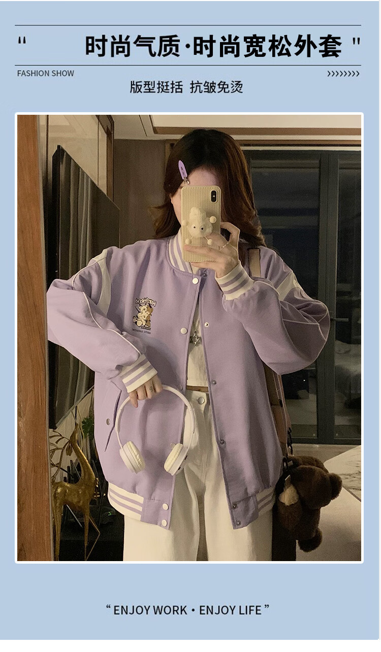 MXQP学院风棒球服外套女春秋季新款宽松休闲拼接撞色设计感立领上衣潮 1047粉色 L 【110-120斤】