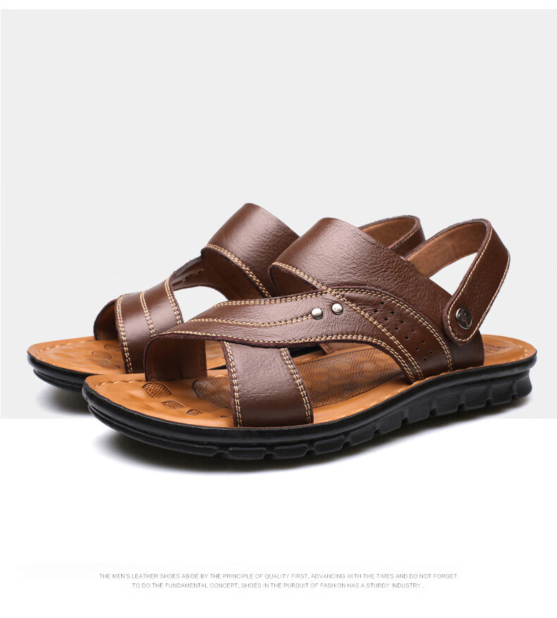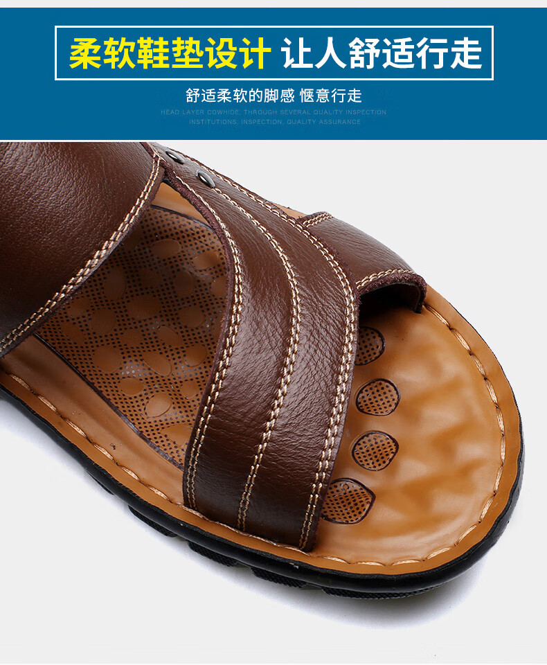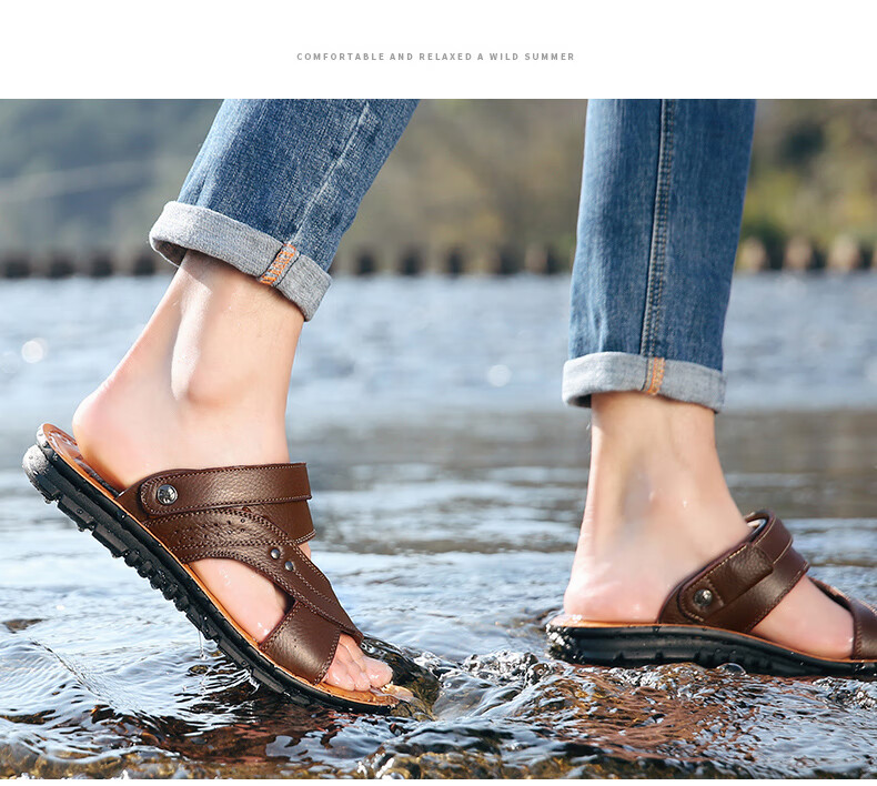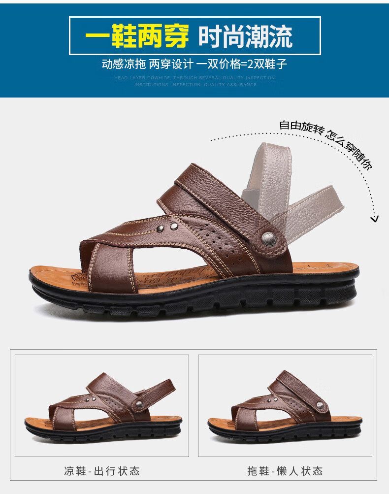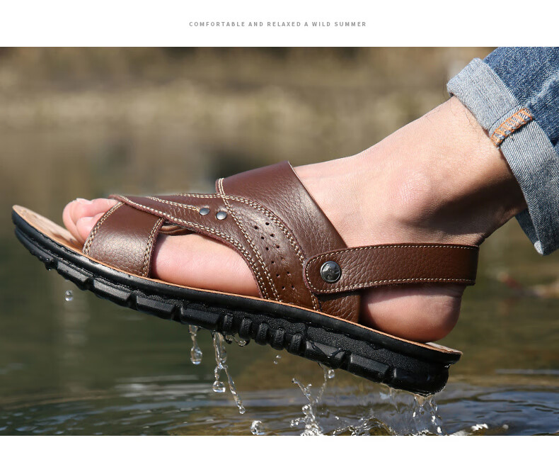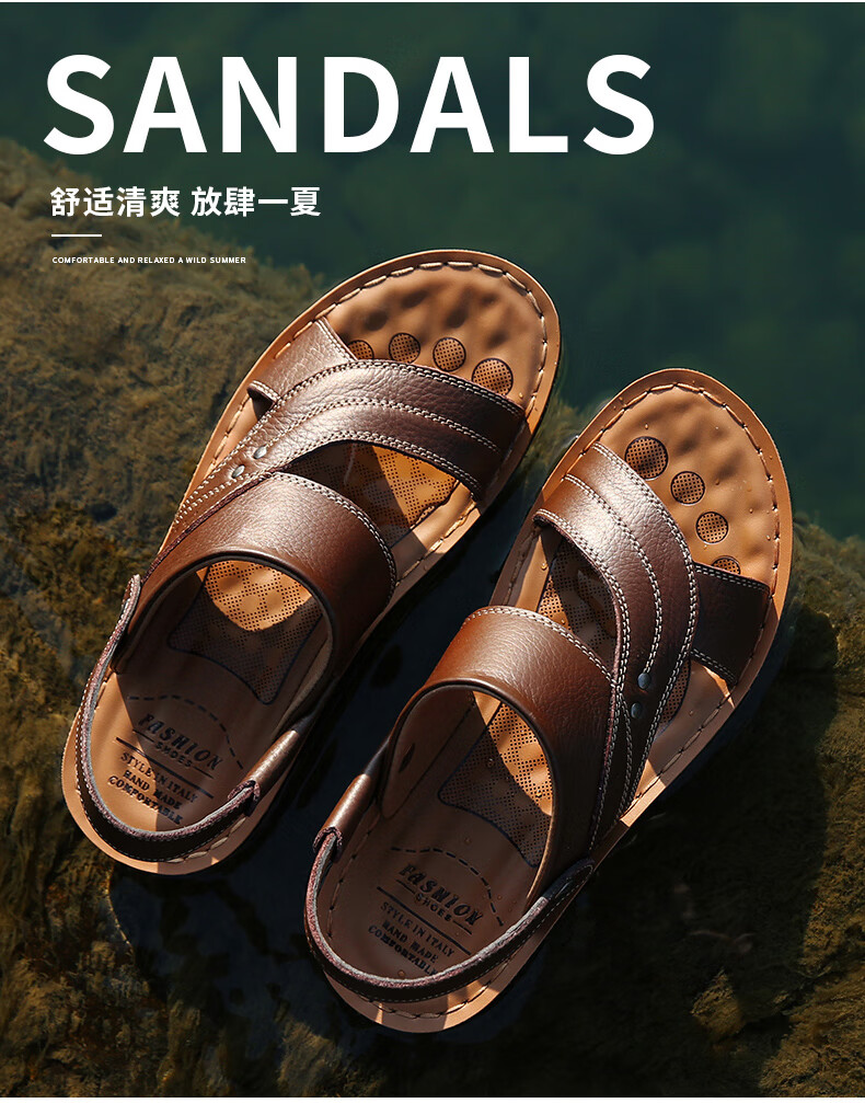 蜻蜓牌2025夏季新款一字拖鞋男士防滑大码潮凉拖两用皮凉鞋男鞋沙滩鞋 棕色12129 41