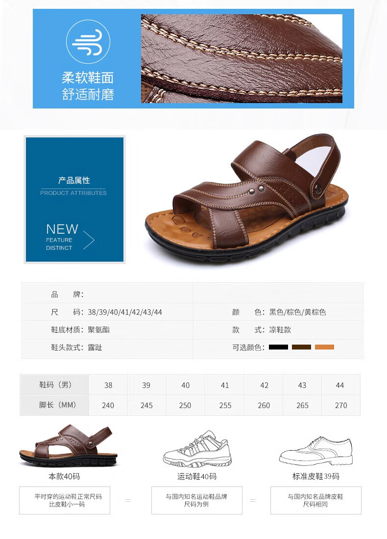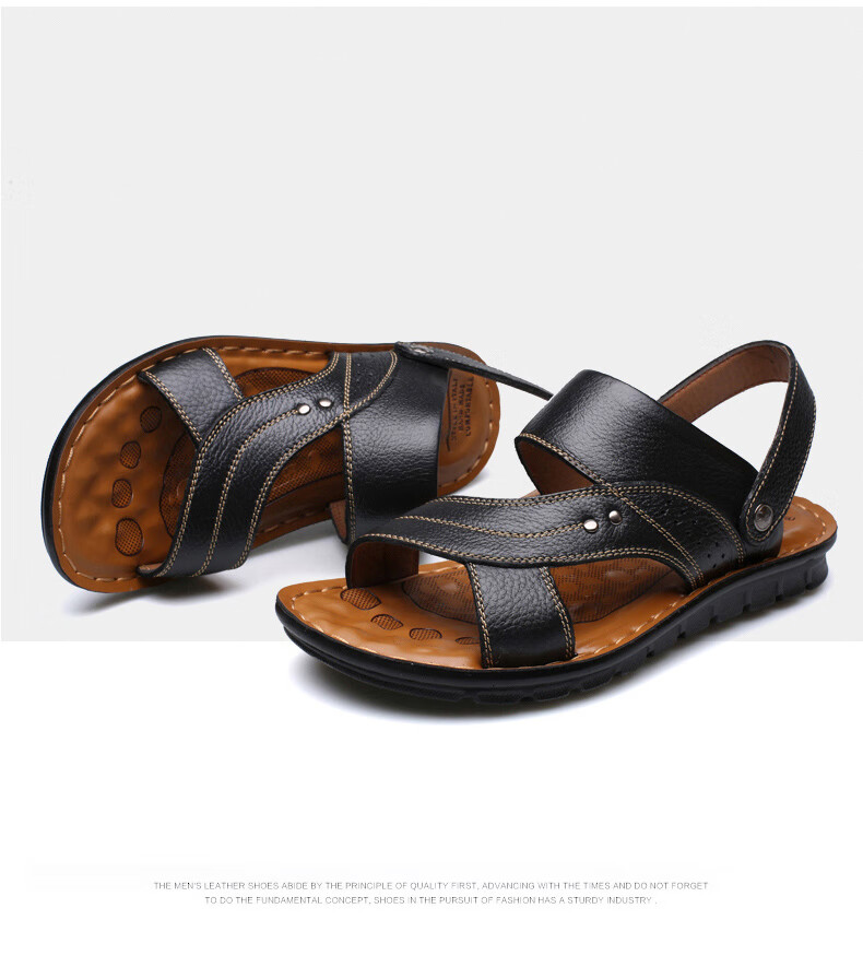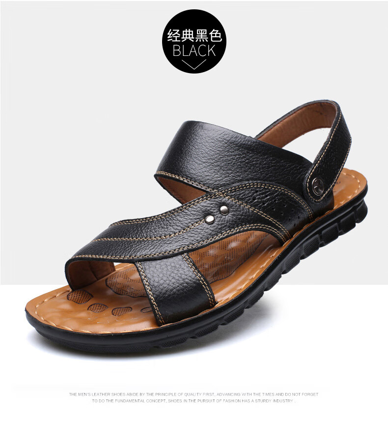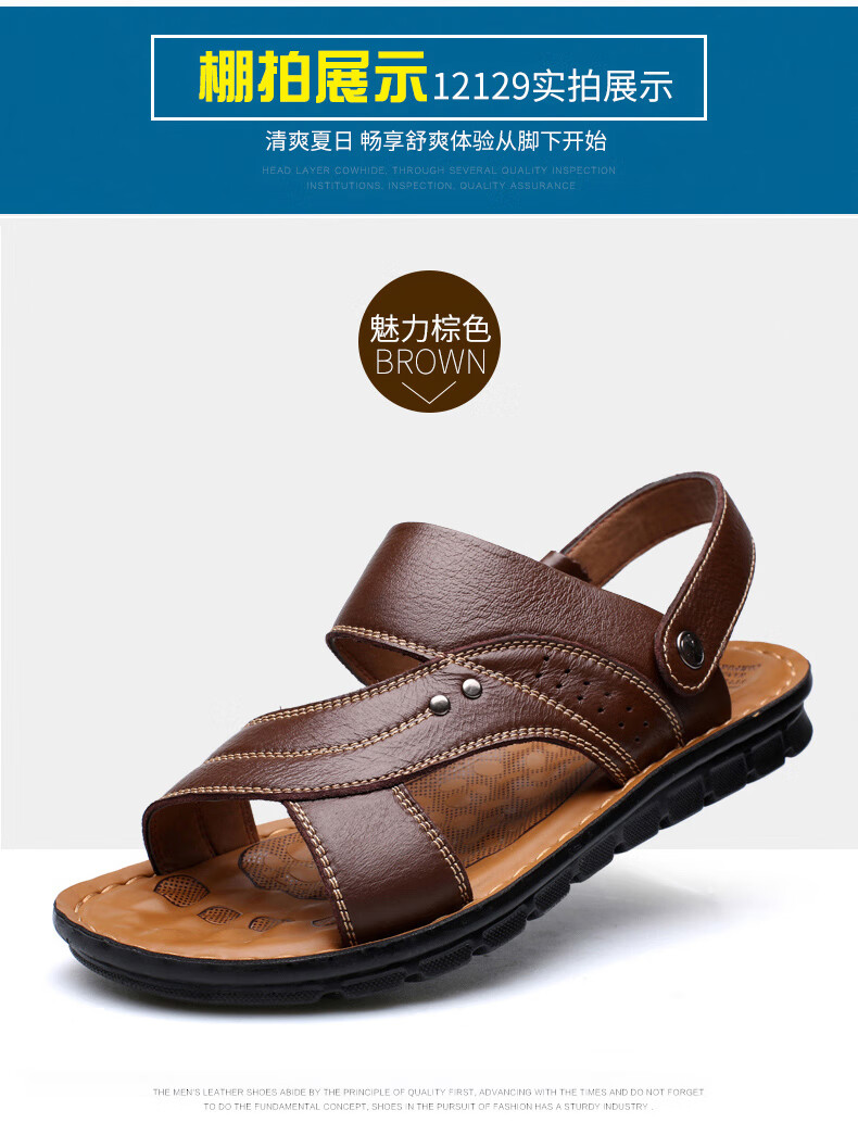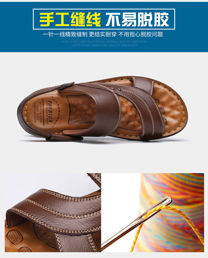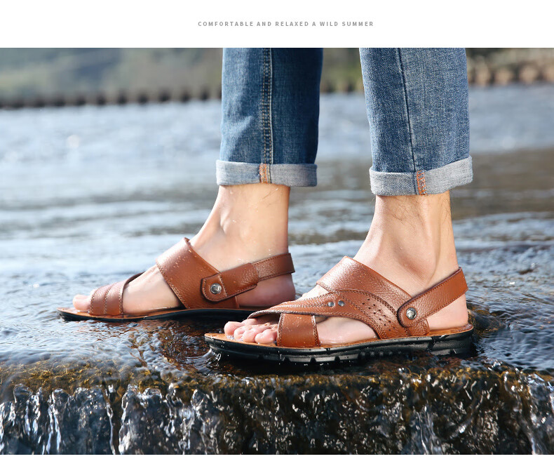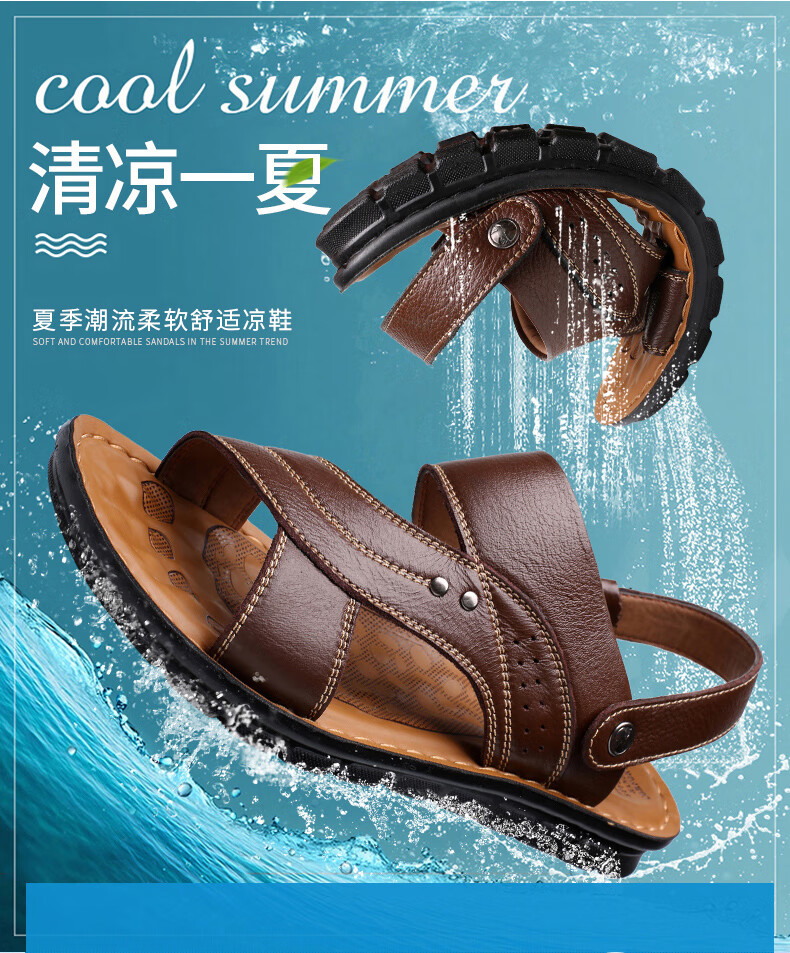 蜻蜓牌2025夏季新款一字拖鞋男士防滑大码潮凉拖两用皮凉鞋男鞋沙滩鞋 棕色12129 41