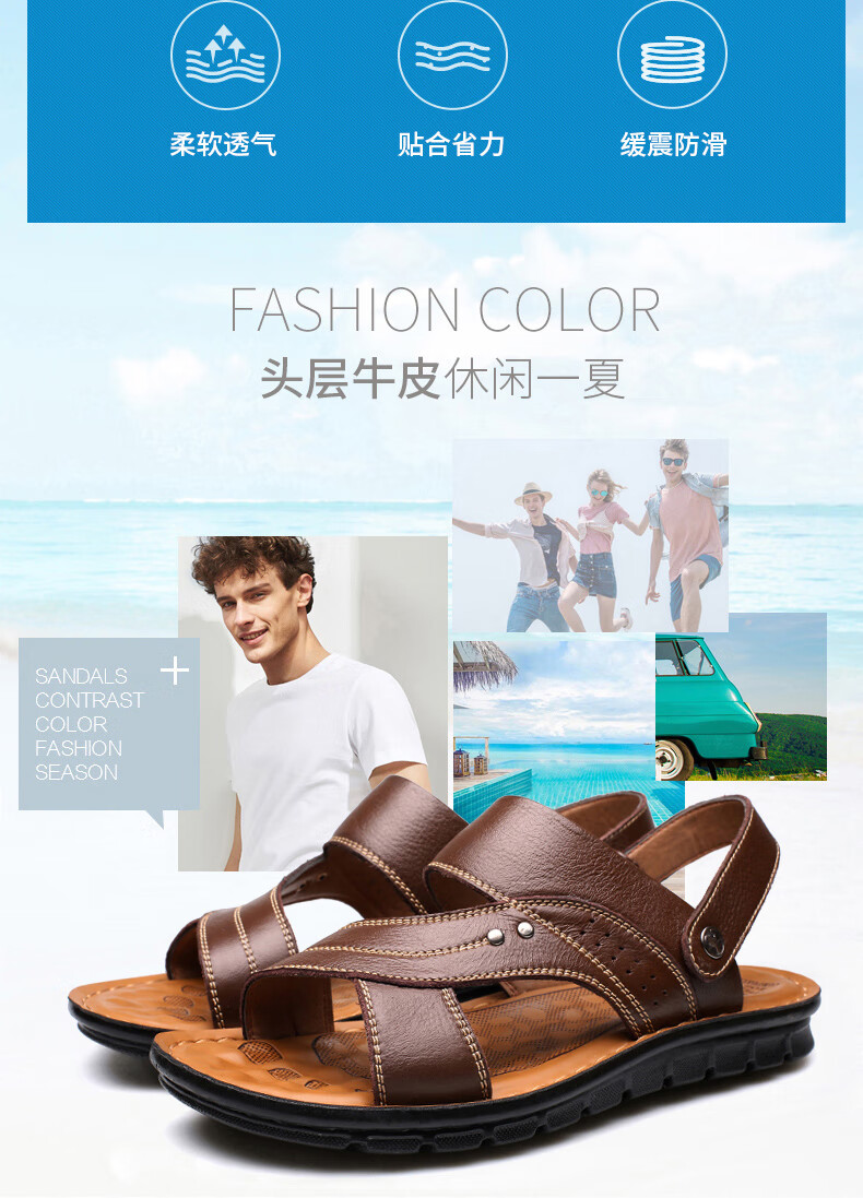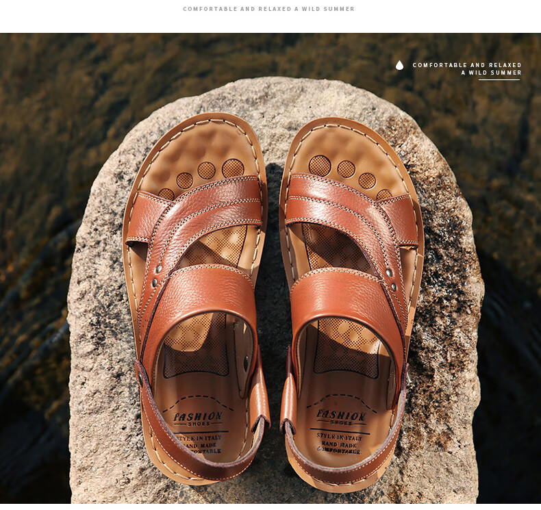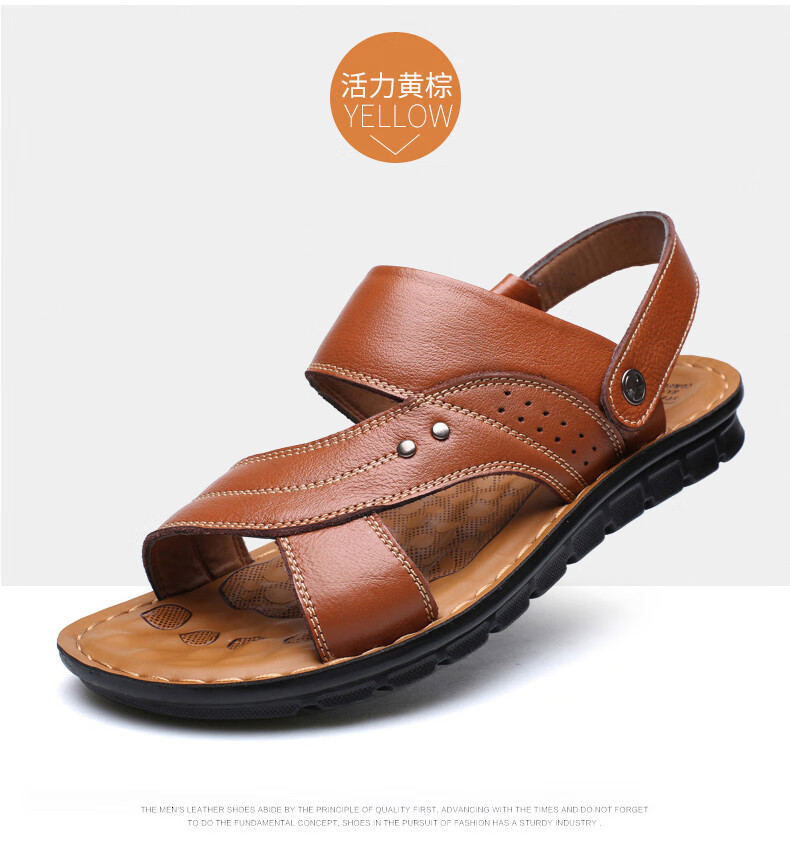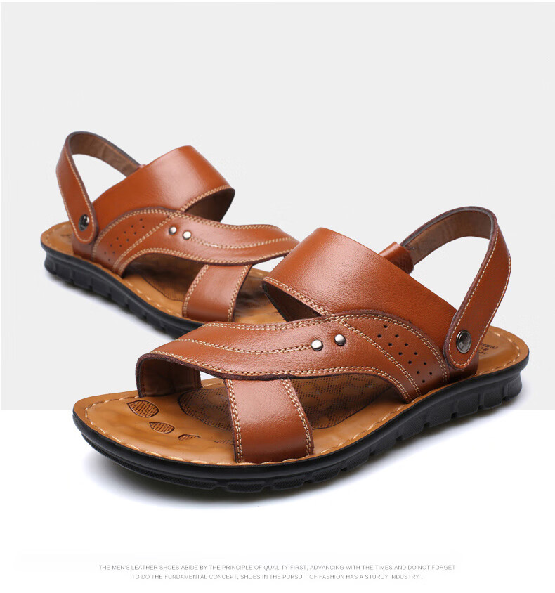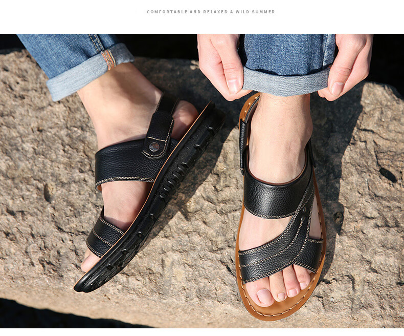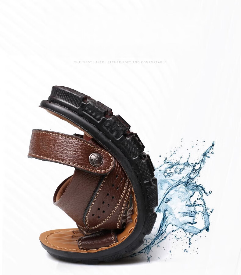 蜻蜓牌2025夏季新款一字拖鞋男士防滑大码潮凉拖两用皮凉鞋男鞋沙滩鞋 棕色12129 41