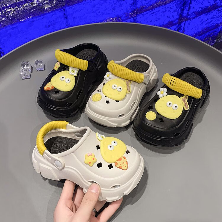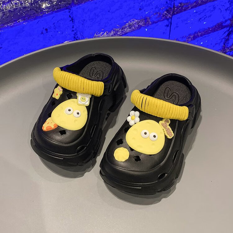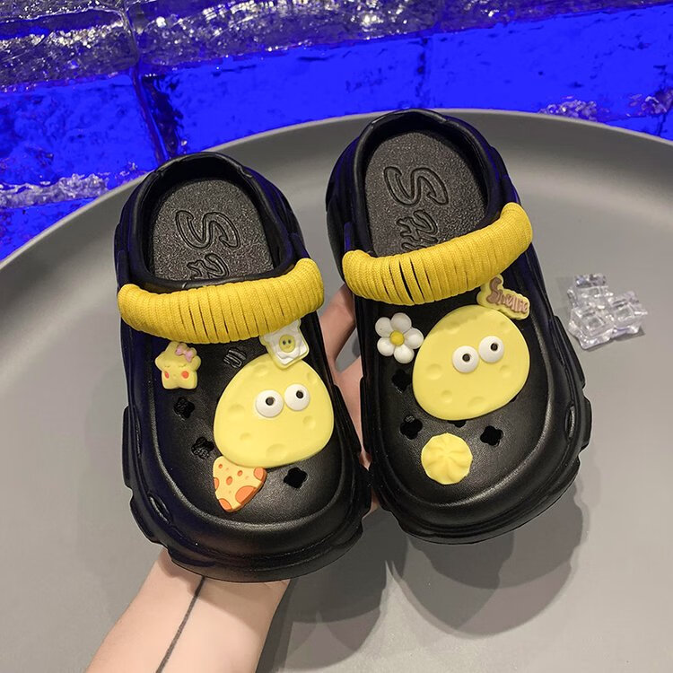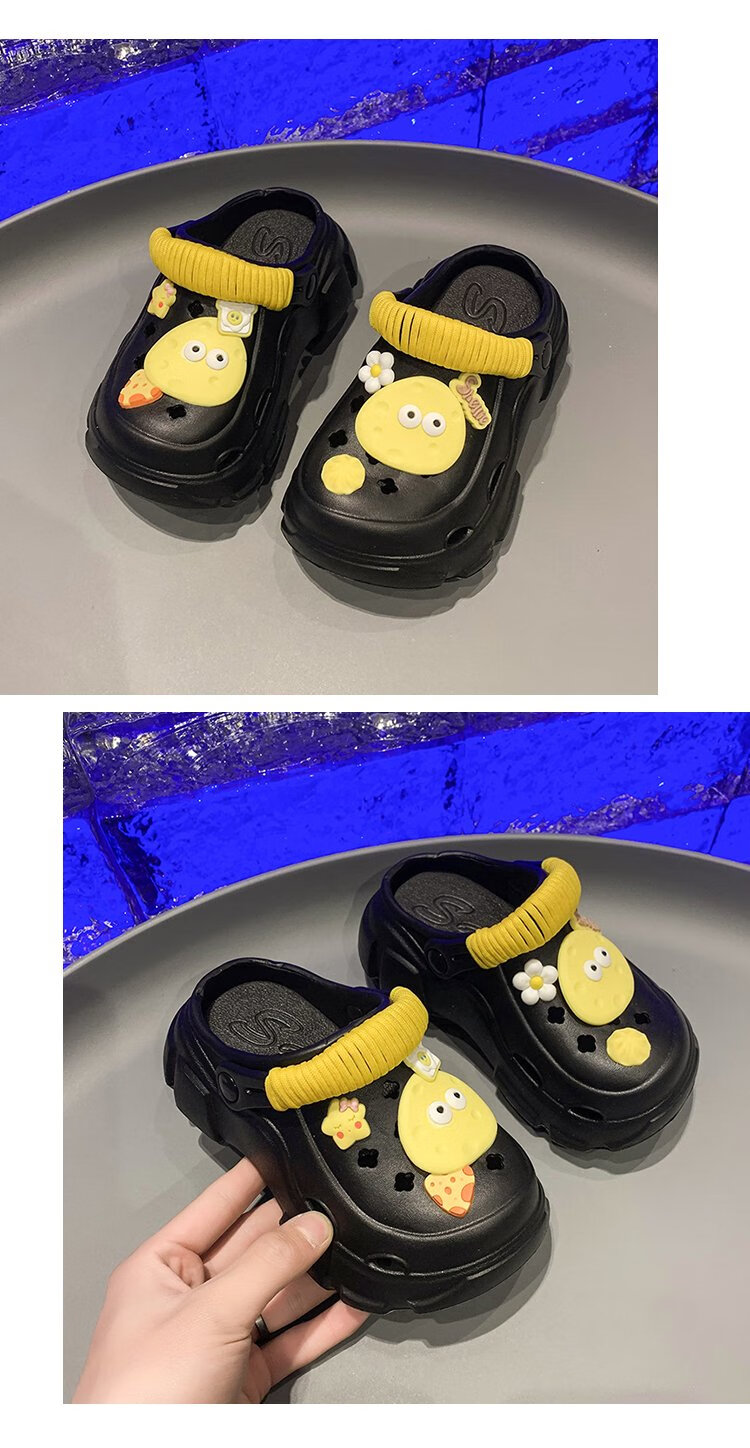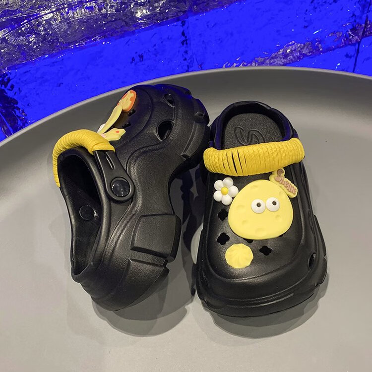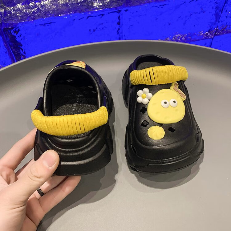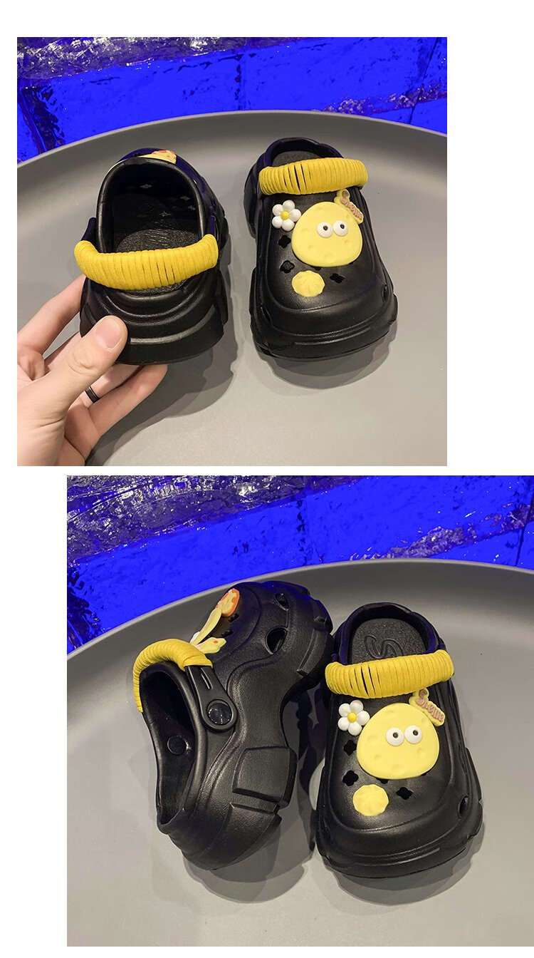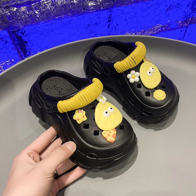 巴豆巴豆女童外穿凉鞋2025夏季新款软底儿童沙滩洞洞鞋防滑女孩踩屎感拖鞋 黑色 24 -25码