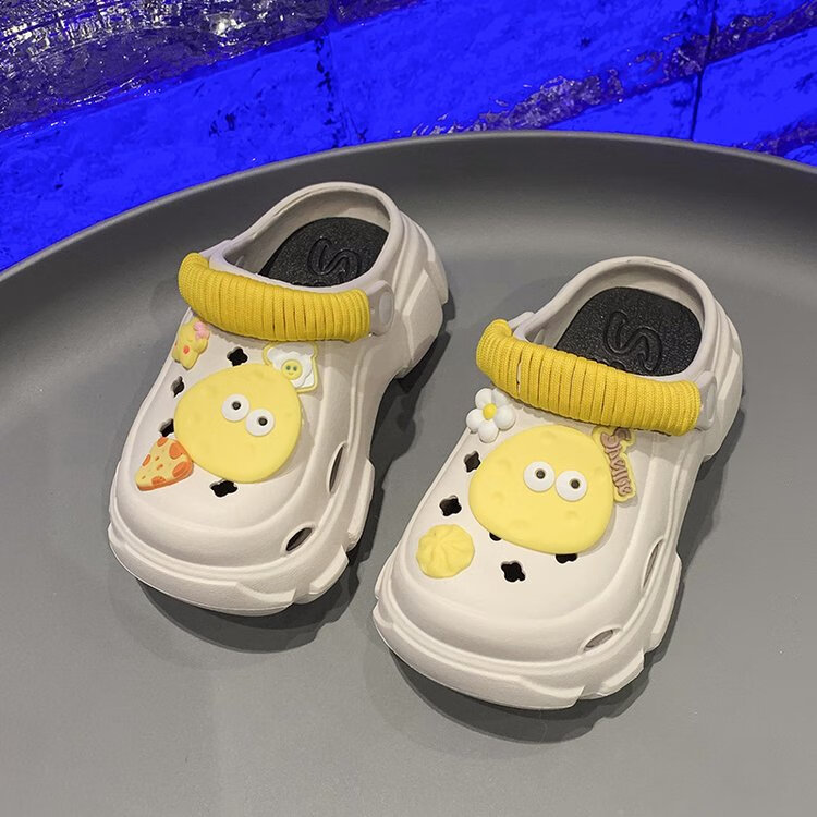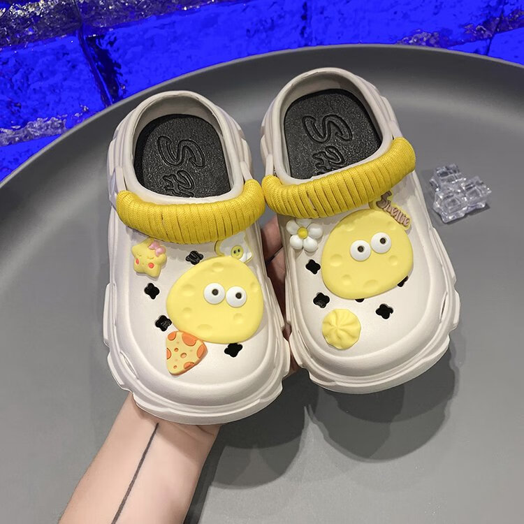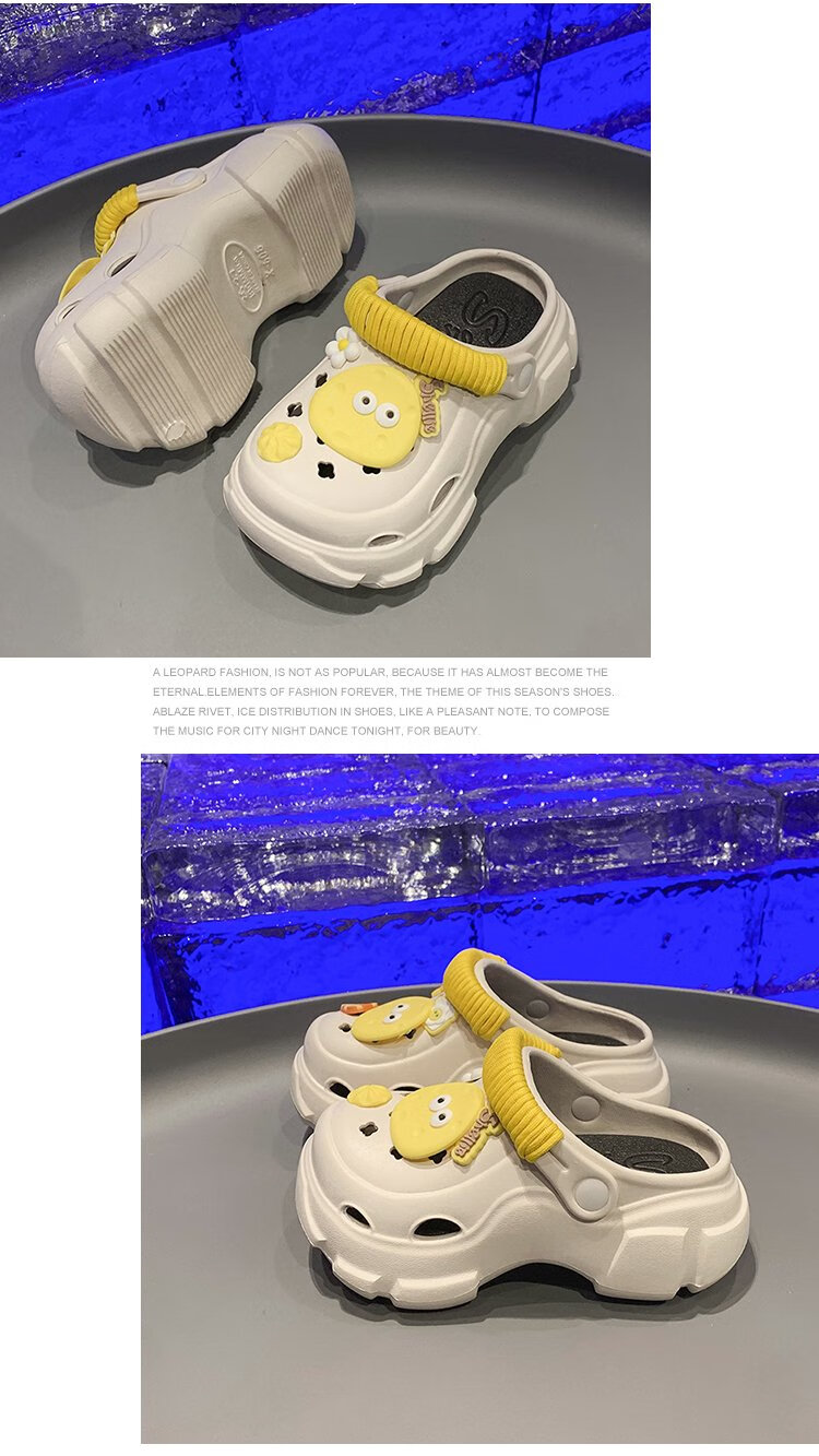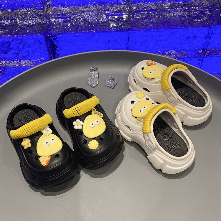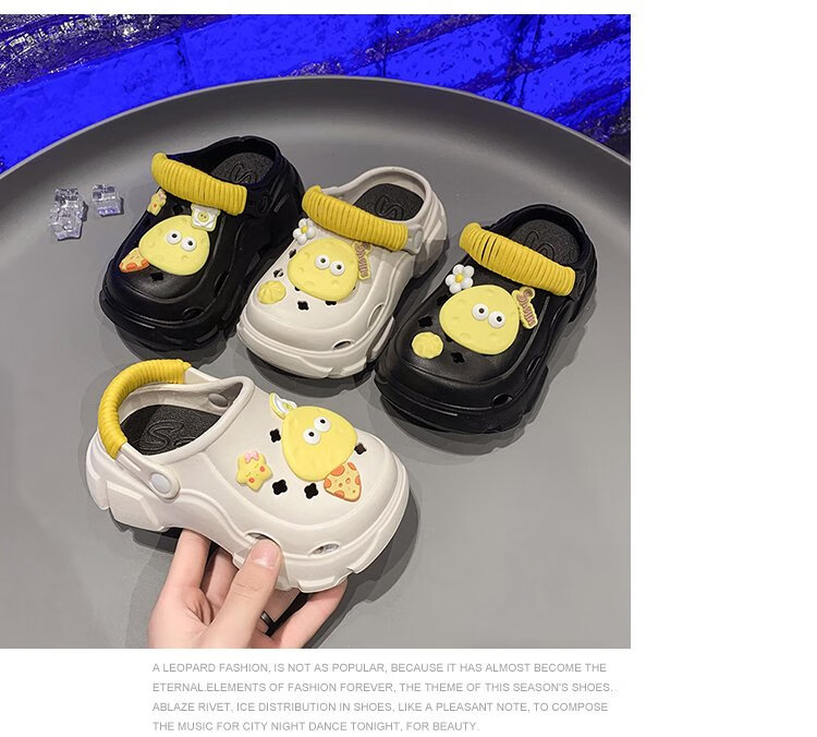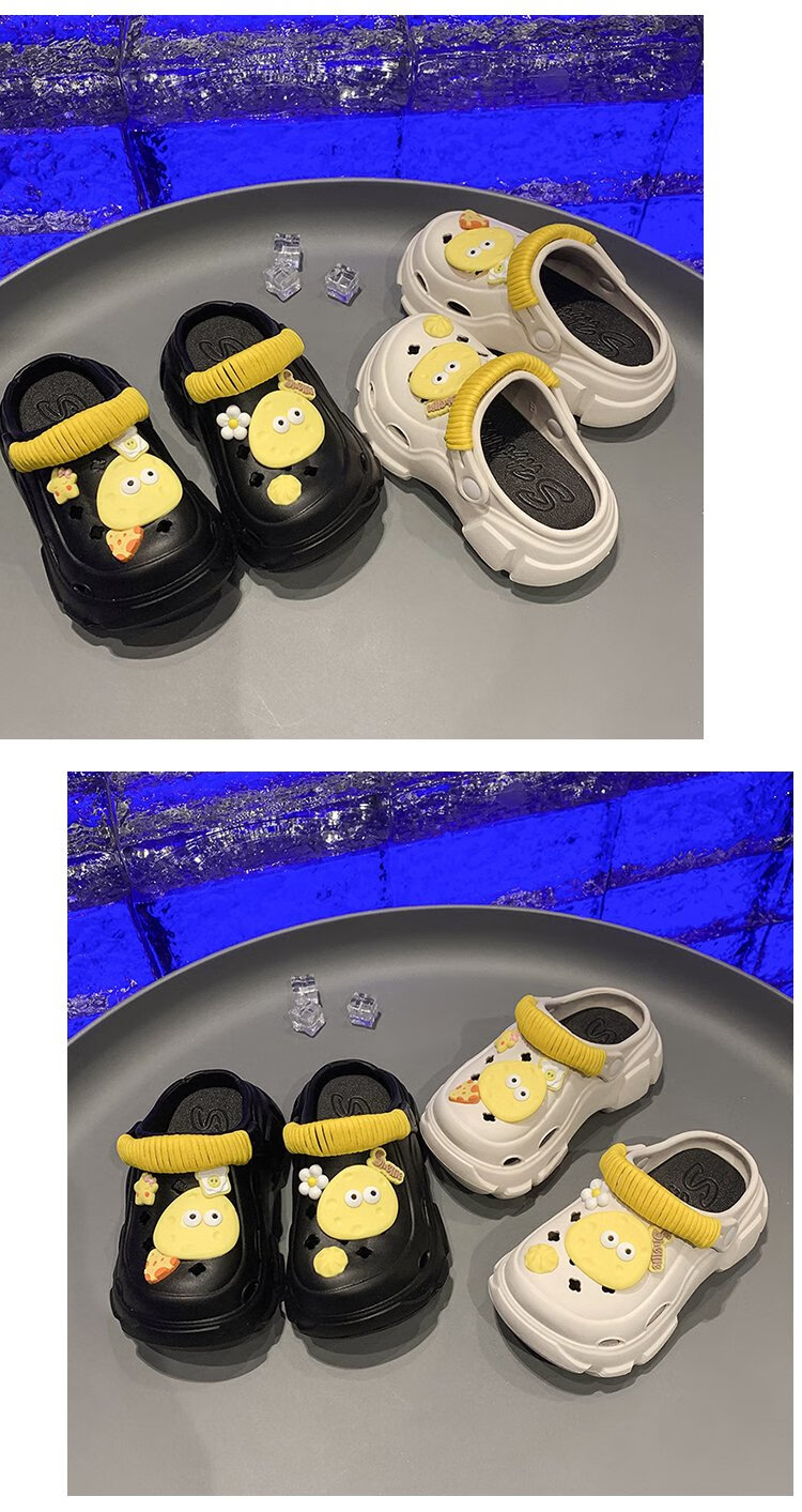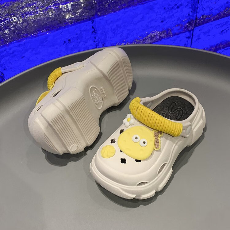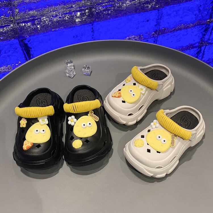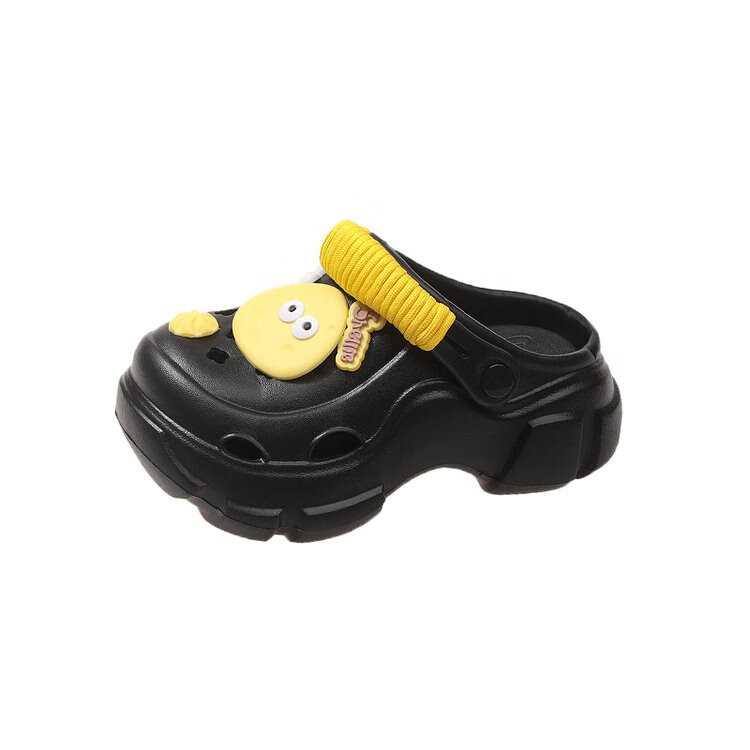 巴豆巴豆女童外穿凉鞋2025夏季新款软底儿童沙滩洞洞鞋防滑女孩踩屎感拖鞋 黑色 24 -25码