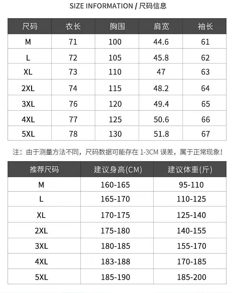China (cm) 165 / 88-90 170 / 96-98 175 / 108-110 180 / 118-122 185 / 126-130