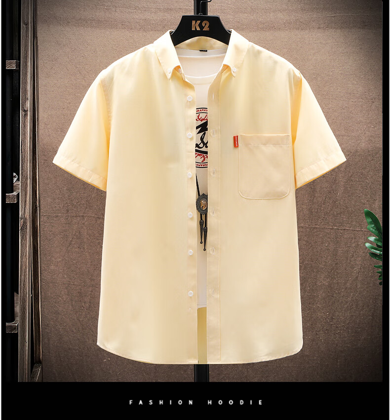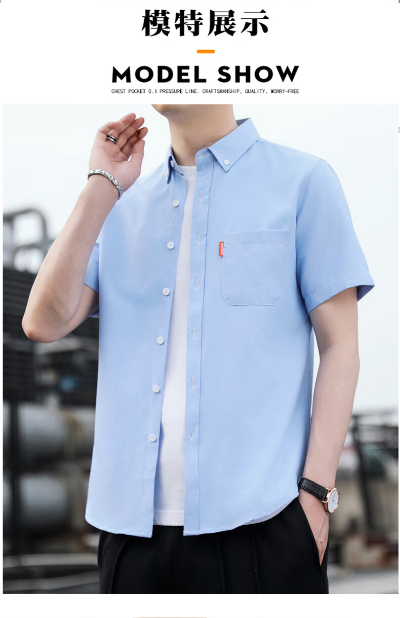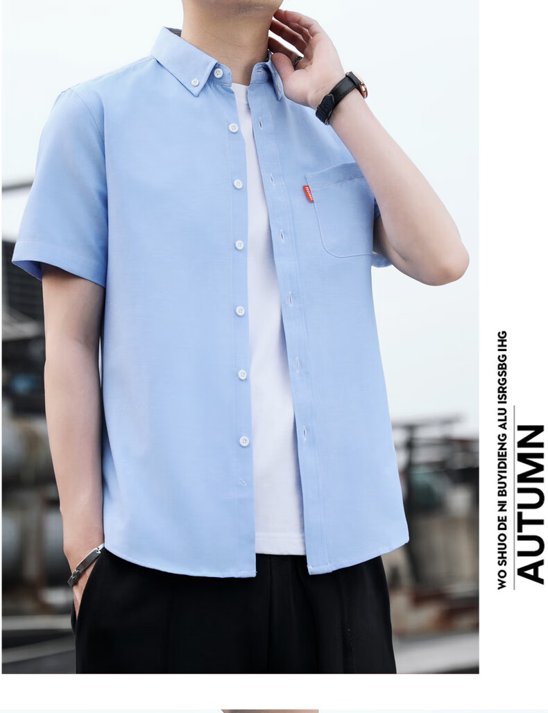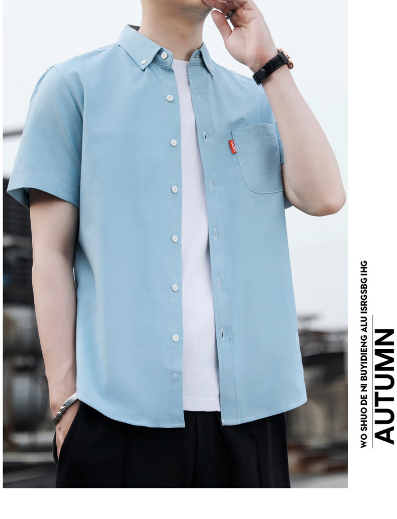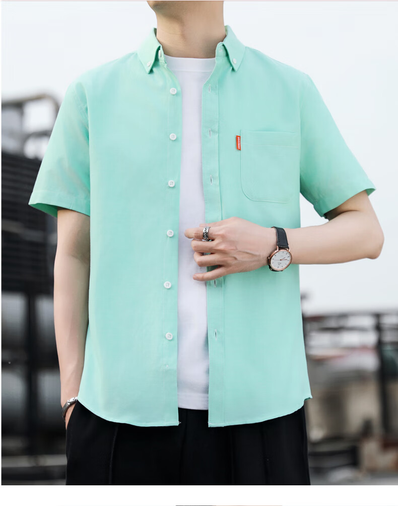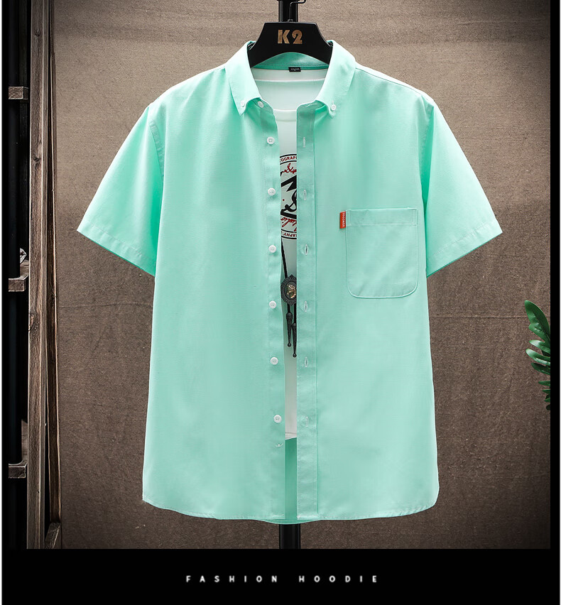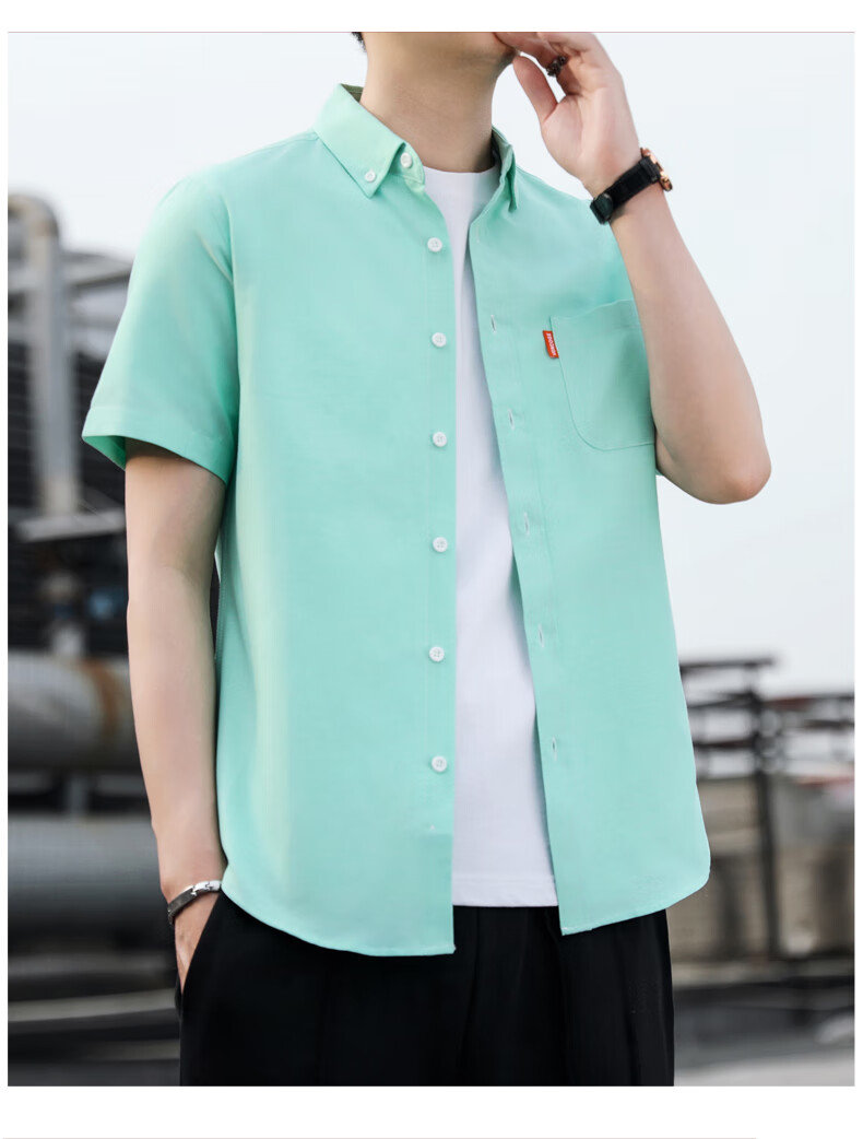 啄木鸟(TUCANO)新款牛津纺短袖衬衫夏季薄款男士商务休闲衬衣宽松纯色上衣新品 682果绿色 M 请参考尺码表下单