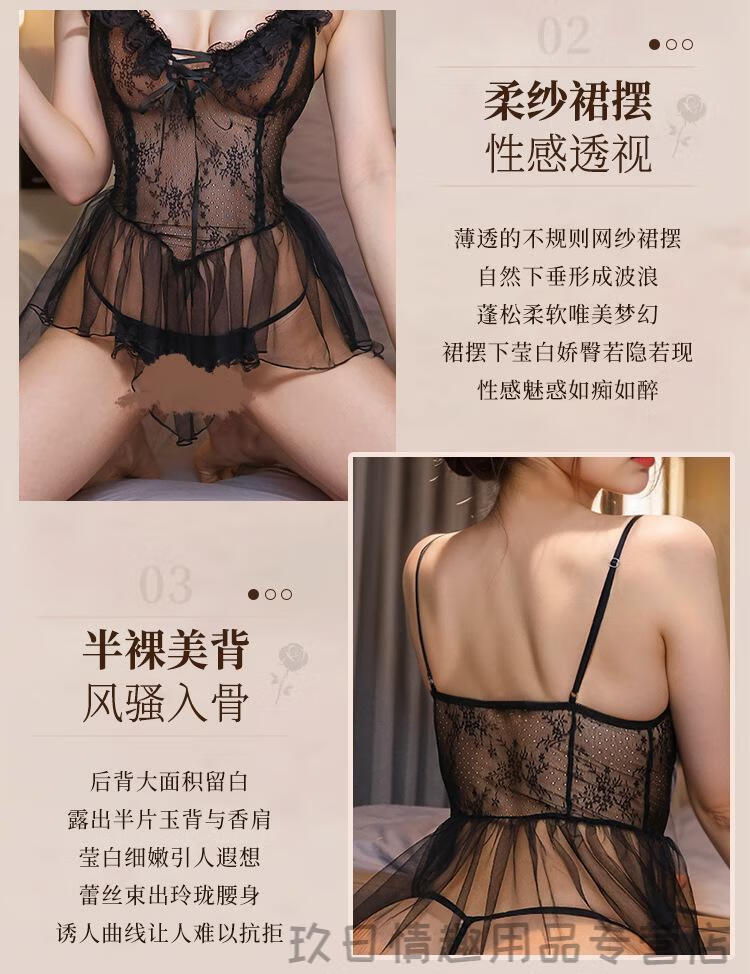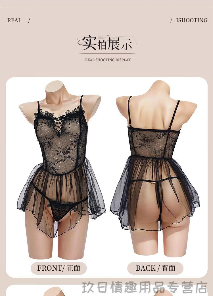 姬欲(JIUUY)[保密发货]新款蕾丝透视吊带激情套装女制服诱惑房事血滴子 9755黑(连体衣+T裤) 均码