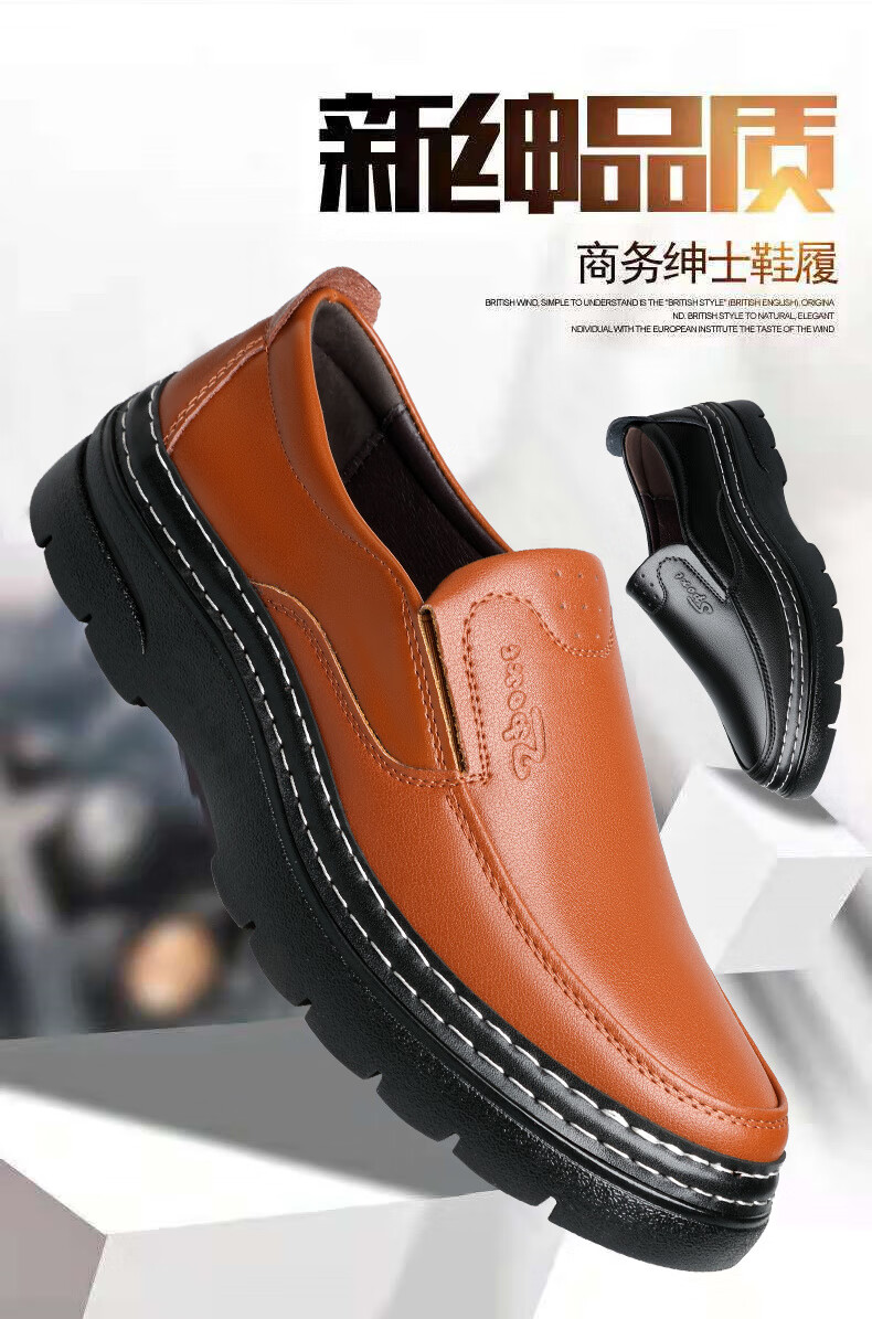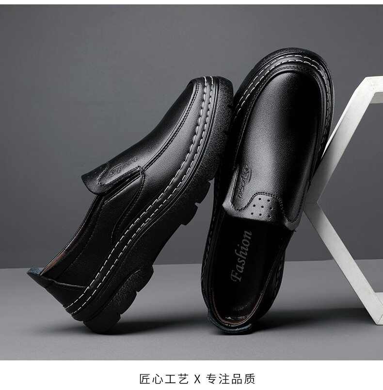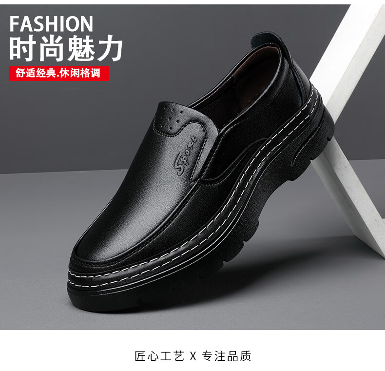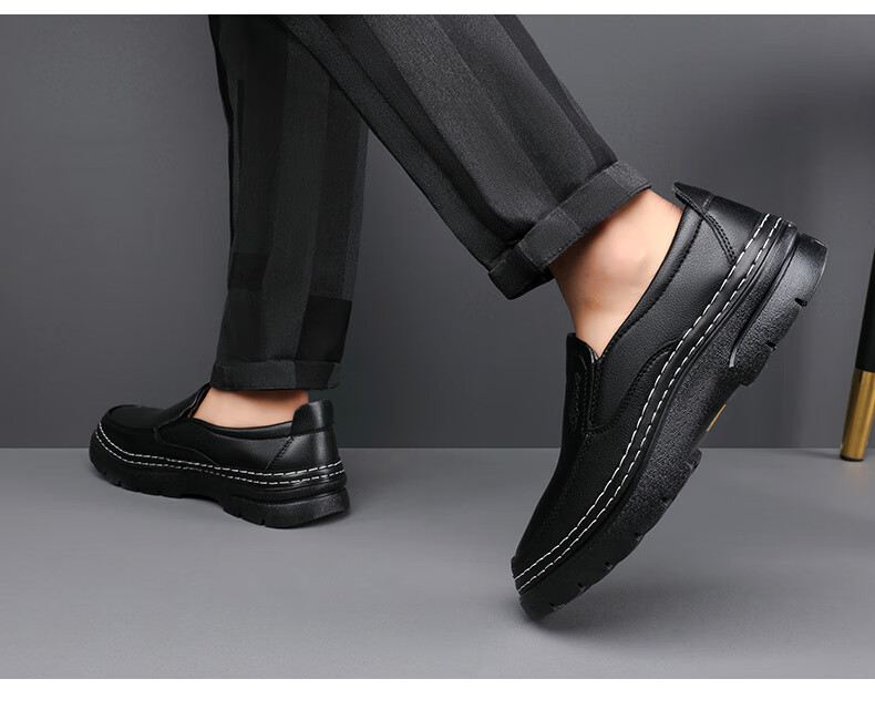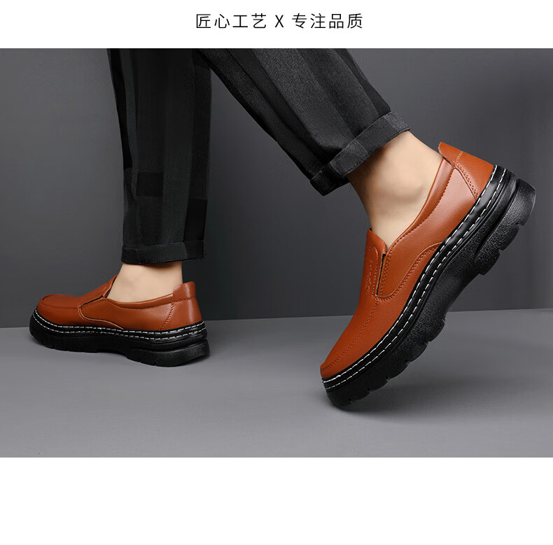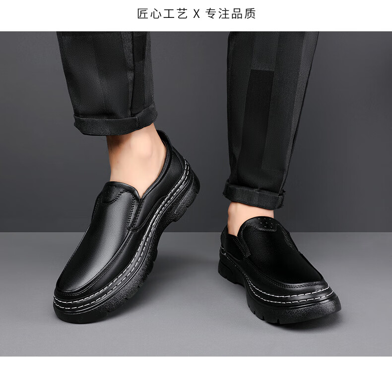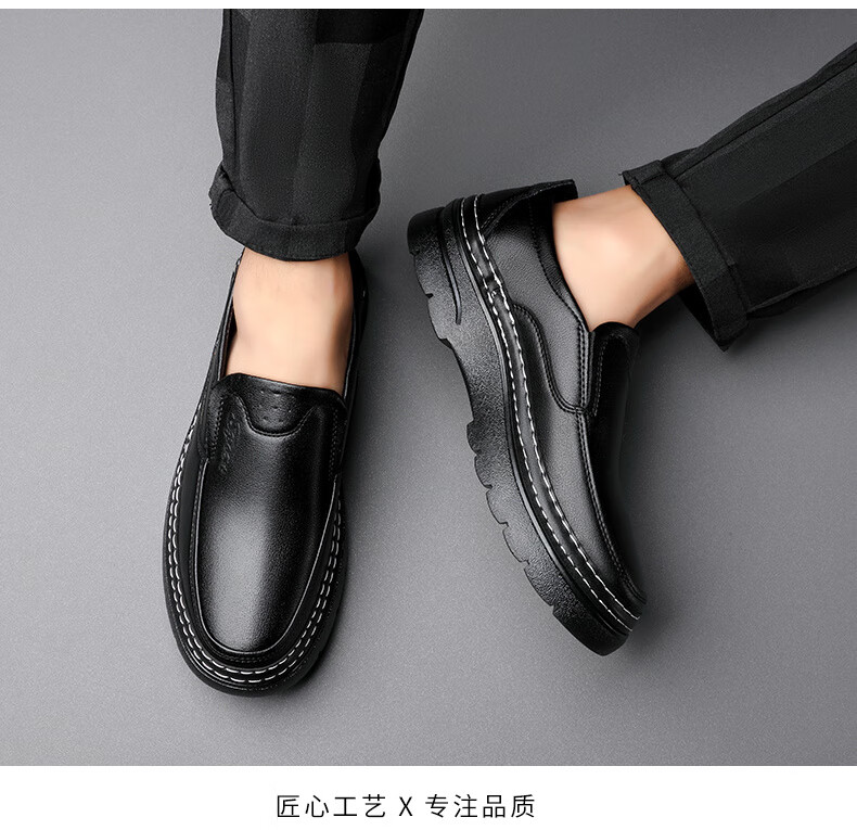 啄木鸟鞋底上线男鞋大头鞋男真皮男士马丁鞋休闲工装鞋皮鞋套脚百塔皮鞋 黑色 9765 38