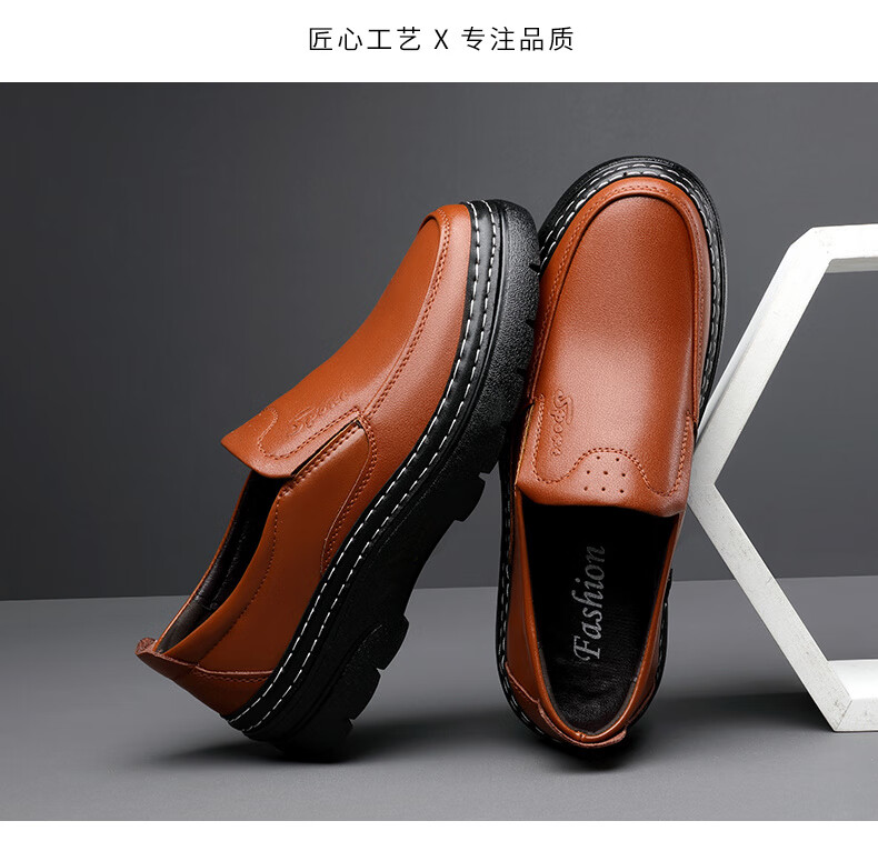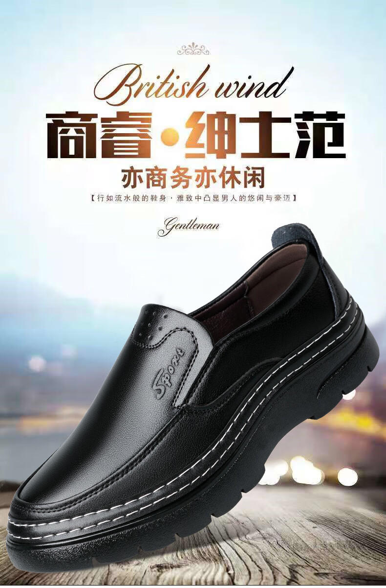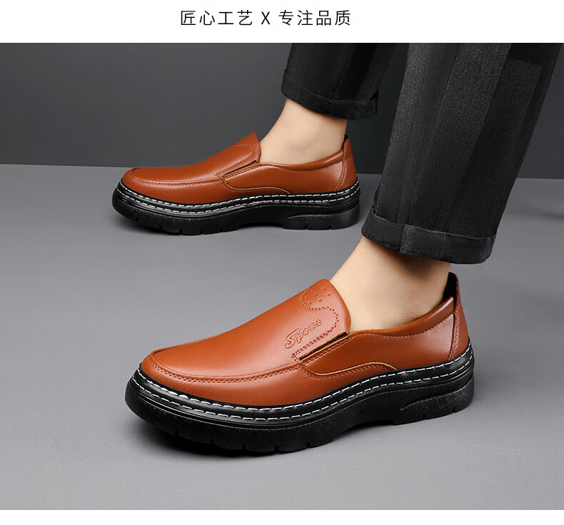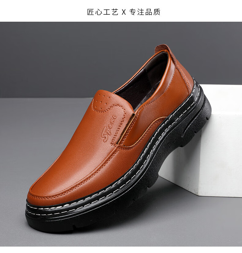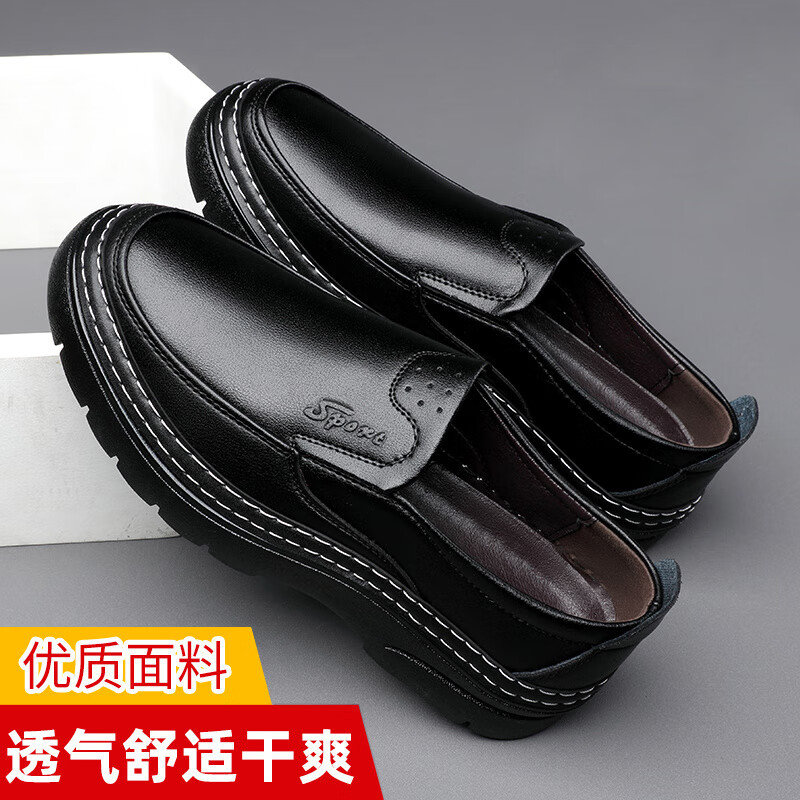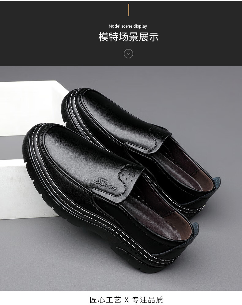 啄木鸟鞋底上线男鞋大头鞋男真皮男士马丁鞋休闲工装鞋皮鞋套脚百塔皮鞋 黑色 9765 38