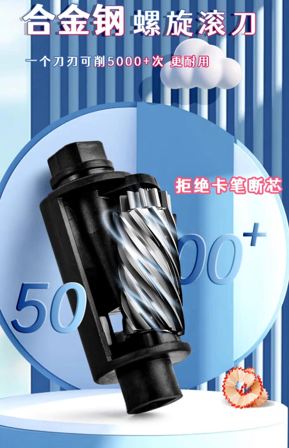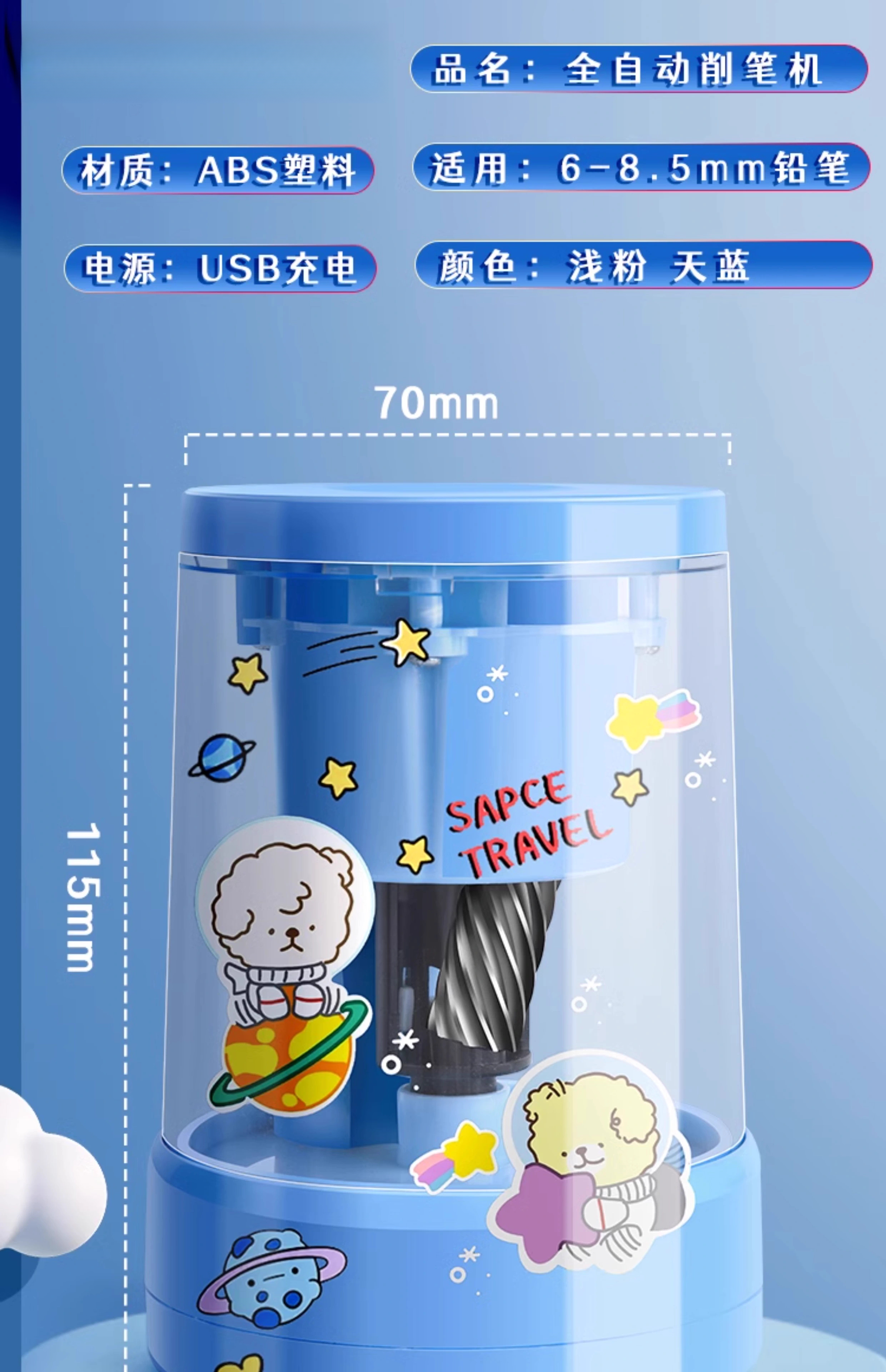 Shantou Lincun fully automatic pencil sharpener electric pencil sharpener for primary school students special pencil sharpener children's kindergarten electric stationery set hands-free pencil sharpener rechargeable small blue astronaut 826 fully automatic free sticker + charging cable + knife holder
