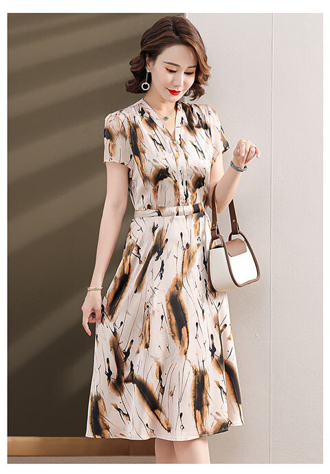 皮尔卡丹(pierre cardin)【1392人收藏】夏季显瘦妈妈气质连衣裙2025年新款时尚中老年妈妈 蓝色 L (建议90-100斤左右)