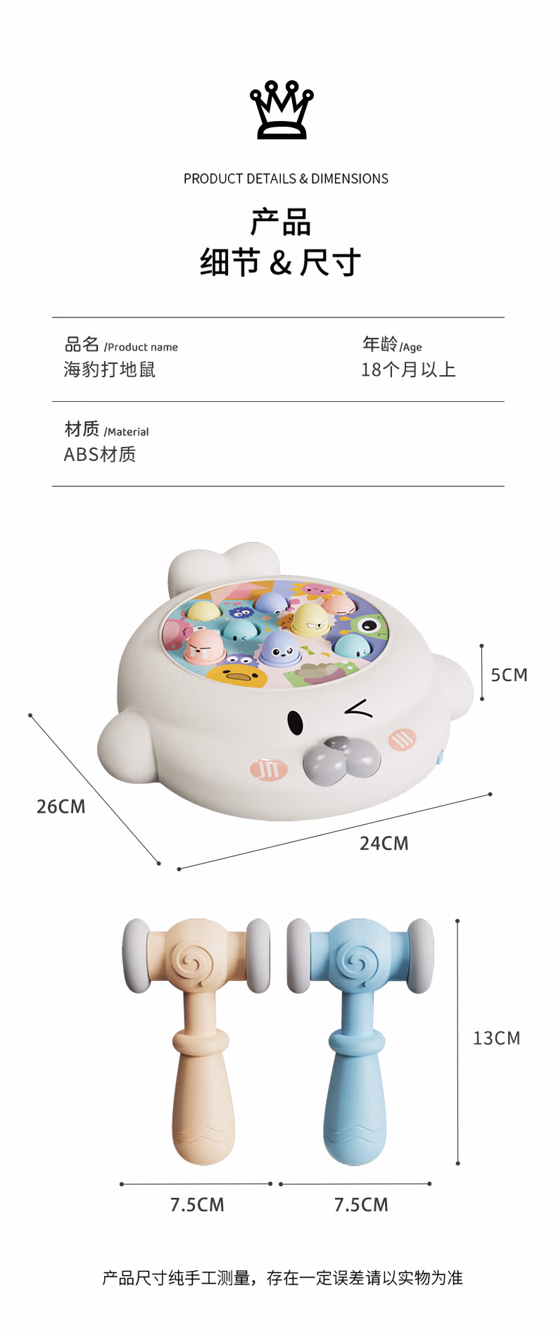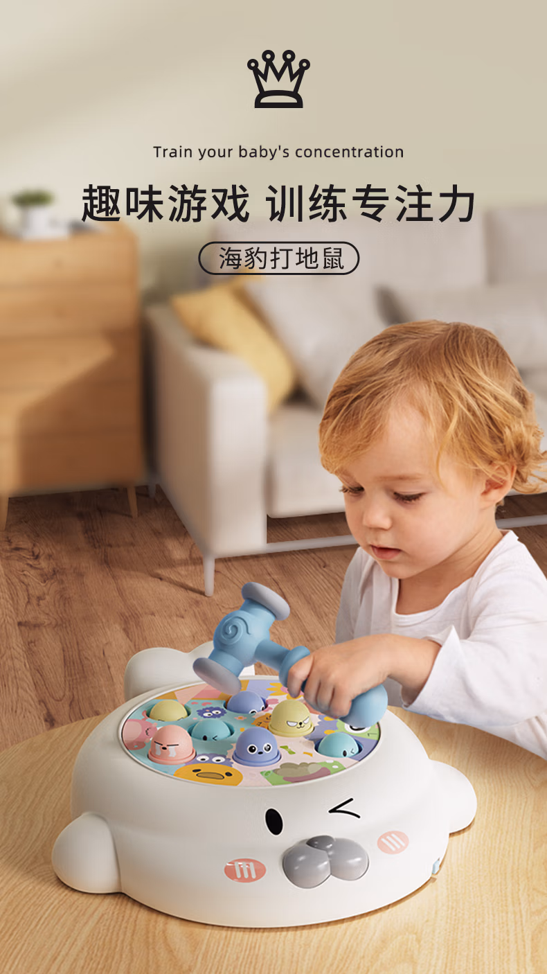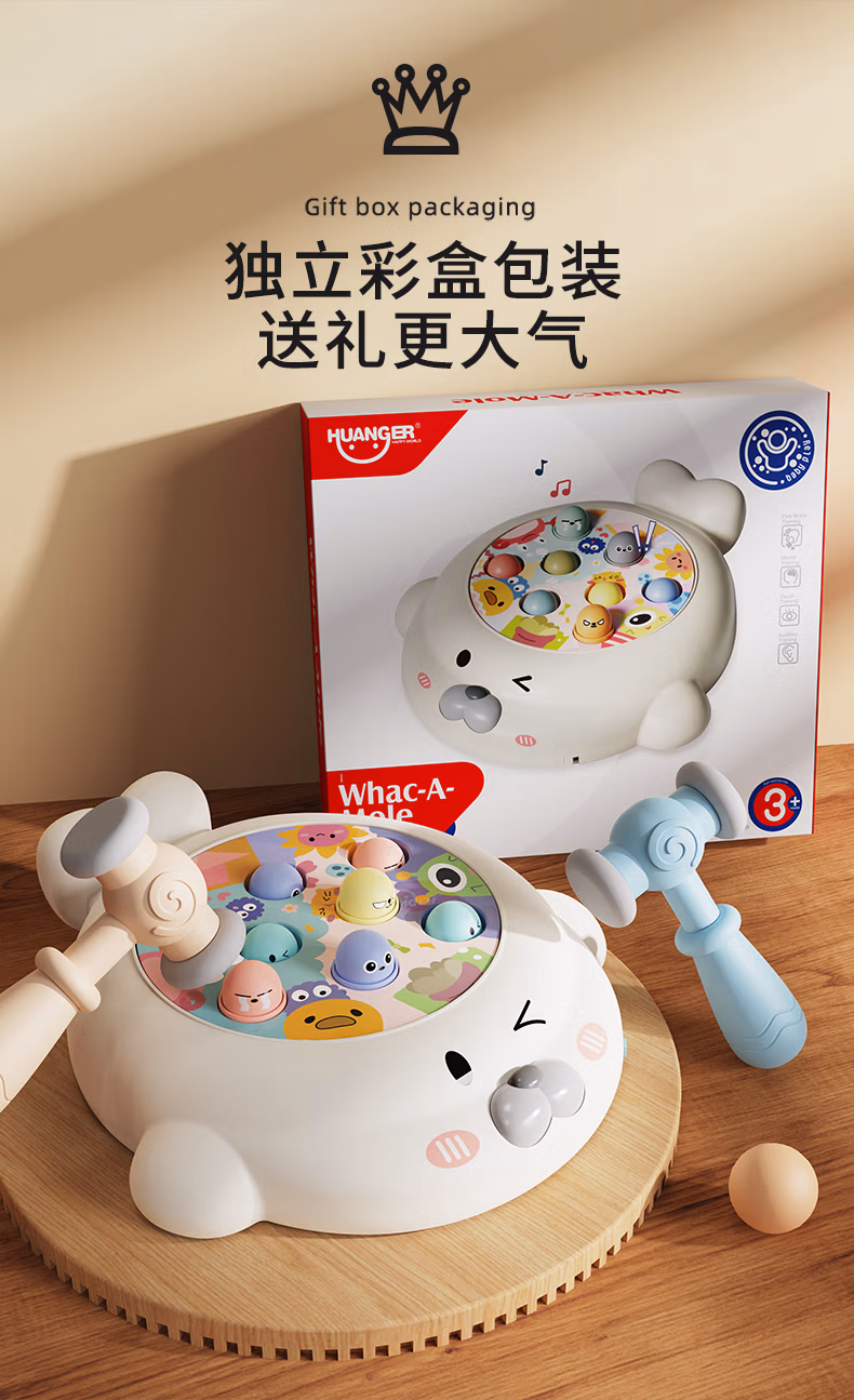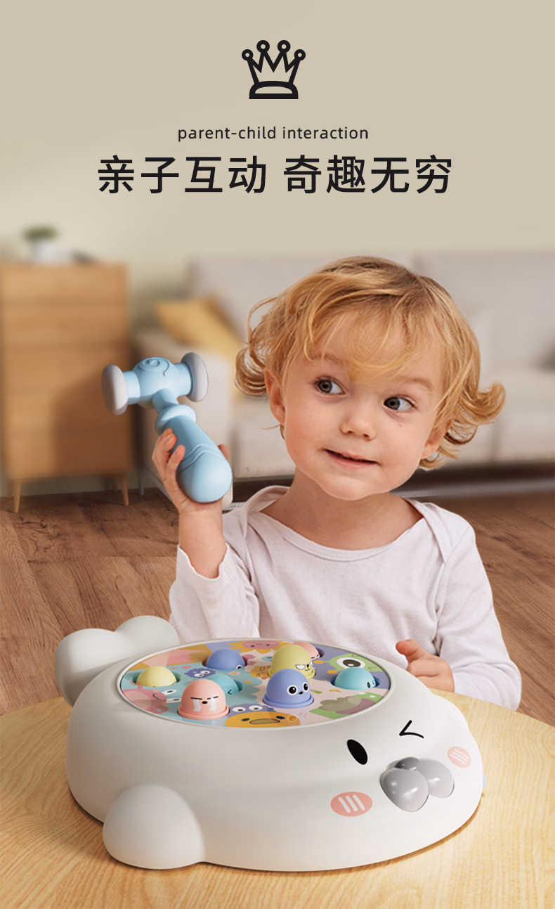 皇儿 儿童打地鼠玩具婴儿0-1半岁男女孩宝宝动脑2敲生日礼物男孩女孩 双锤打地鼠[充电版]彩盒