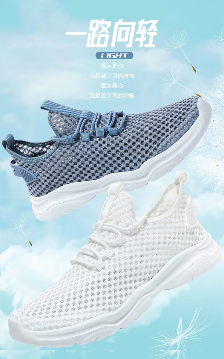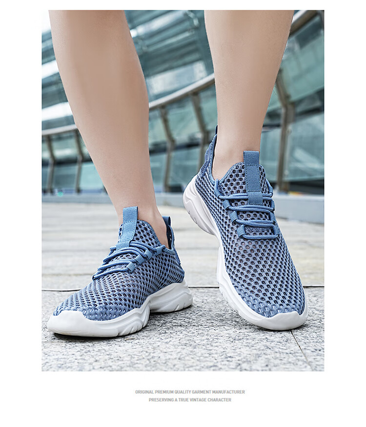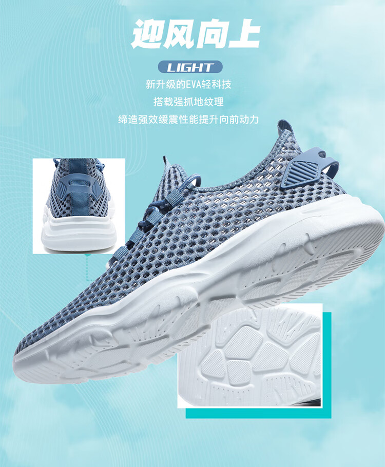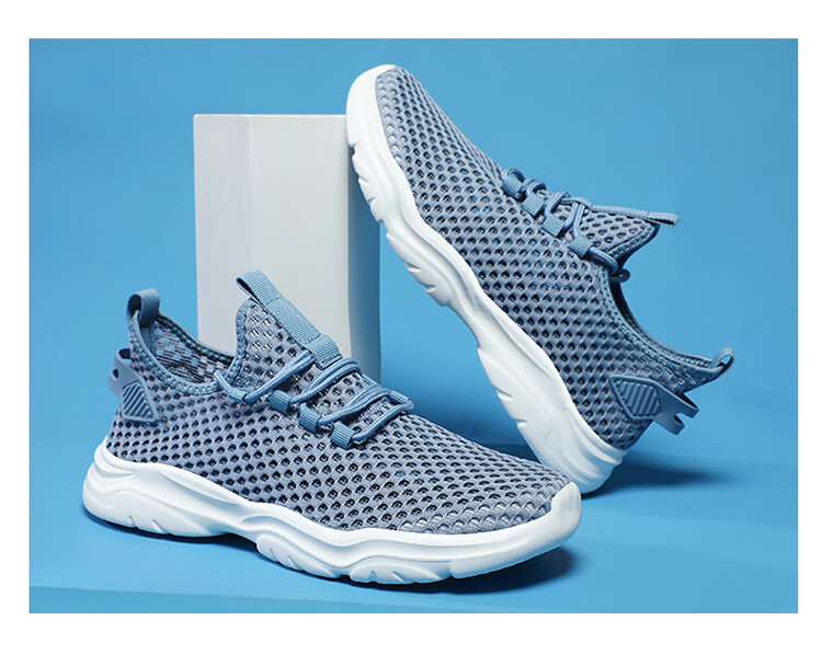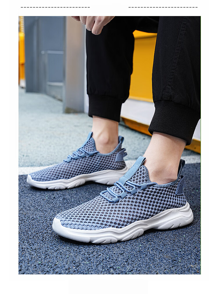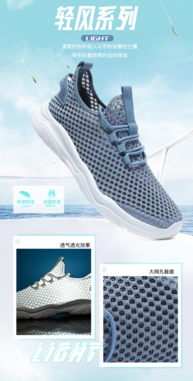 Jeep吉普男鞋夏季2024新款网面透气网眼镂空轻便网鞋运动休闲潮鞋子 LQ866牛仔蓝 42