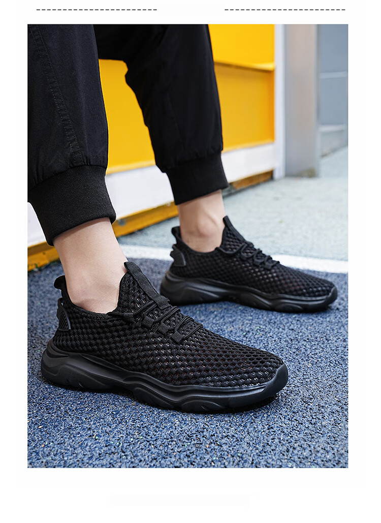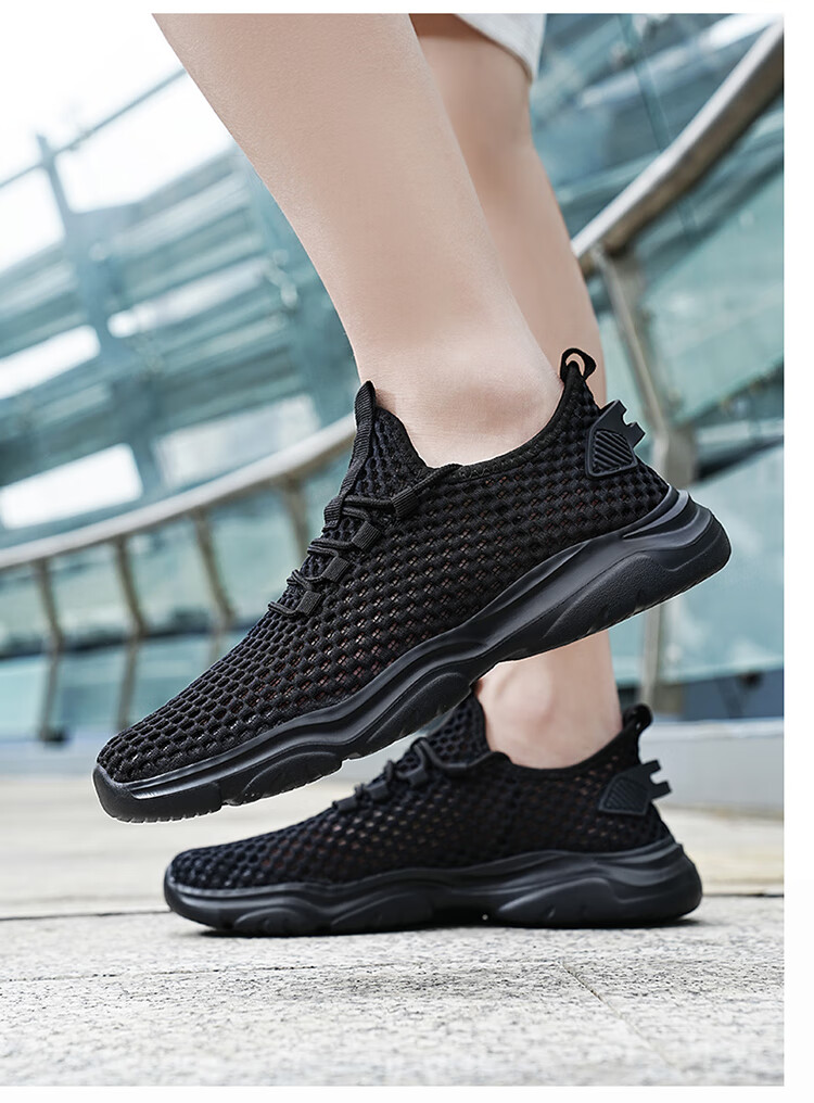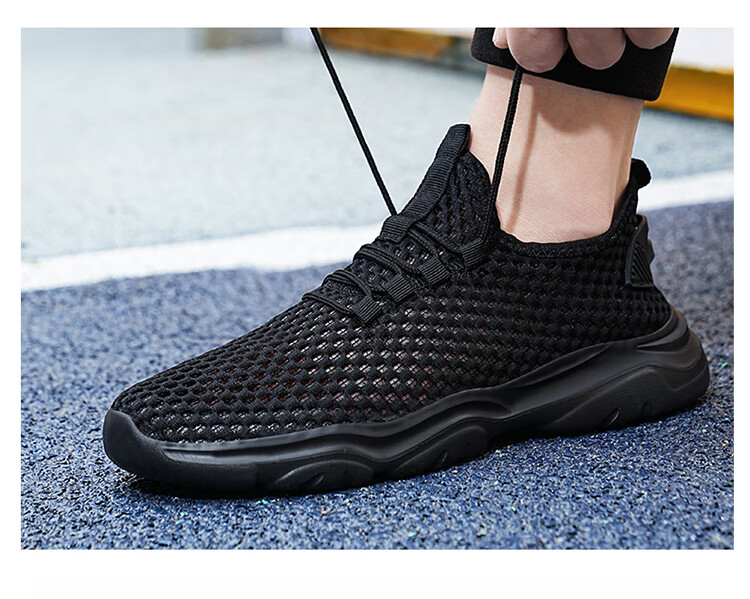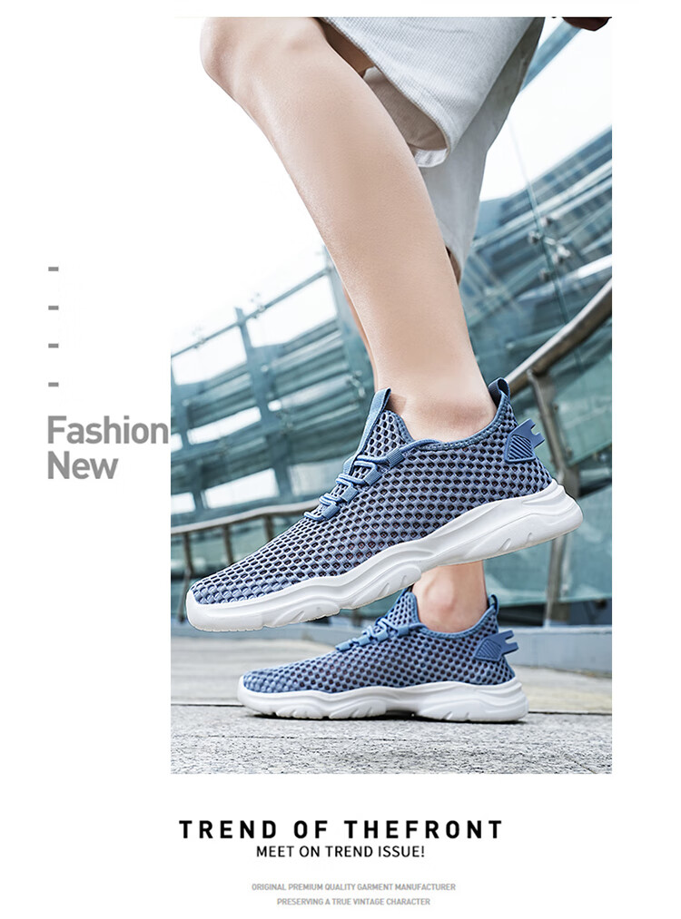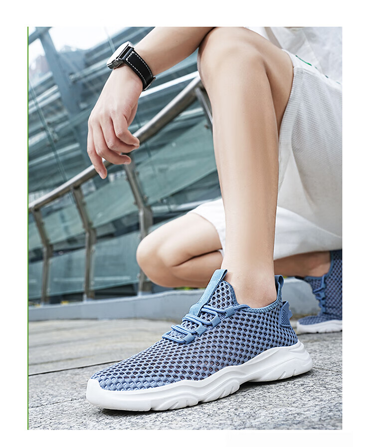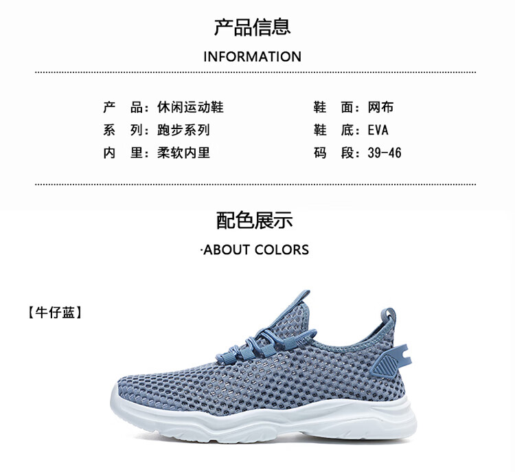 Jeep吉普男鞋夏季2024新款网面透气网眼镂空轻便网鞋运动休闲潮鞋子 LQ866牛仔蓝 42