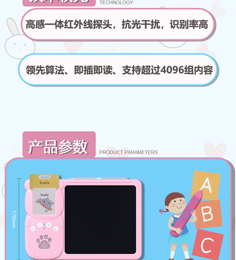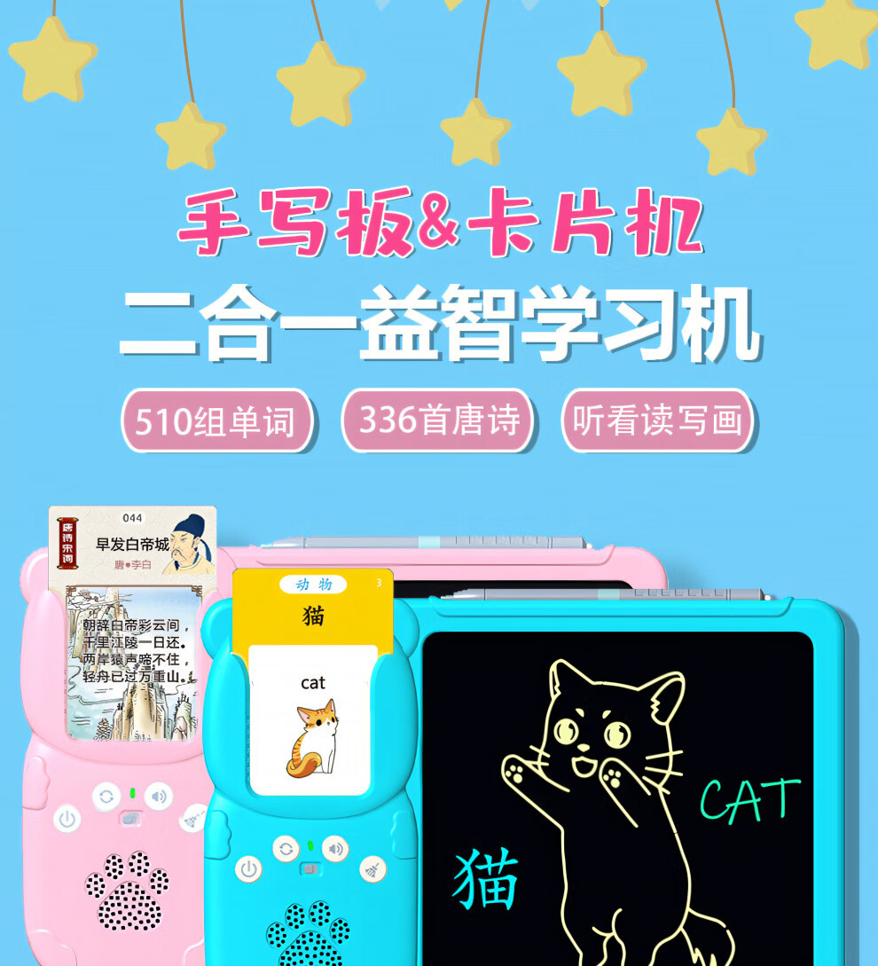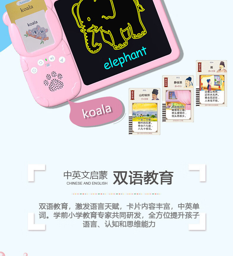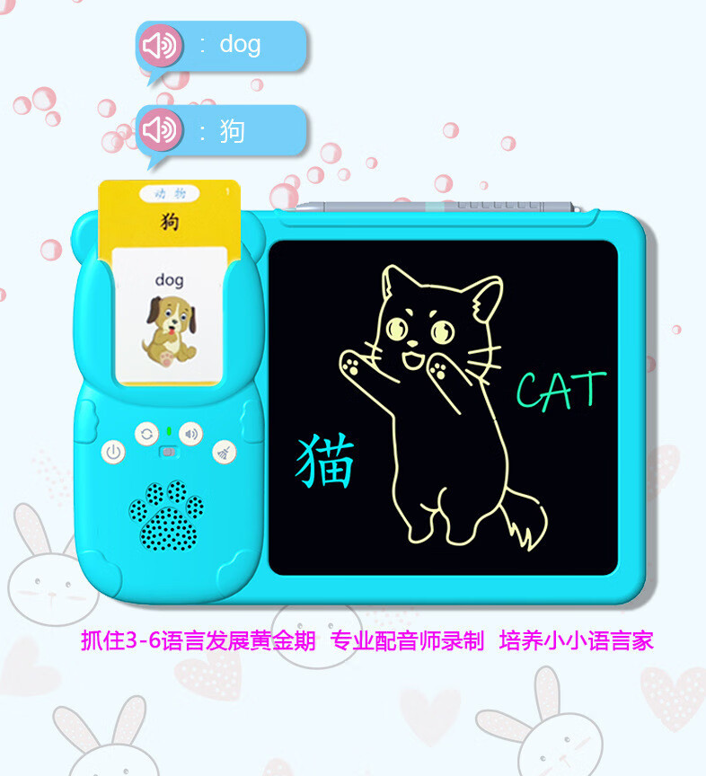 Huluoluo детская просветительная портативная карточка для раннего образования, двуязычная машина для обучения грамоте на китайском и английском языках, детский сад, детская игрушка, синяя (112 карточек, 224 аудиокниги), китайский и английский (перезаряжаемая версия)