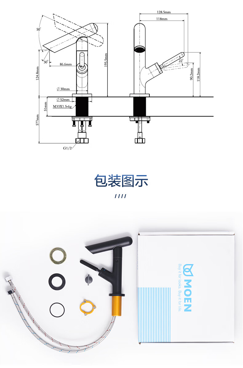 摩恩(MOEN)面盆水龙头冷热卫生间洗脸盆浴室柜手池龙头旋转水嘴GN15122 1512 15122镀铬款