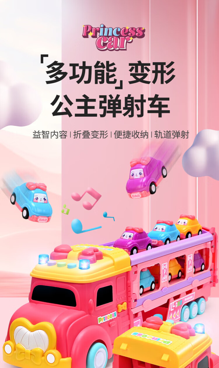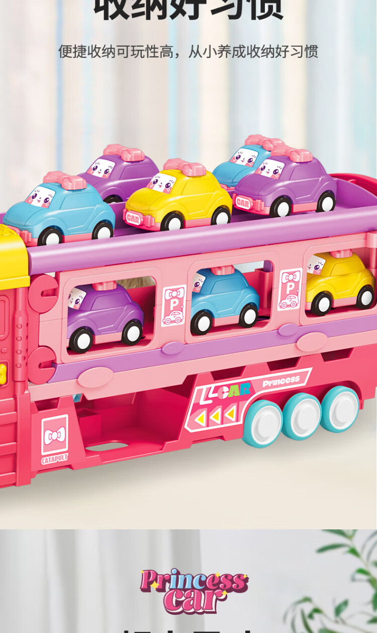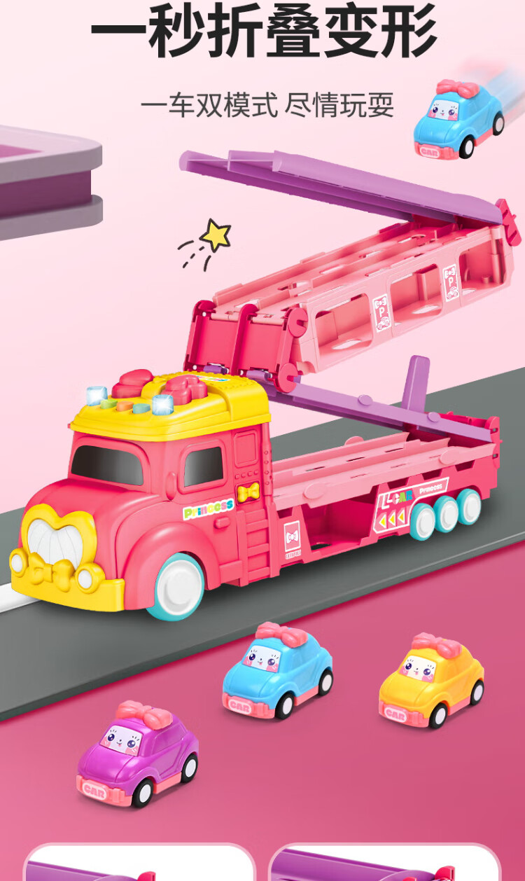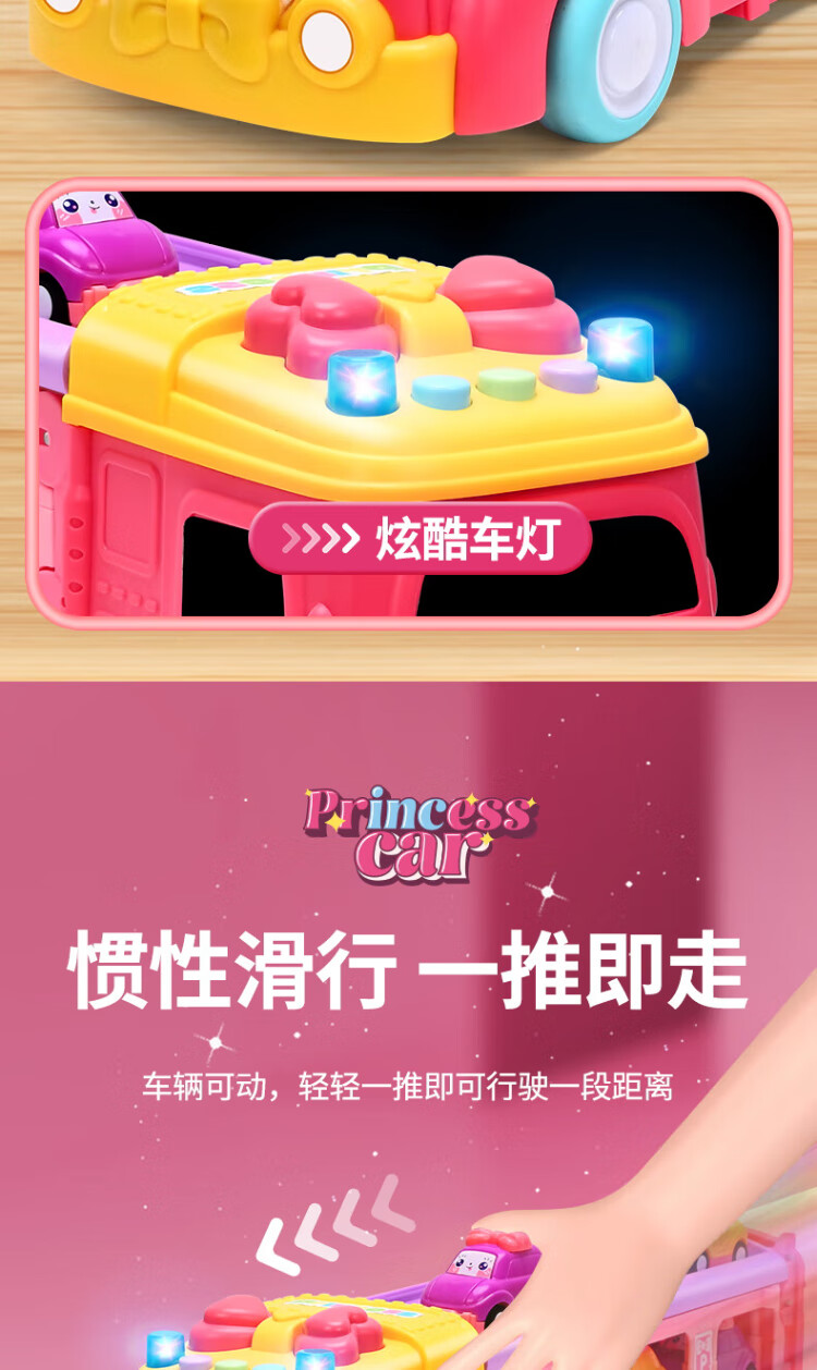 Osage's nouveau conteneur de stockage éducatif pour enfants voiture à éjection de piste déformée voiture jouet à inertie 3 à 6 ans 5 filles quatre 8 grand camion conteneur princesse 6 voitures éjection/son et lumière/piste extra longue + batterie
