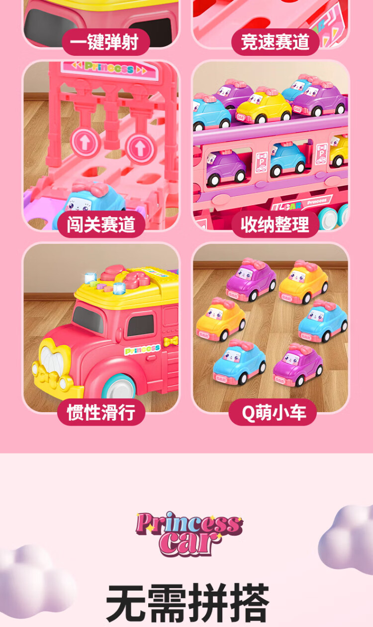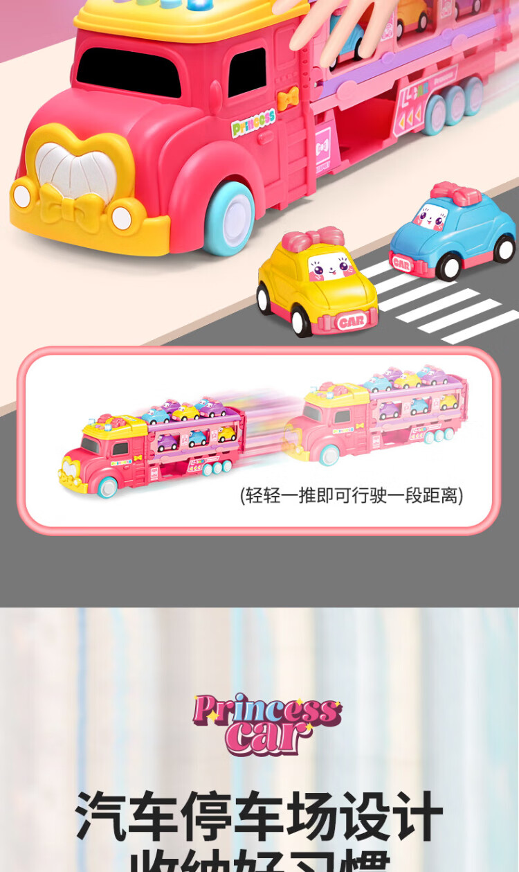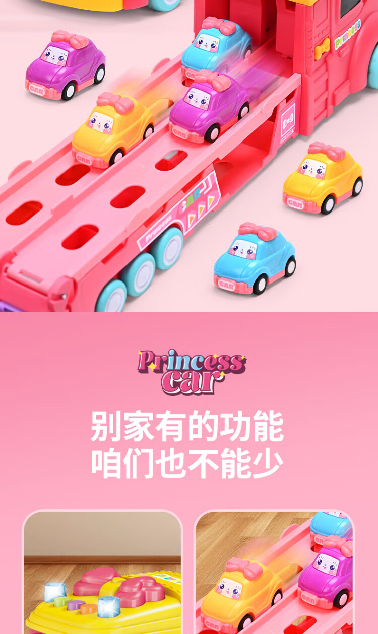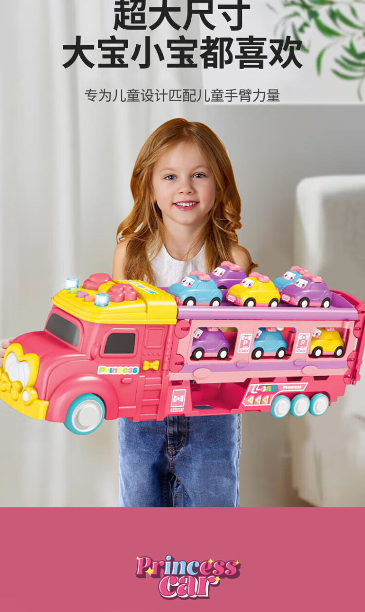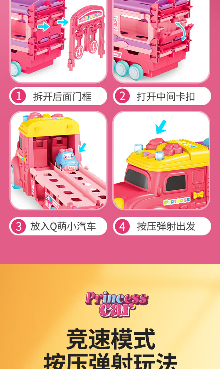Osage's nouveau conteneur de stockage éducatif pour enfants voiture à éjection de piste déformée voiture jouet à inertie 3 à 6 ans 5 filles quatre 8 grand camion conteneur princesse 6 voitures éjection/son et lumière/piste extra longue + batterie