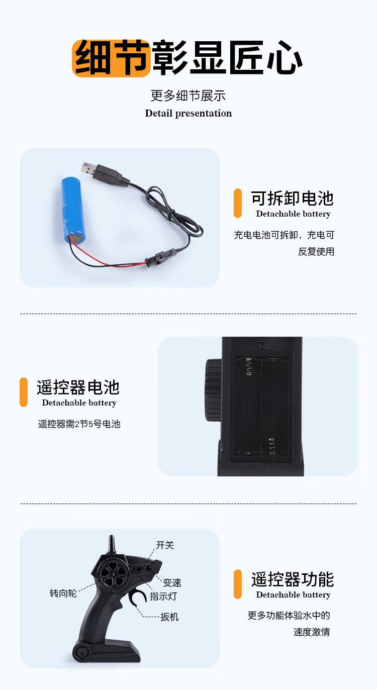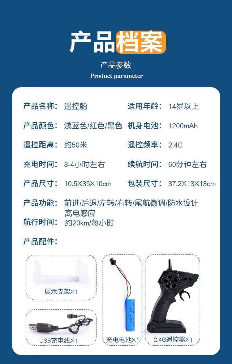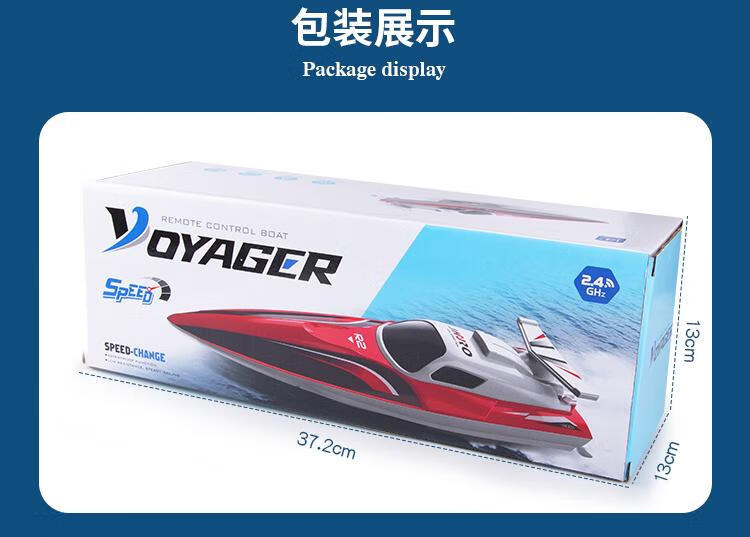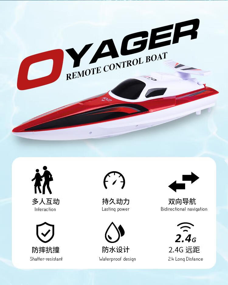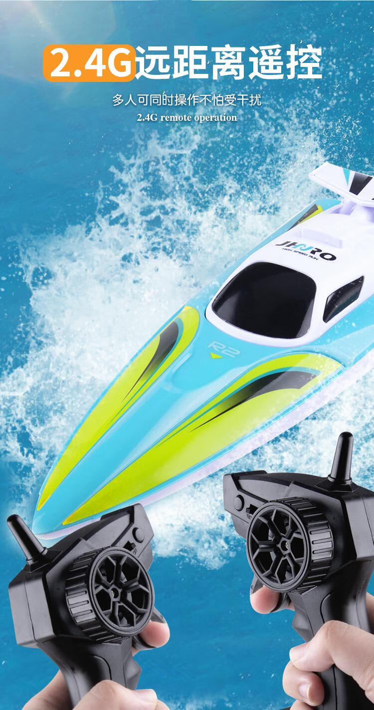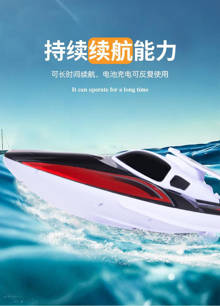 遥控船大型充电高速快艇儿童男孩无线电动可下水上玩具轮船模型 红色35厘米遥控船双电机+可变速 共三电约使用90分钟