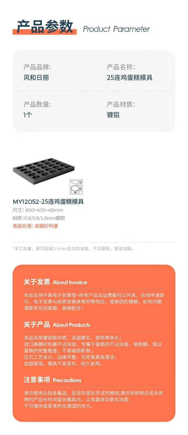 咏幻商用鸡模具25连老式无水面包烘焙烤箱用不沾圆烤盘 my12052