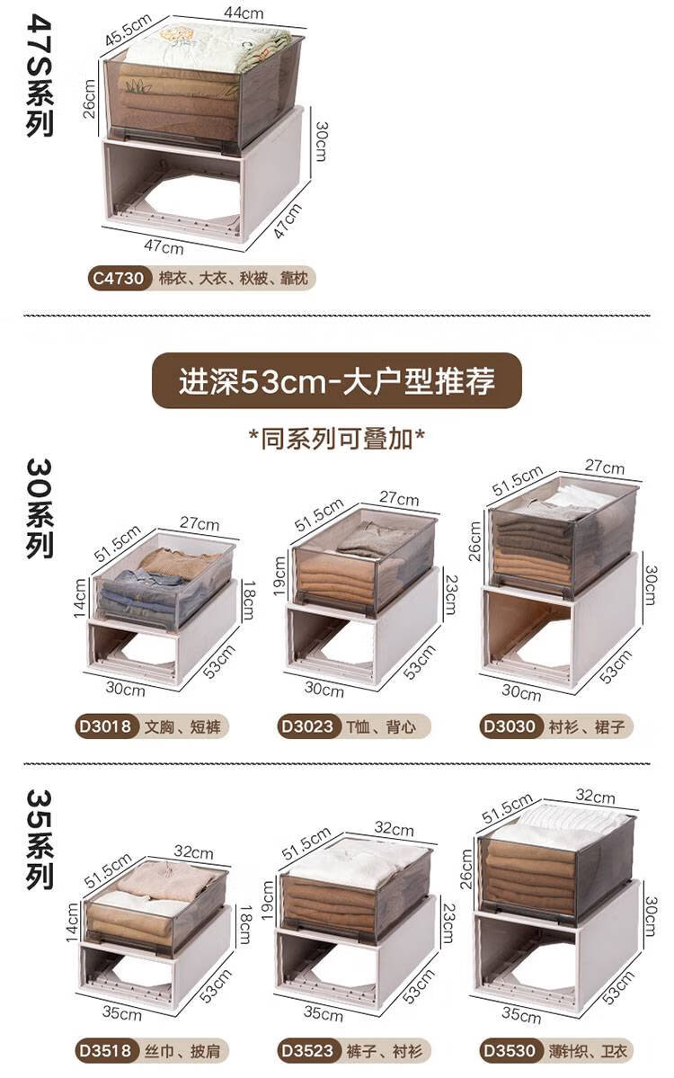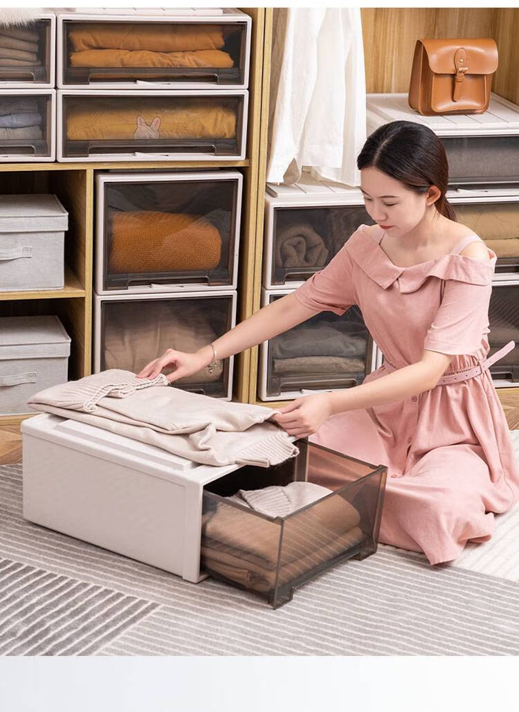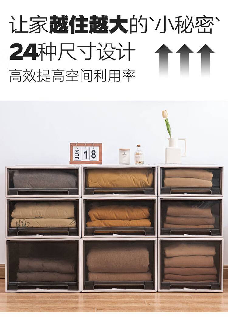Kleiderschrank-Aufbewahrungsbox, Schubladen-Aufbewahrungsbox, Heim-Kleiderschrank, Kleidungs-Aufbewahrungsbox, Kunststoff-Kleidungsaufbewahrung, Aufbewahrungsschrank, Exportmodell 3523, Tiefe 47 x Breite 35 x Höhe 23 cm, Sonderpreis, eine Packung, braun