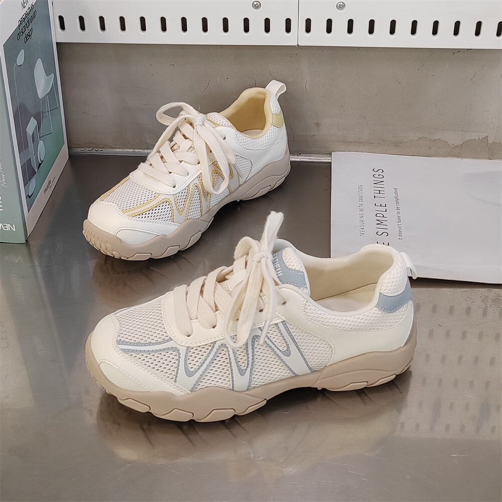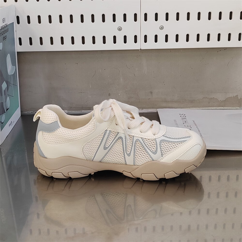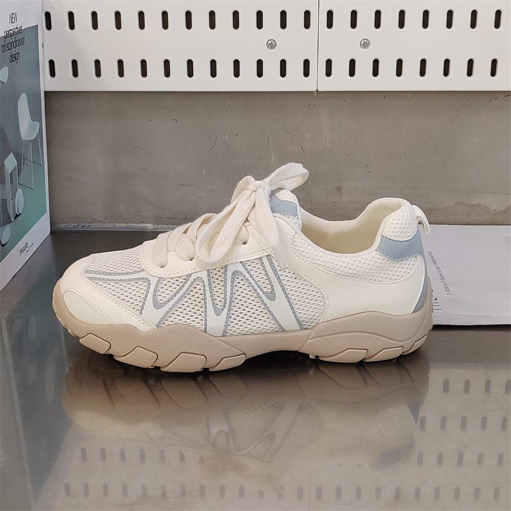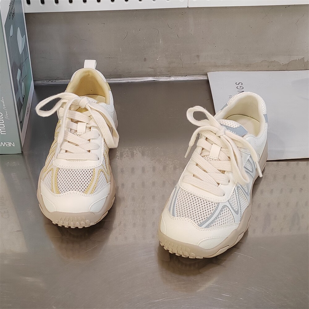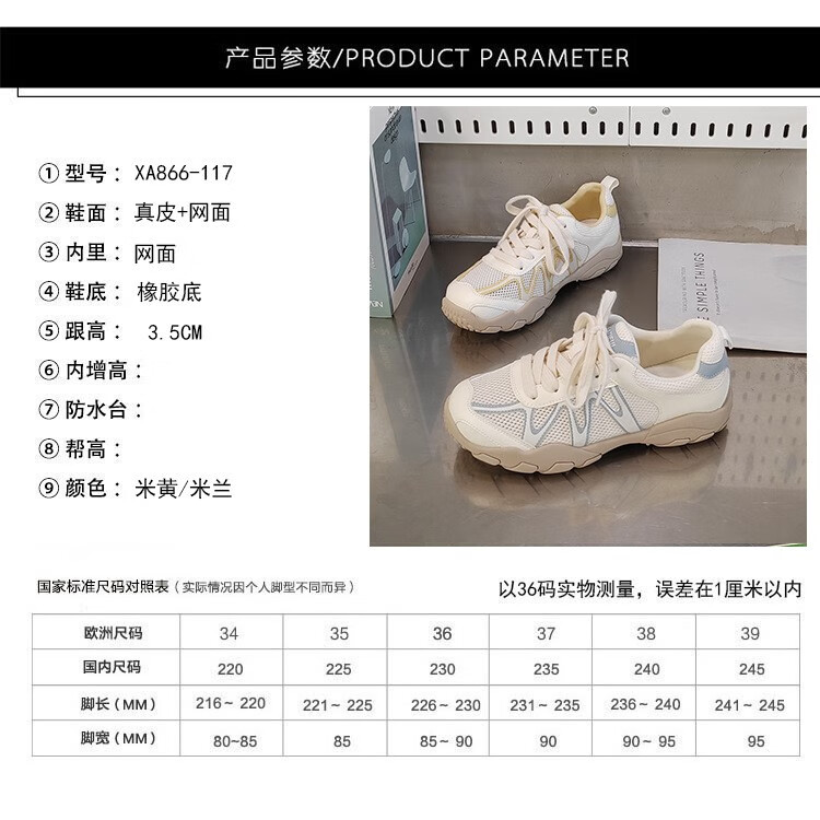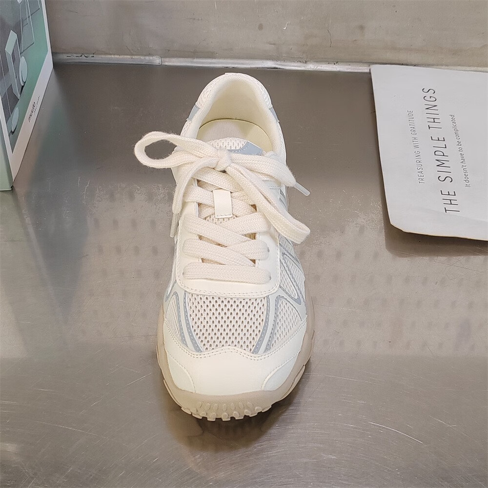 真皮网面小白鞋透气鞋子夏款2025新款夏季单网运动鞋轻便软底 米兰xa866-117 36