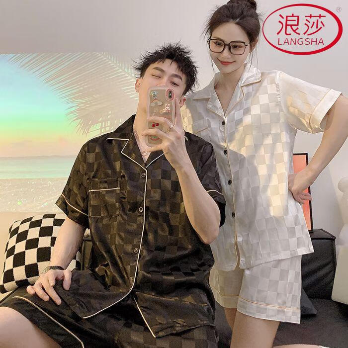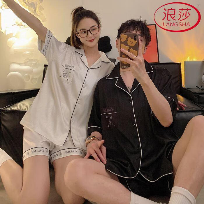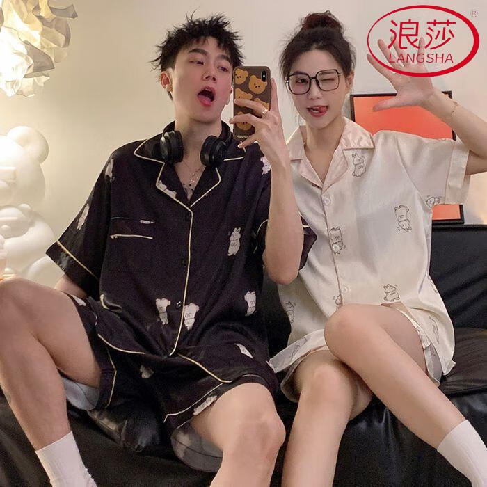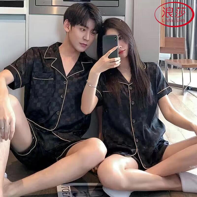 浪莎(LangSha)加大码300斤情侣睡衣女夏季短袖冰丝薄款肥大宽松男士家居服套装 单套冰丝  679 L 男(90-120斤)
