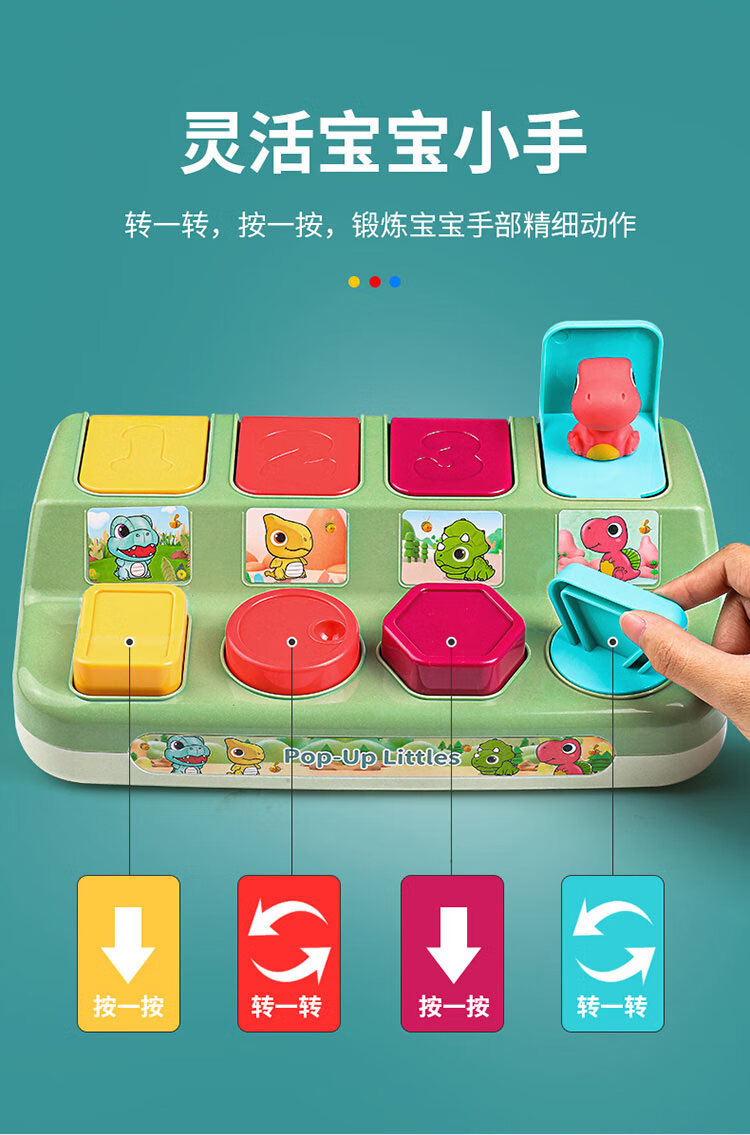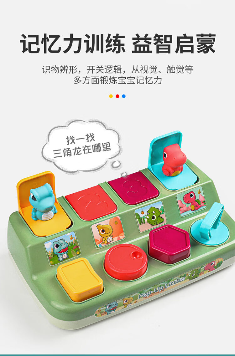 Peek-a-boo Pop-up-Ursache-Wirkungs-Spielzeug, Dinosaurier-Schaltkasten, Knopfkasten, Überraschungsbox, Baby-Puzzle, 1–3 Jahre alt, Dinosaurier-Schaltkasten