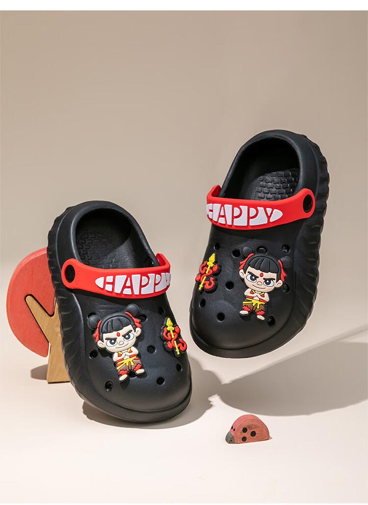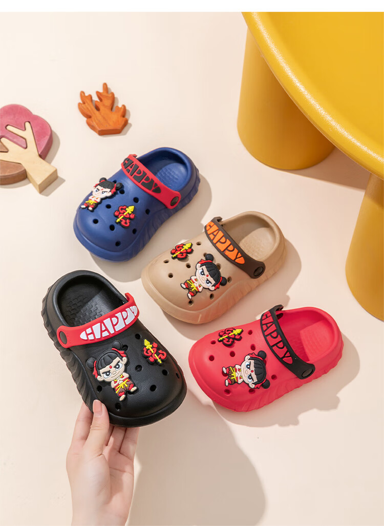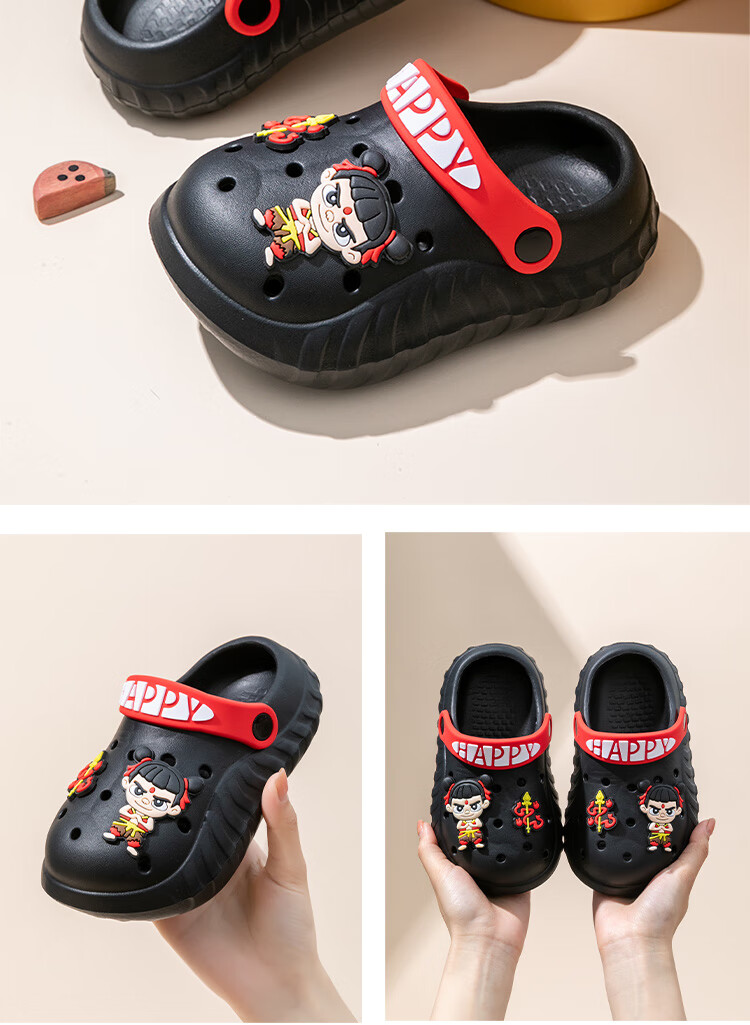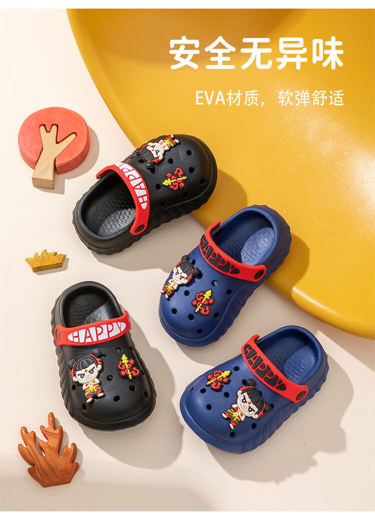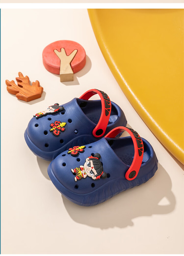 哪吒EVA儿童洞洞鞋夏季室内软底防滑男女童包头鞋中大童卡通拖鞋 【EVA高弹防滑升级版】蓝色 32 内长20.5cm