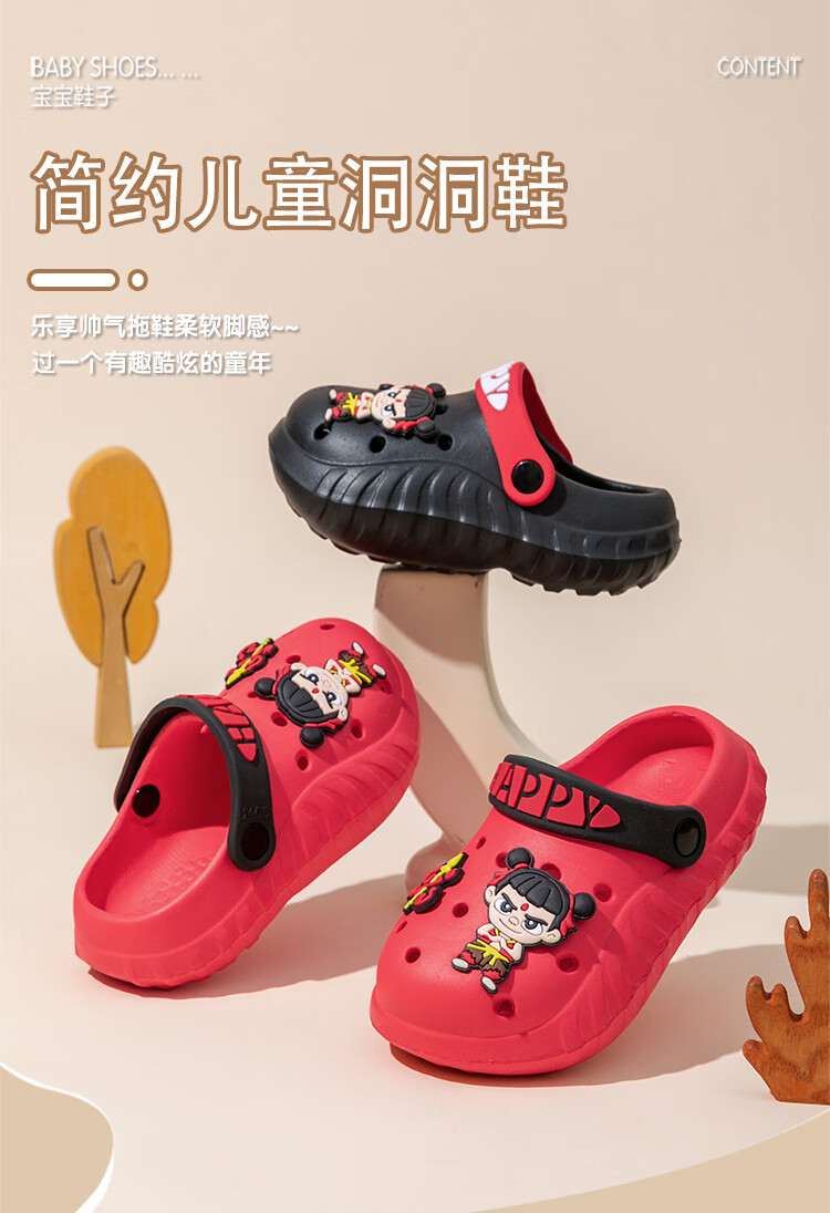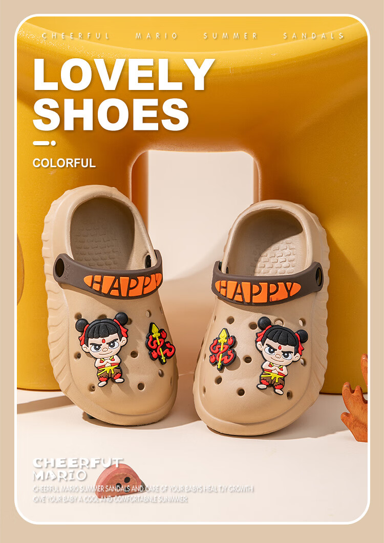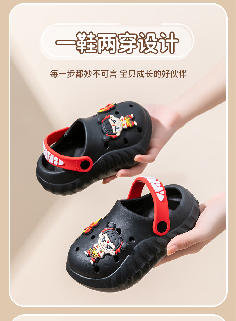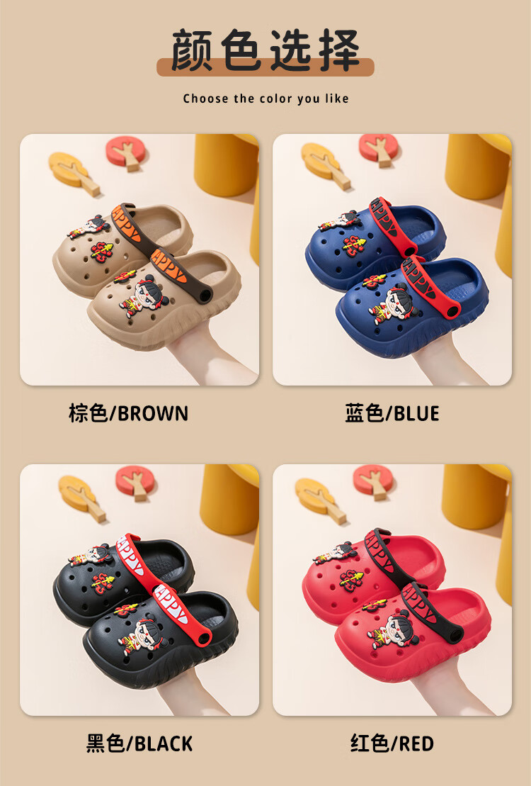 哪吒EVA儿童洞洞鞋夏季室内软底防滑男女童包头鞋中大童卡通拖鞋 【EVA高弹防滑升级版】蓝色 32 内长20.5cm
