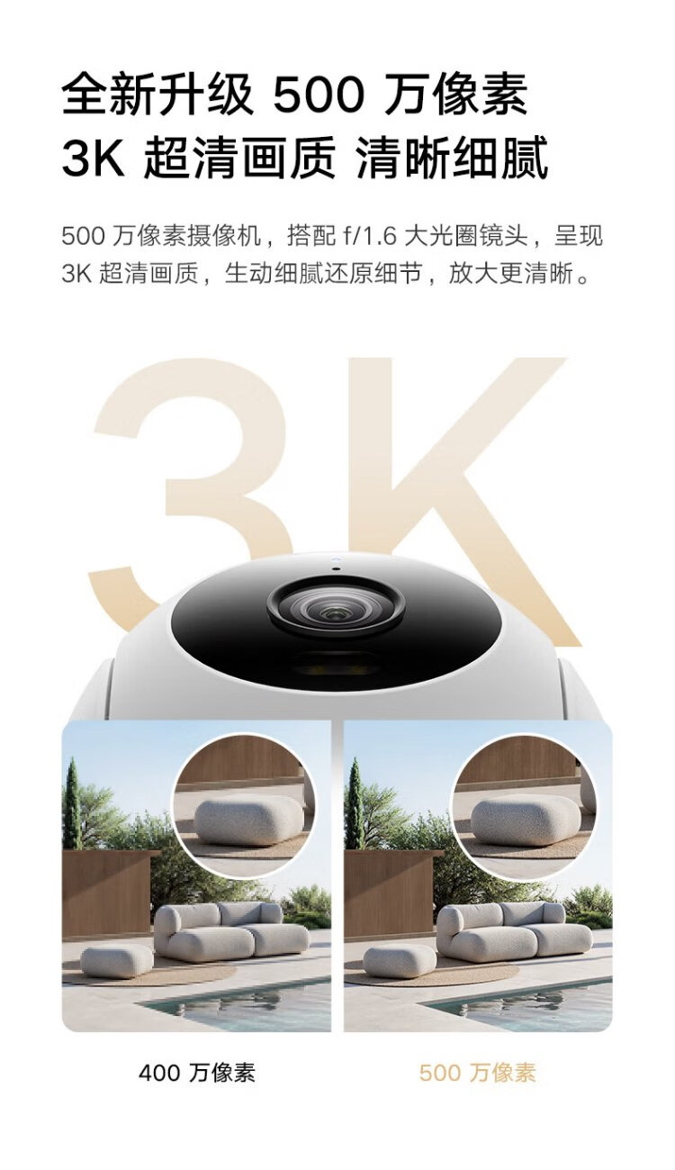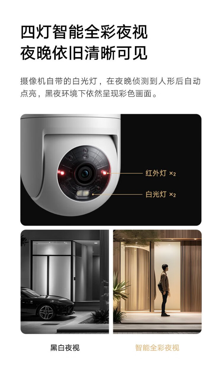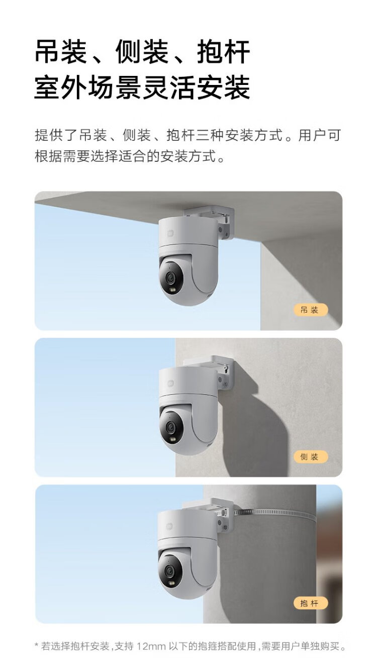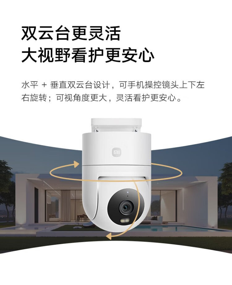 Caméra extérieure Xiaomi (MI) 4C Moniteur domestique de 5 millions de pixels 360 degrés sans angles morts avec vision nocturne Caméra de surveillance extérieure panoramique en couleur à vision nocturne 5 millions de nouveaux produits Caméra extérieure Xiaomi 4C