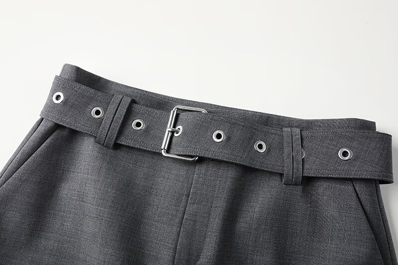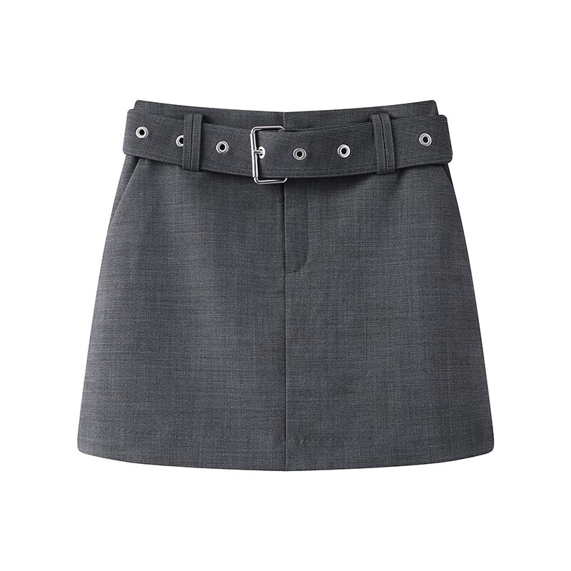 AQFB艾诺丝佳瑛官方旗舰店2025春款腰带高腰显瘦A字半身裙短裙女3523 烟灰色 213523 S