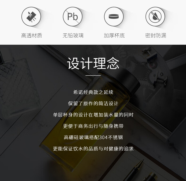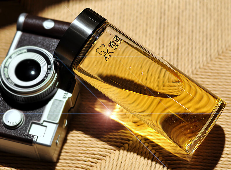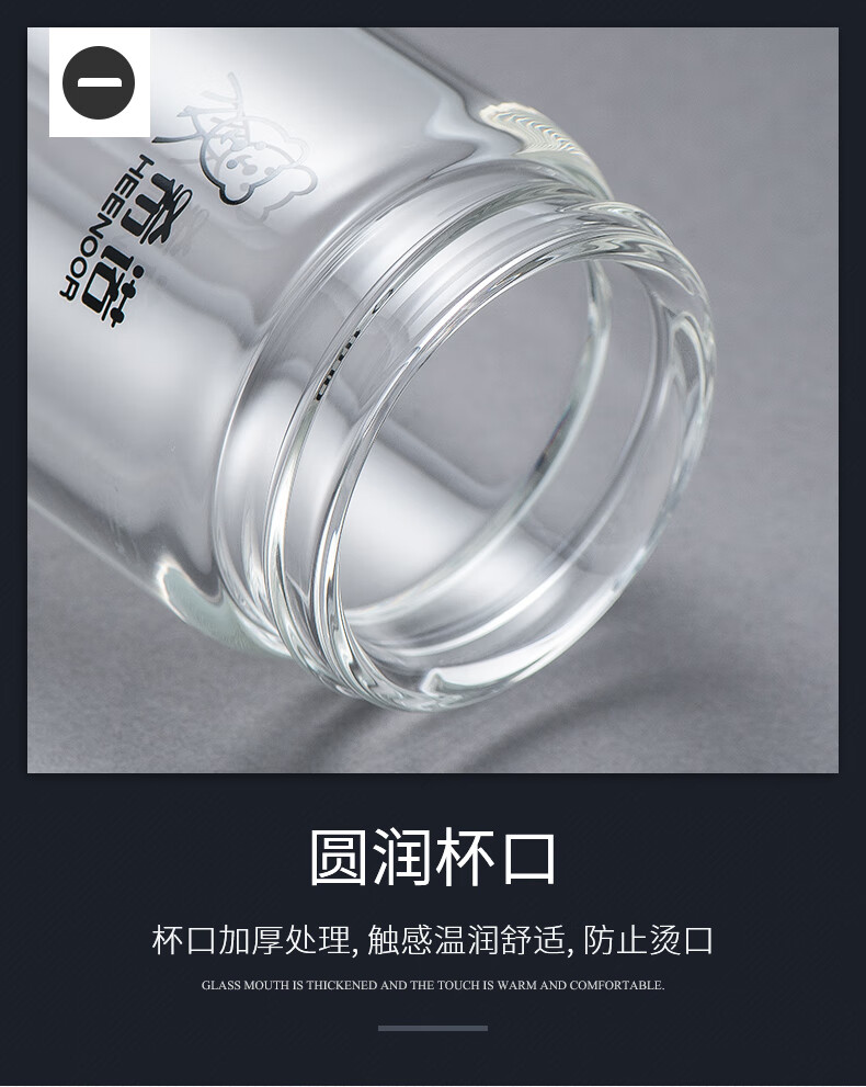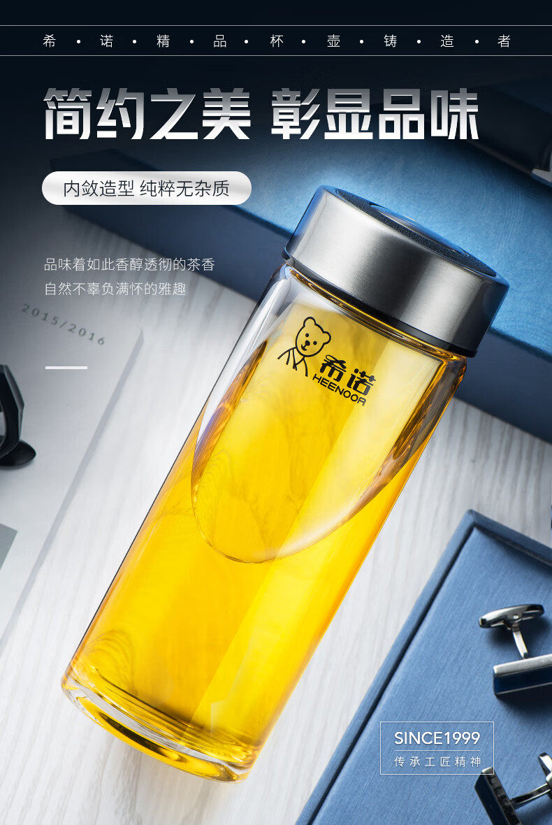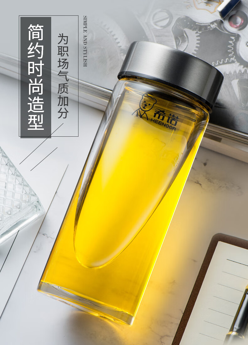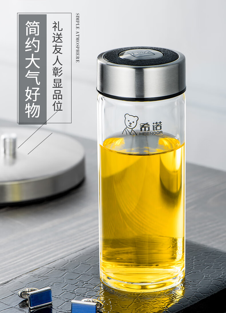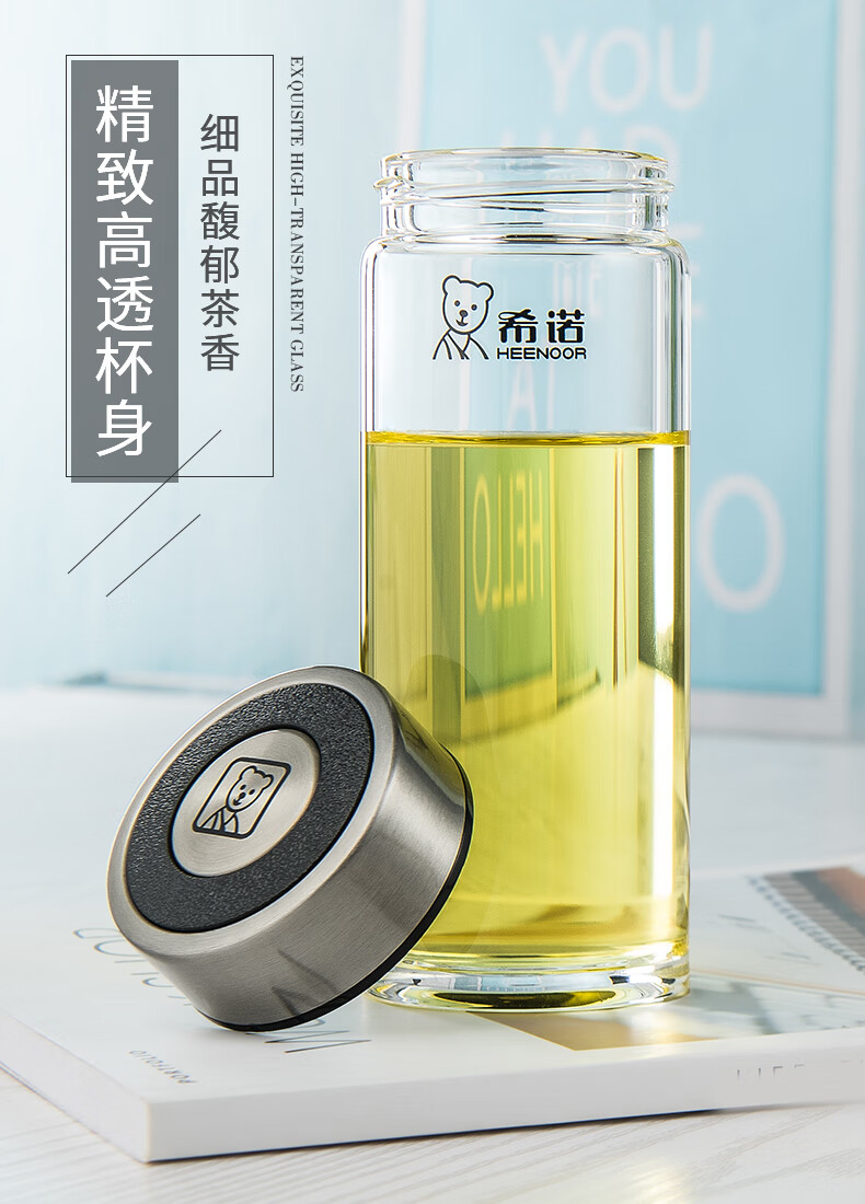 Heenoor taza de té de vidrio de una sola capa taza de agua portátil para hombres y mujeres montada en el automóvil engrosada y resistente 6195-azul negro con filtro original P400ml