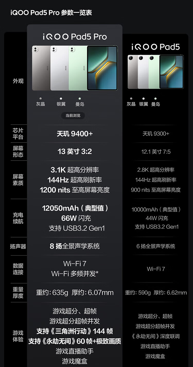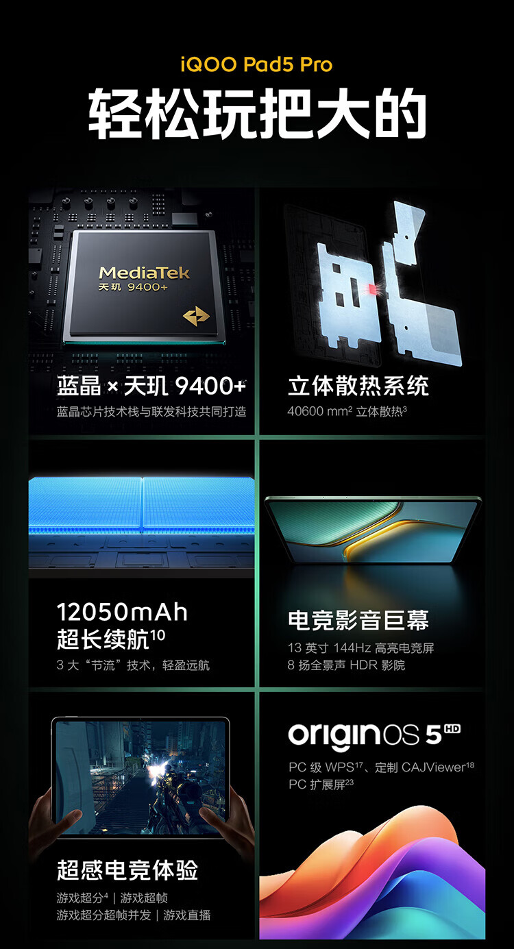 Tableta vivoiQOO Pad5 Pro cristal azul Dimensity 9400+ sistema de enfriamiento tridimensional Batería de duración ultralarga de 12050 mAh experiencia súper sensorial video de juegos pantalla gigante Pad5 Pro cristal gris 16 GB + 512 GB configuración estándar oficial
