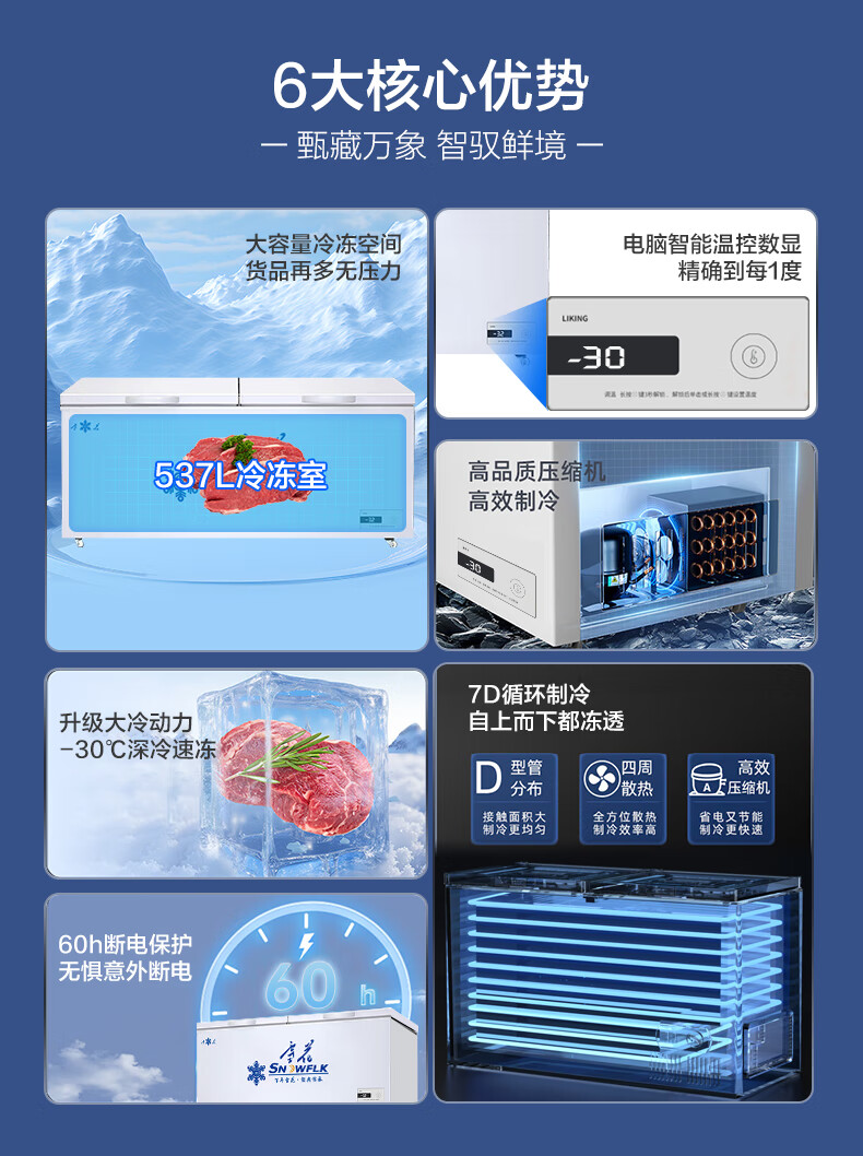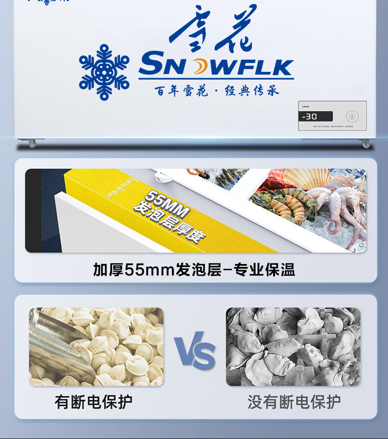 雪花冰柜商用家用冷柜卧式大容量全冷冻柜展示柜一级节能省电 668双温丨一级节能丨减霜80%