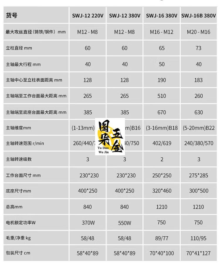 XMSJ电动攻丝机攻牙机台式功牙丝机swj-16多功能丝攻机swj-12TD 全铜轻型款SWJ-12370W单