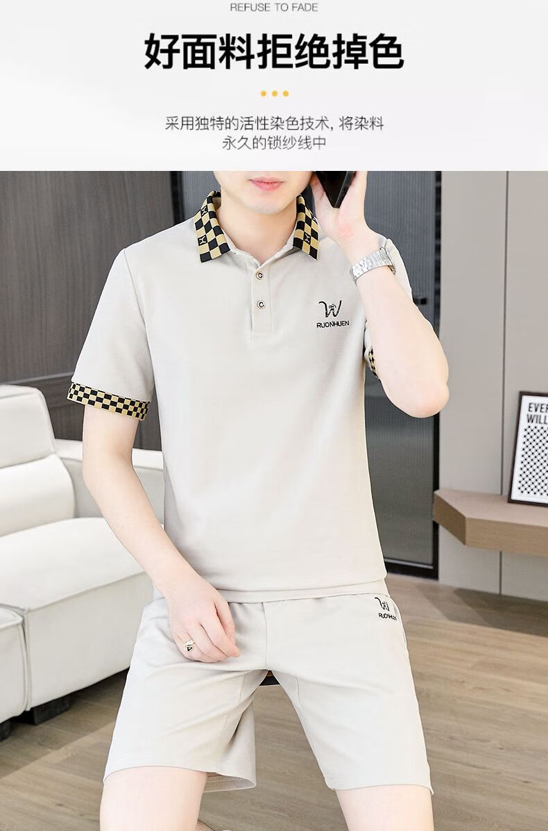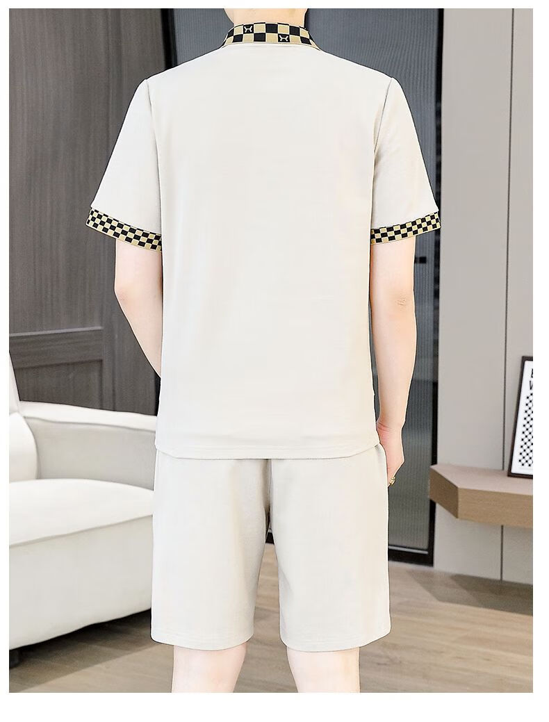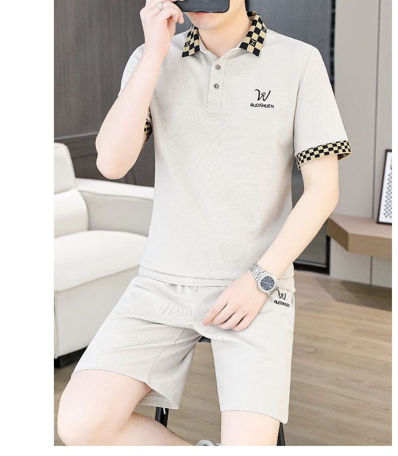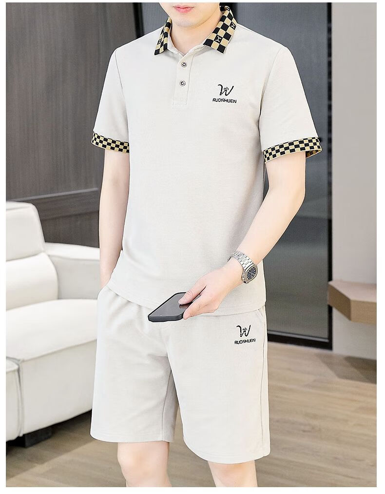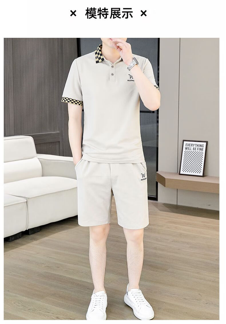 花花公子(PLAYBOY)夏季男士套装短袖POLO衫潮流一套搭配休闲男装夏装t恤短裤二件套 TZ9902米色 M