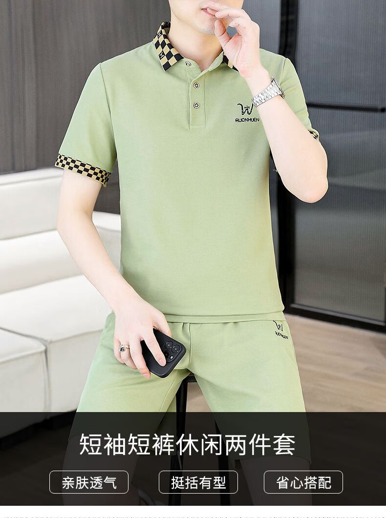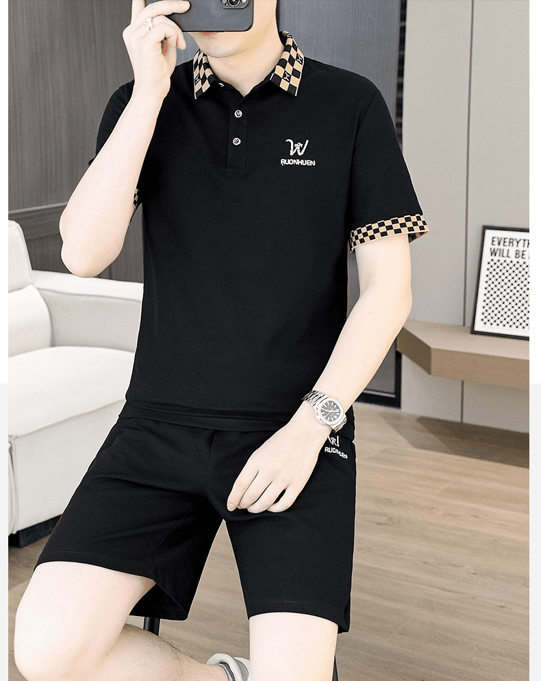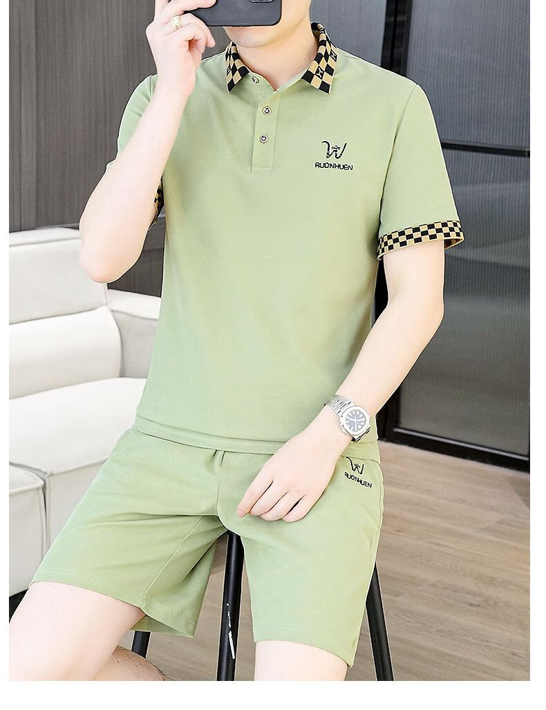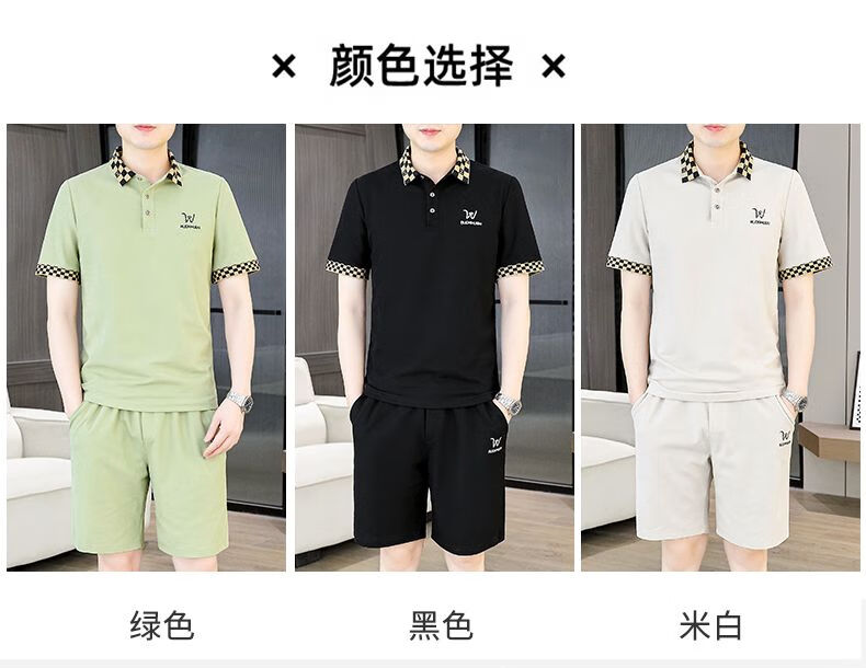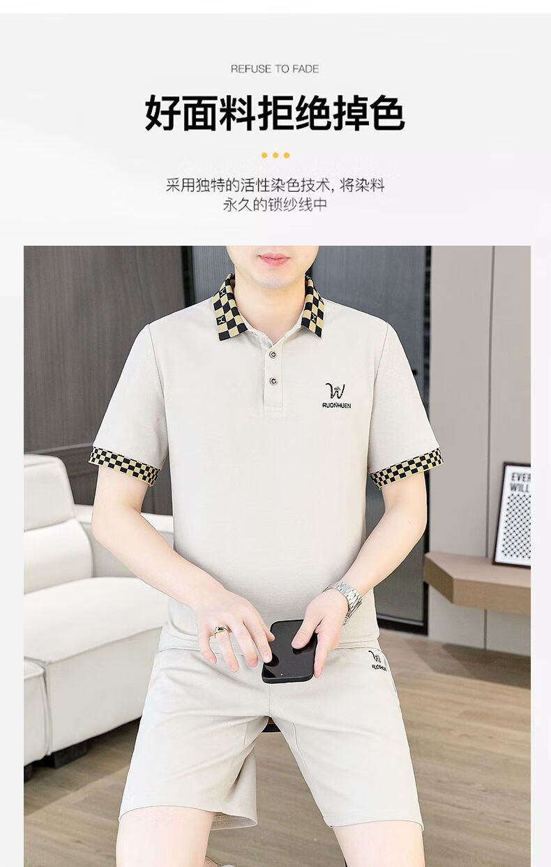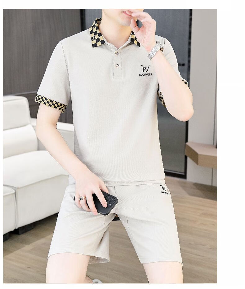 花花公子(PLAYBOY)夏季男士套装短袖POLO衫潮流一套搭配休闲男装夏装t恤短裤二件套 TZ9902米色 M