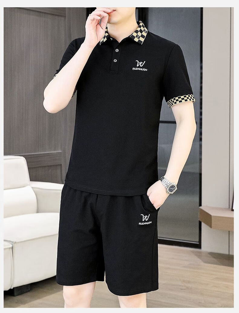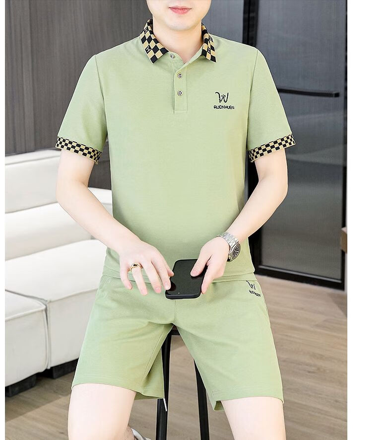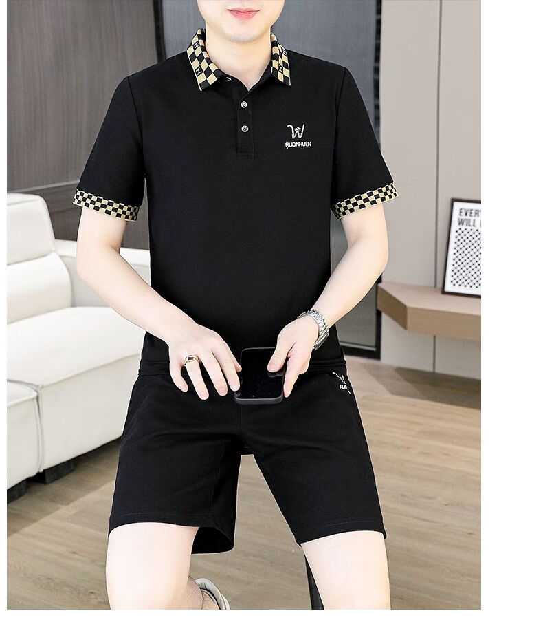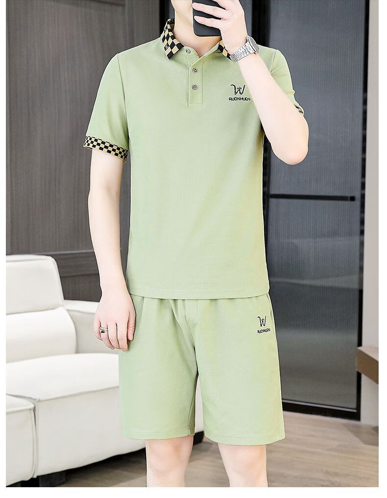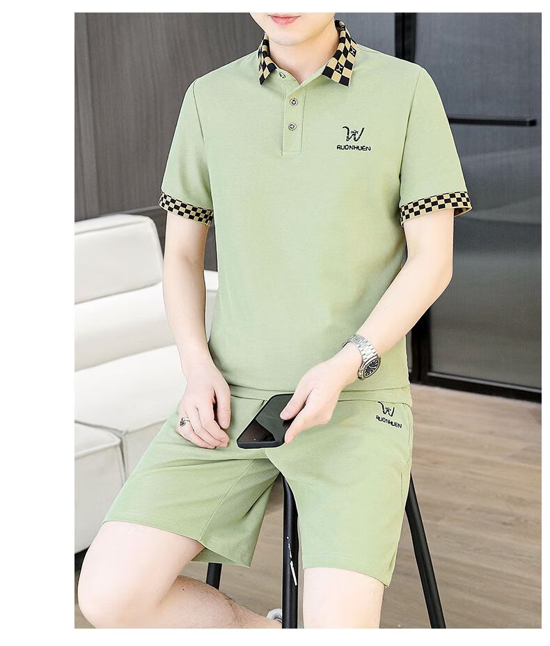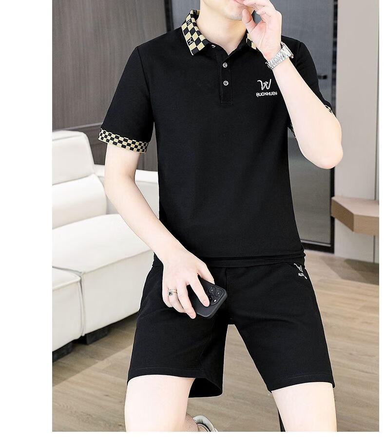 花花公子(PLAYBOY)夏季男士套装短袖POLO衫潮流一套搭配休闲男装夏装t恤短裤二件套 TZ9902米色 M