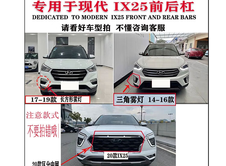 适用于14161820北京现代ix25前后保险杠IX25前后护杠包围改装 14-16ix25.护杠A款.二代新料 前护杠