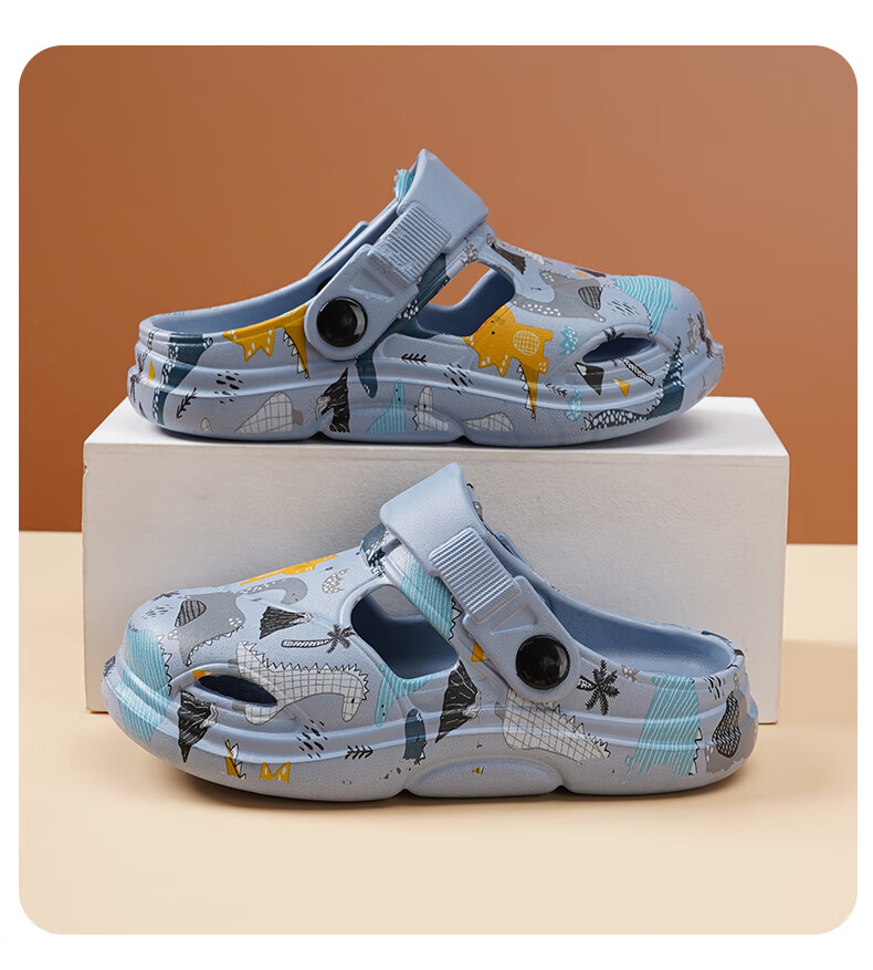 鸿星童尓克男童拖鞋夏款室内防滑2025新款儿童两穿洞洞鞋男孩沙滩鞋夏天 A5802蓝色 单层 32 码