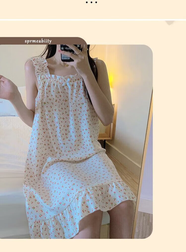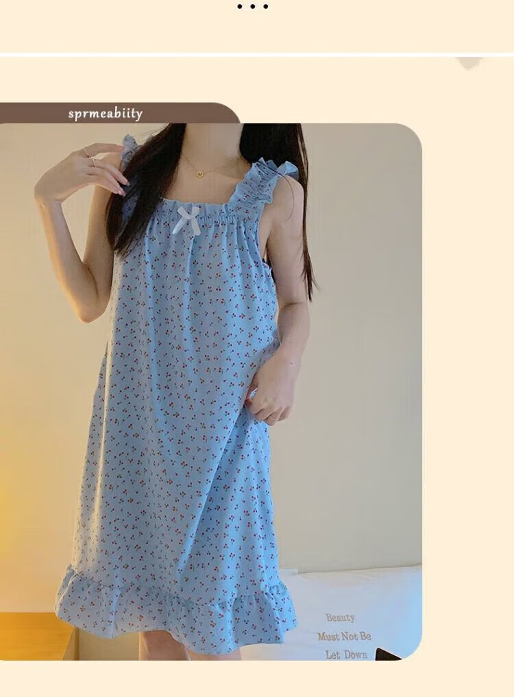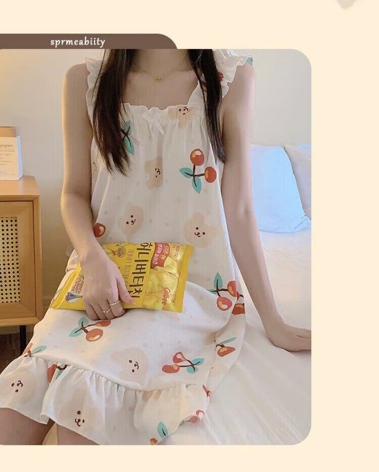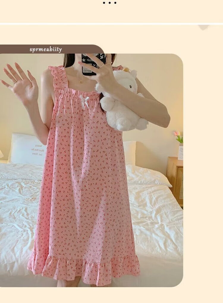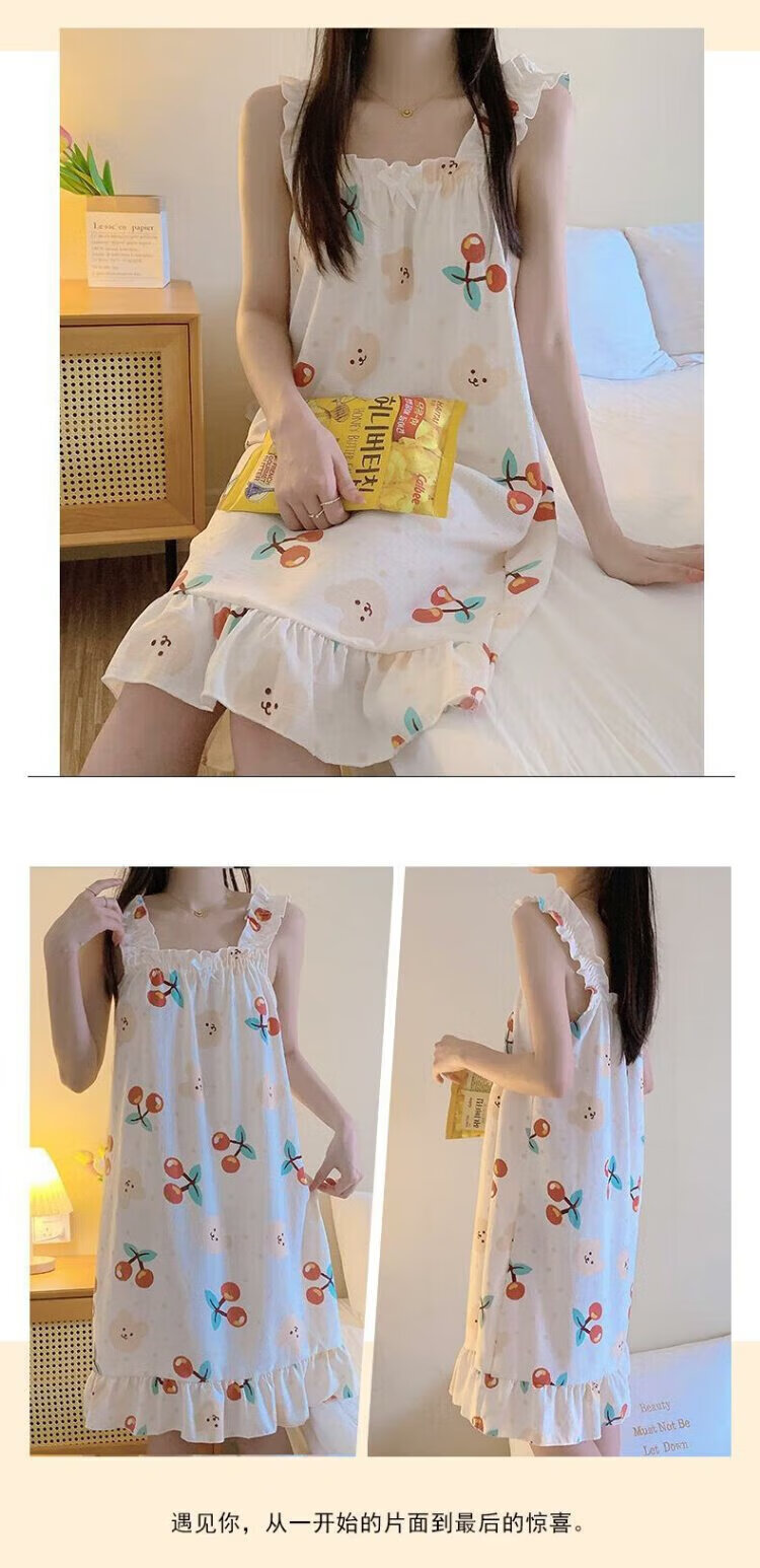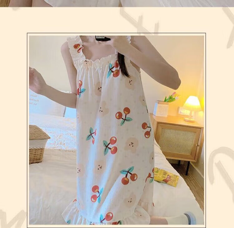 桑琴夏季吊带睡衣女连衣裙可爱睡裙少女高中学生棉纱布薄款家居服MJF_ MJF_9272#背心裙 樱桃小熊 M 160
