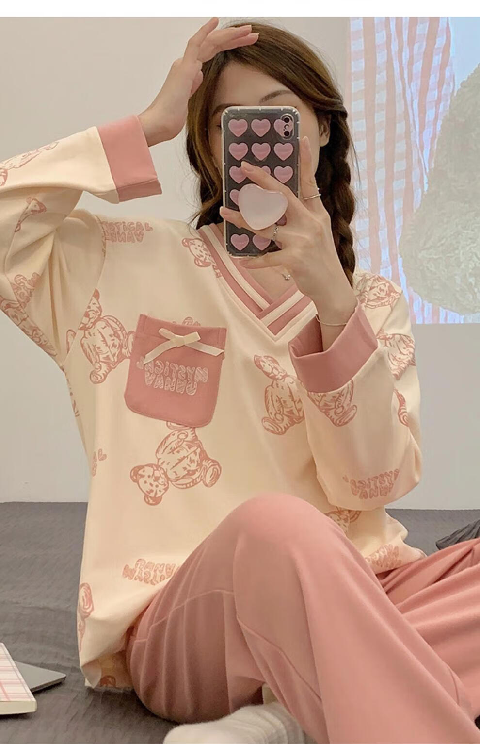 胖东来睡衣女春秋季纯棉韩版长袖长裤卡通套装可外穿夏秋冬款大码家居服 GXT9928 M (建议75-95斤)