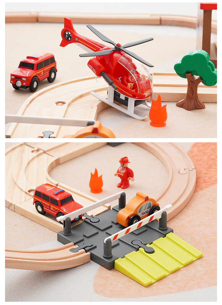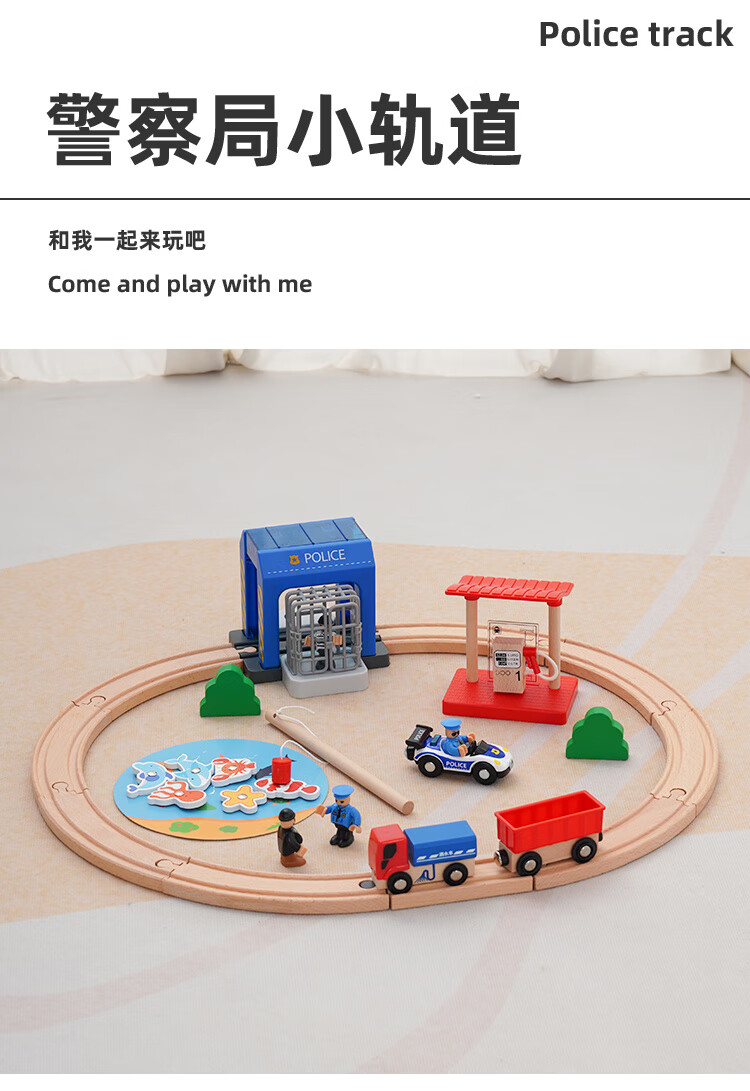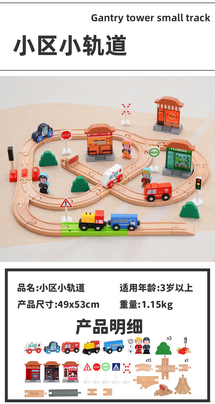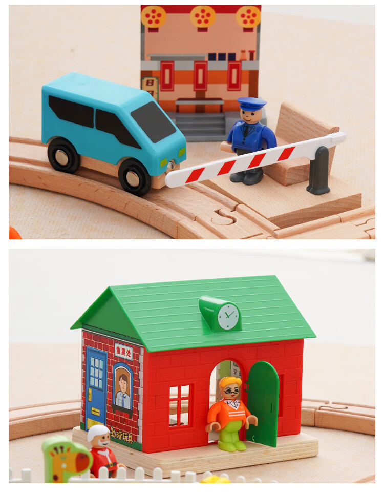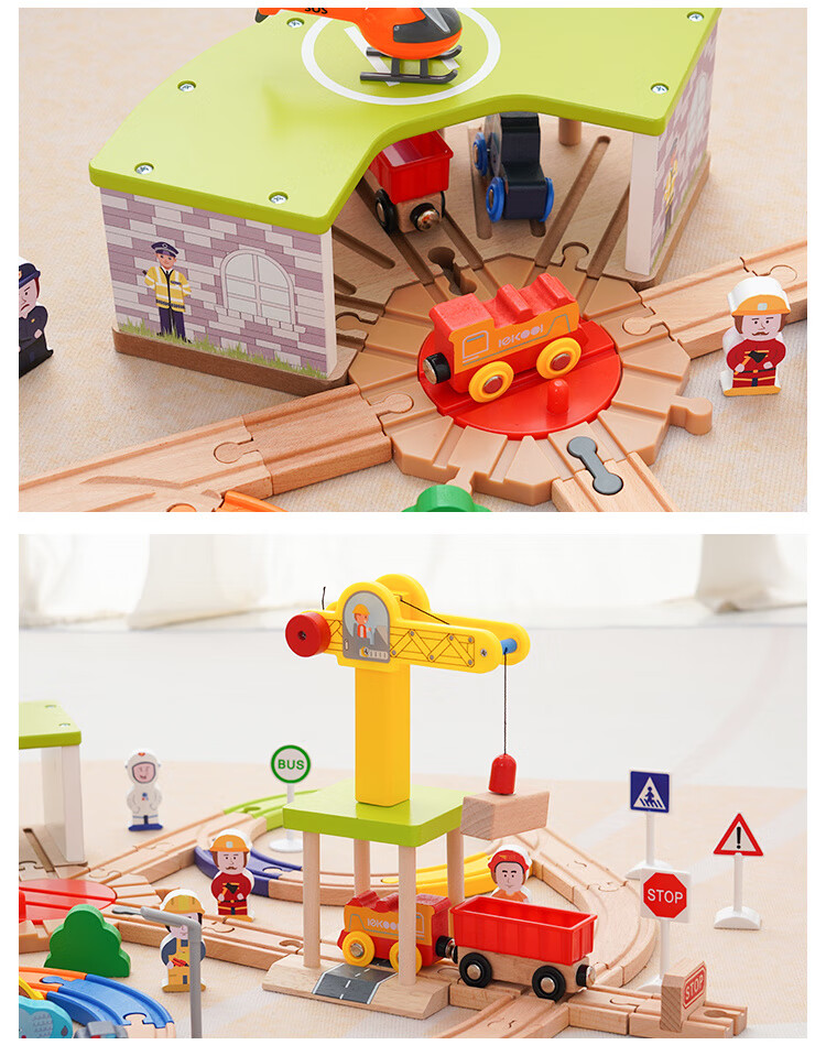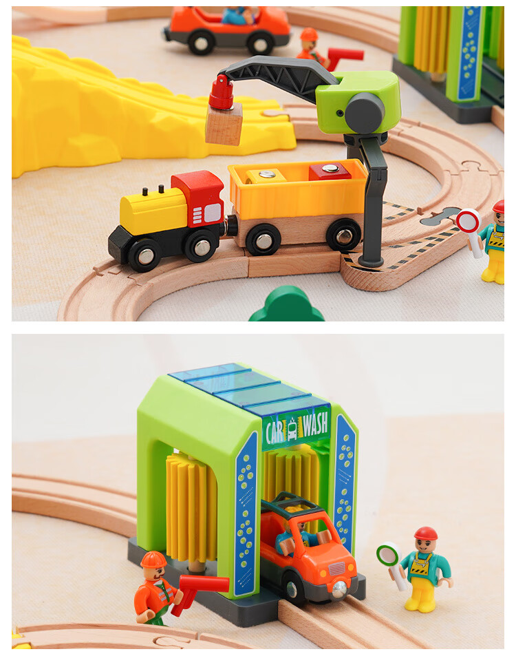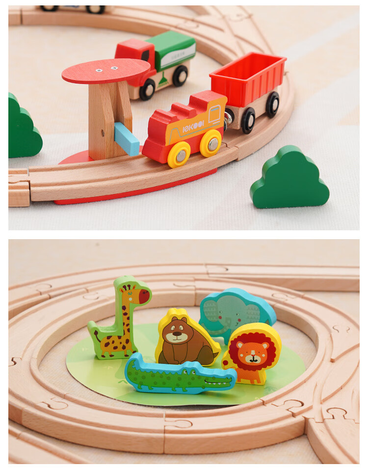 Qiyoubao wooden small train track set magnetic locomotive 3-5-7 year old boy building blocks children's toys mountain small track