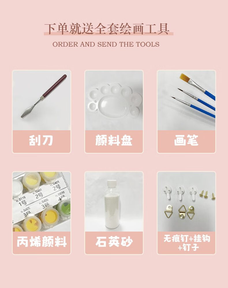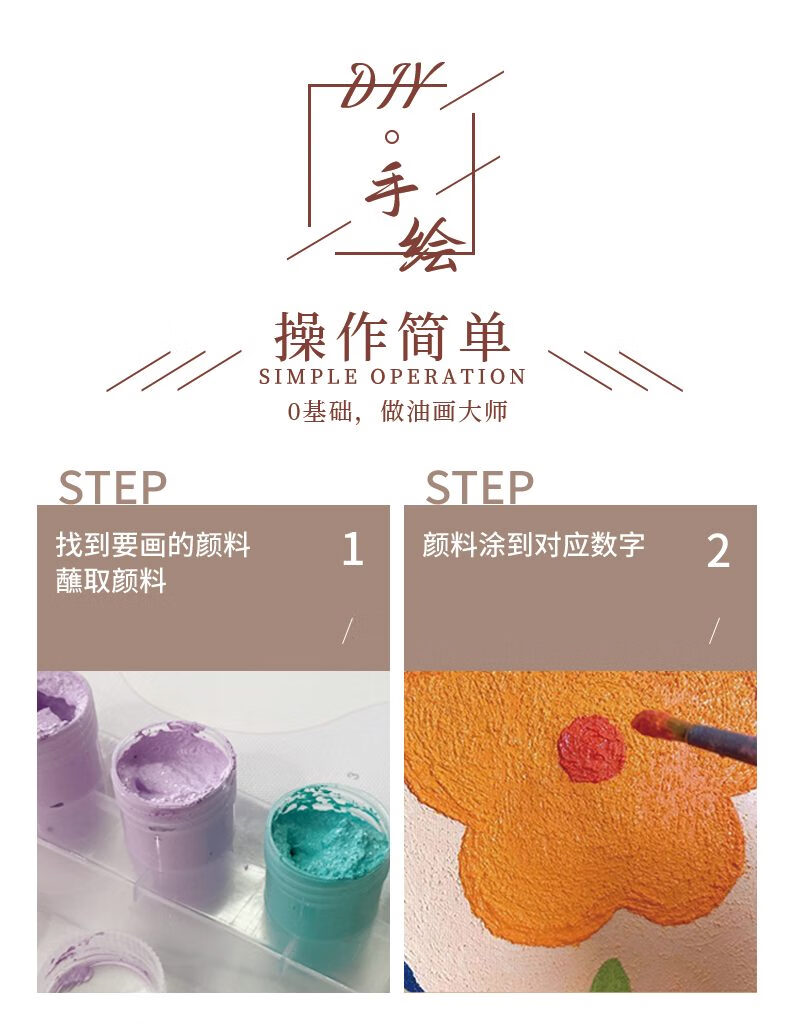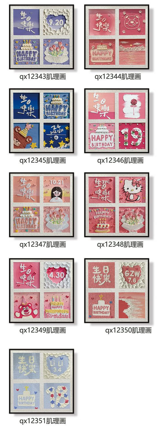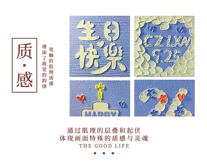 CLCEY生日快乐四宫格肌理画石英砂丙烯diy定制数字油画手工礼物装饰画 qx12350肌理画 20*20cm加厚实木内框小尺寸不好