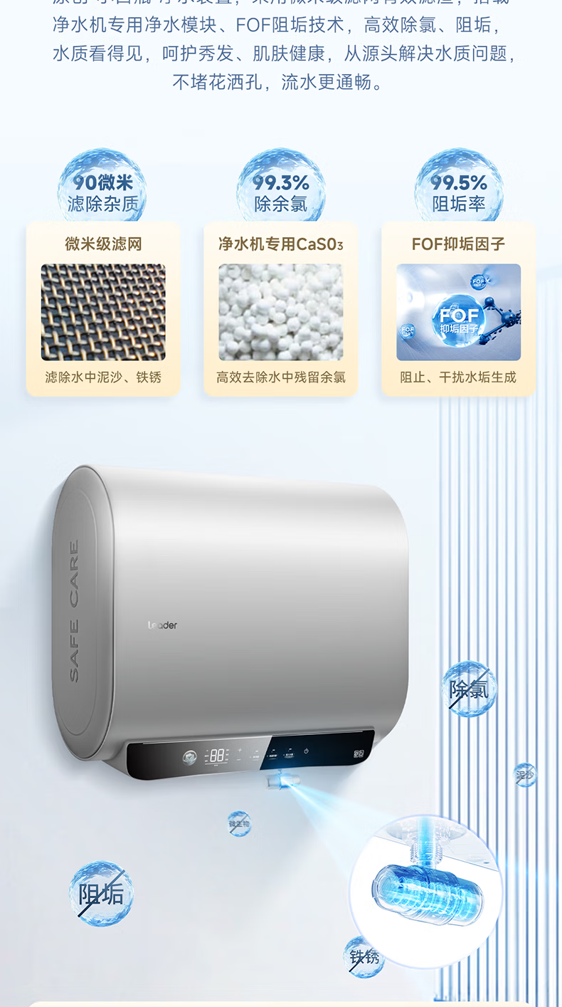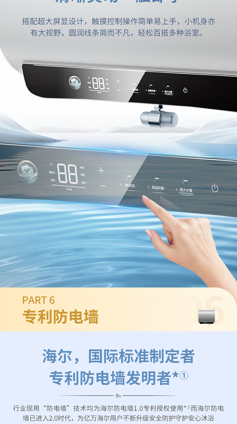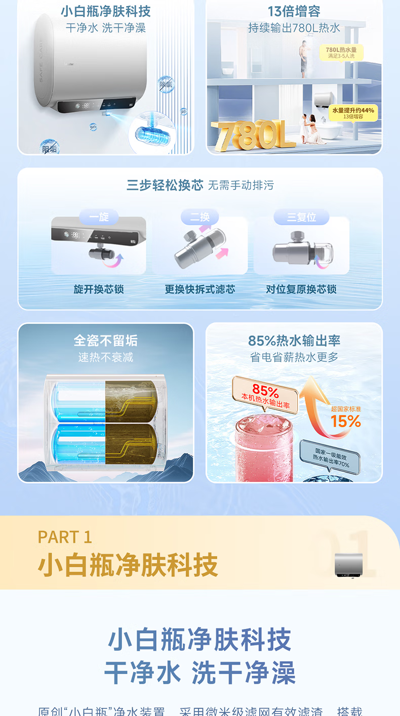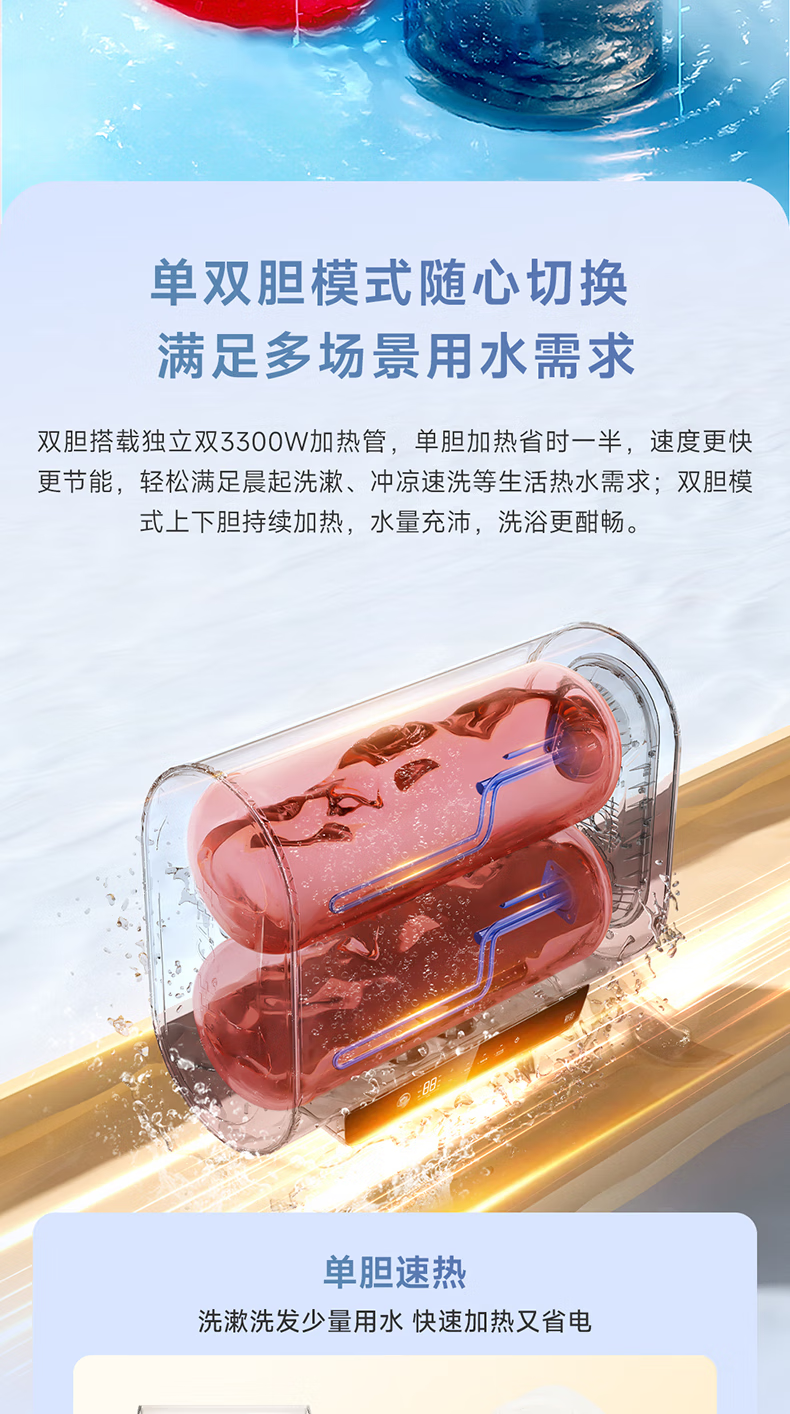 Haier produces Commander 60-liter flat barrel double-gallon electric water heater, small white bottle, small blue bottle, maternal and infant grade skin cleansing wash, first-class energy-saving inner tank, no-wash magnesium rod, no need to replace, short style, fast heating NH11 60L 2200W 695 short style/large water volume/anti-scale purifying water wash