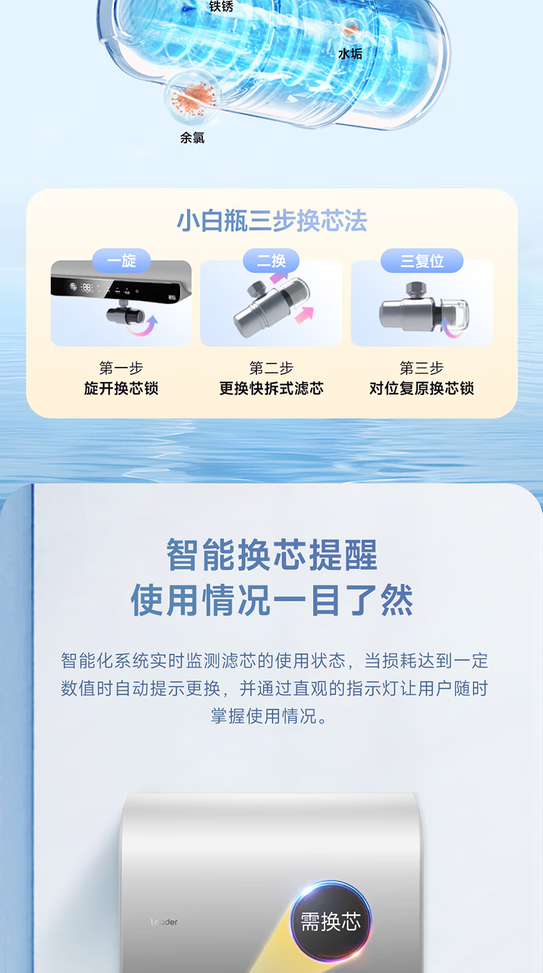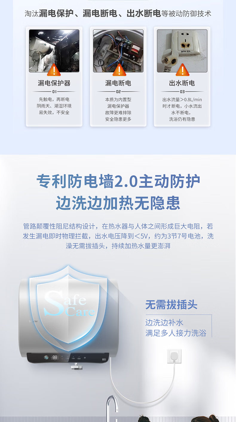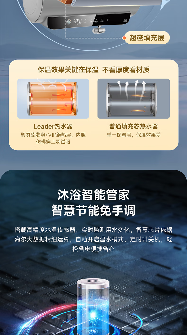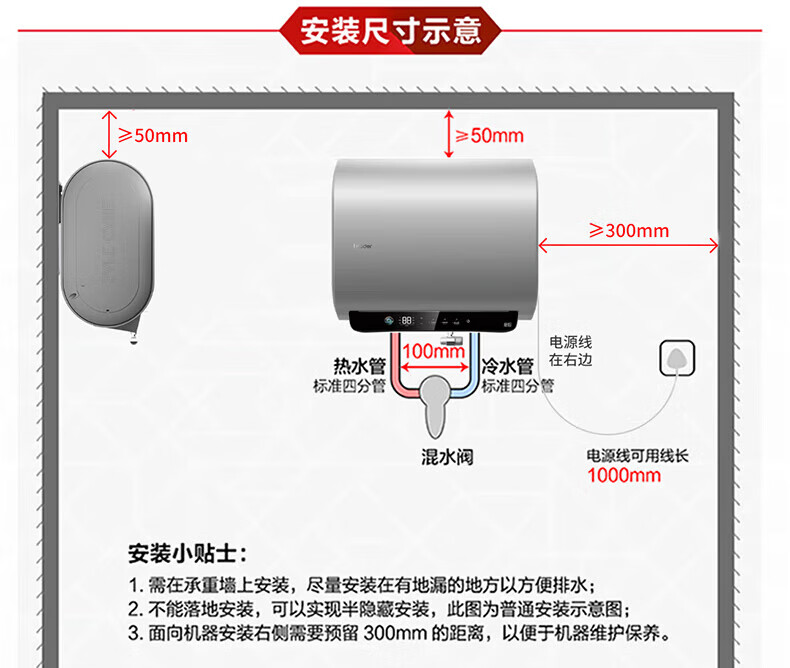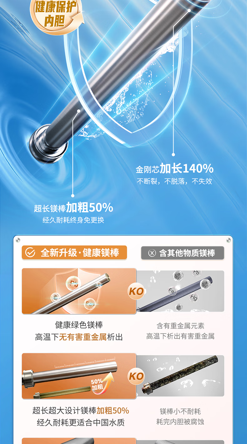 Haier produces Commander 60-liter flat barrel double-gallon electric water heater, small white bottle, small blue bottle, maternal and infant grade skin cleansing wash, first-class energy-saving inner tank, no-wash magnesium rod, no need to replace, short style, fast heating NH11 60L 2200W 695 short style/large water volume/anti-scale purifying water wash