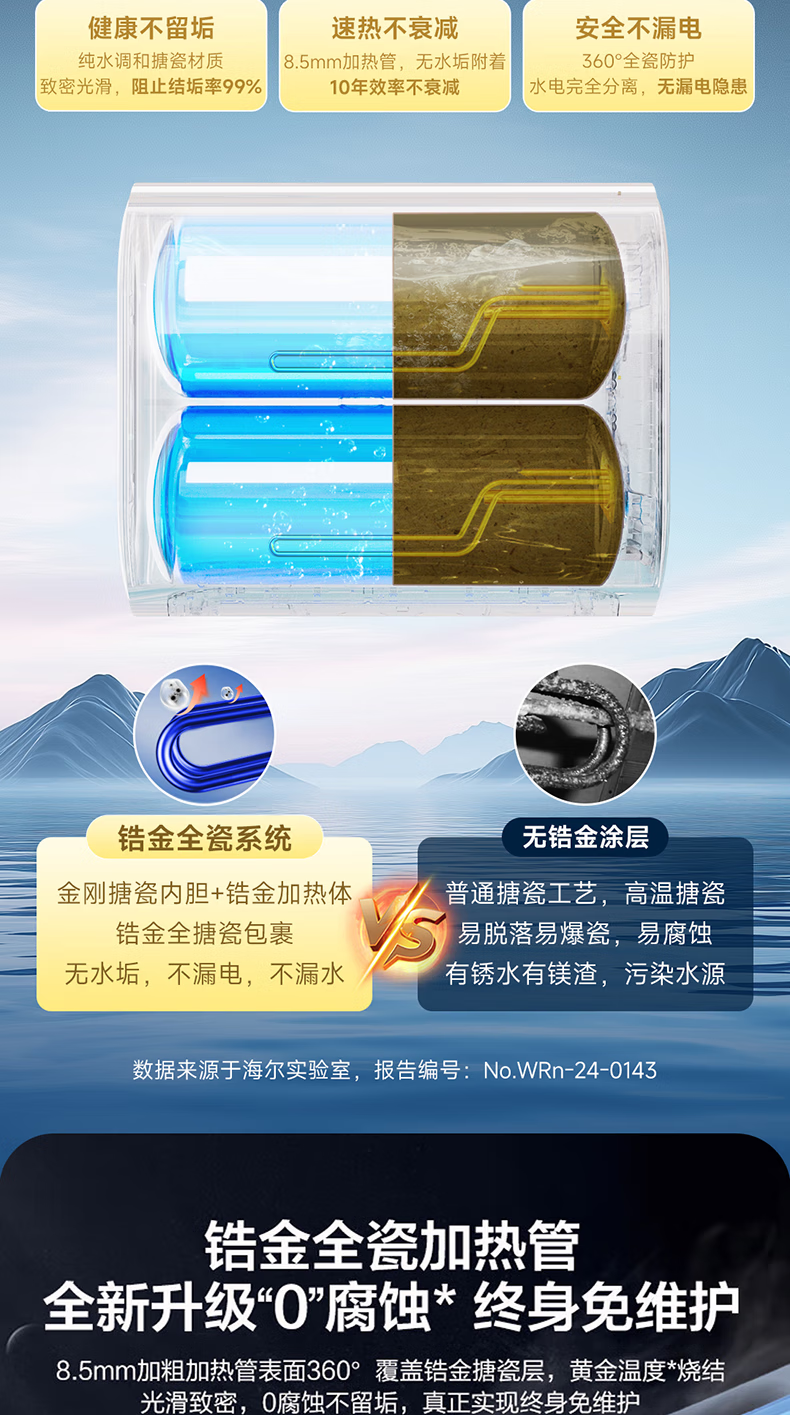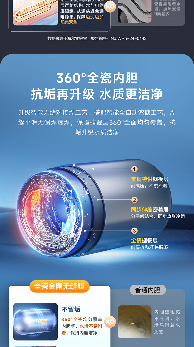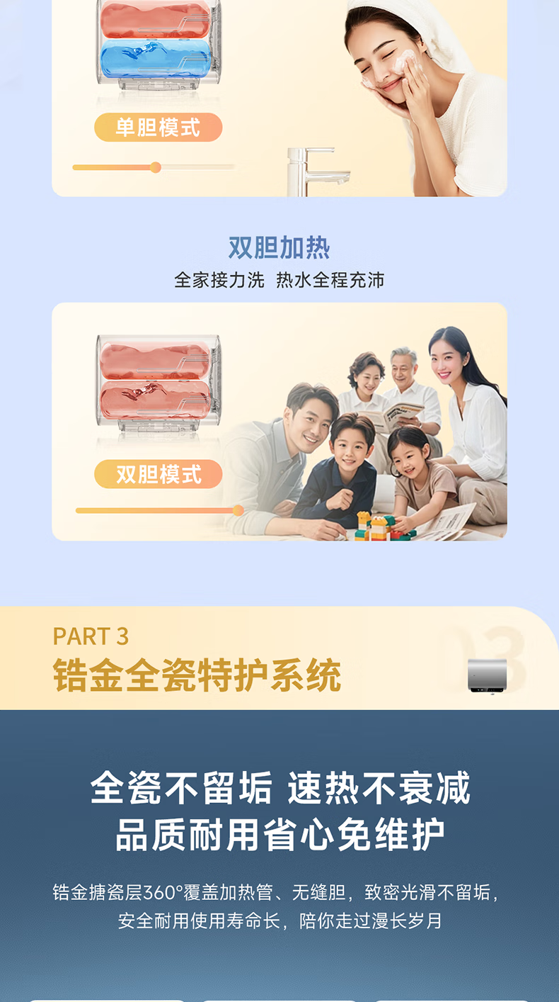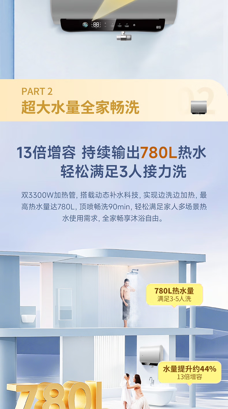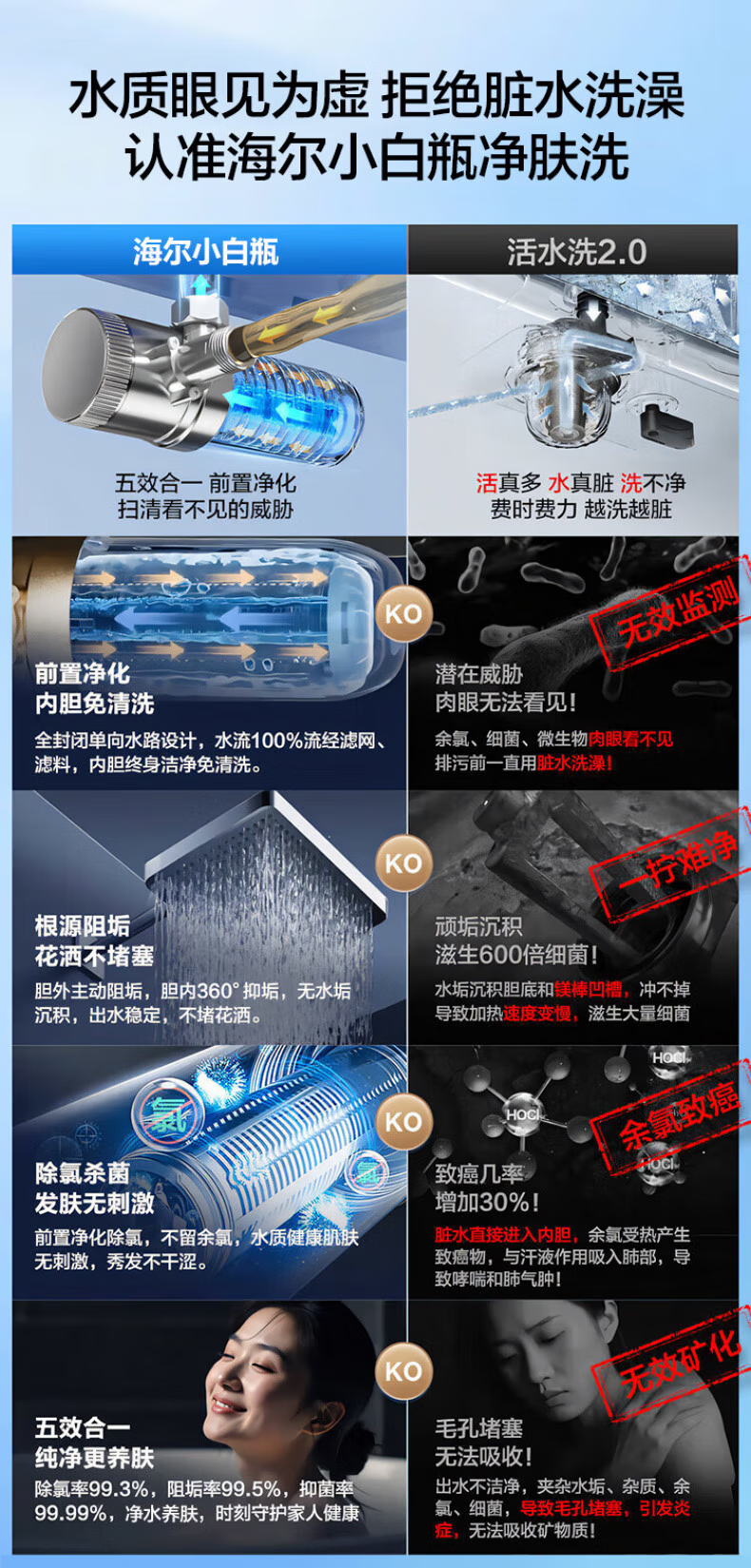 Haier produces Commander 60-liter flat barrel double-gallon electric water heater, small white bottle, small blue bottle, maternal and infant grade skin cleansing wash, first-class energy-saving inner tank, no-wash magnesium rod, no need to replace, short style, fast heating NH11 60L 2200W 695 short style/large water volume/anti-scale purifying water wash