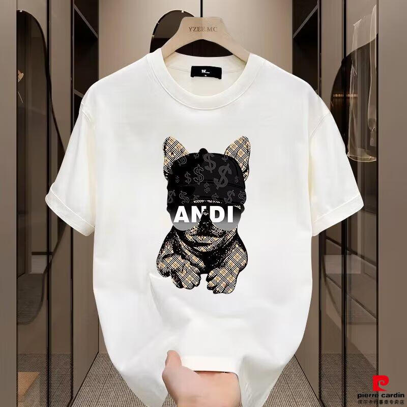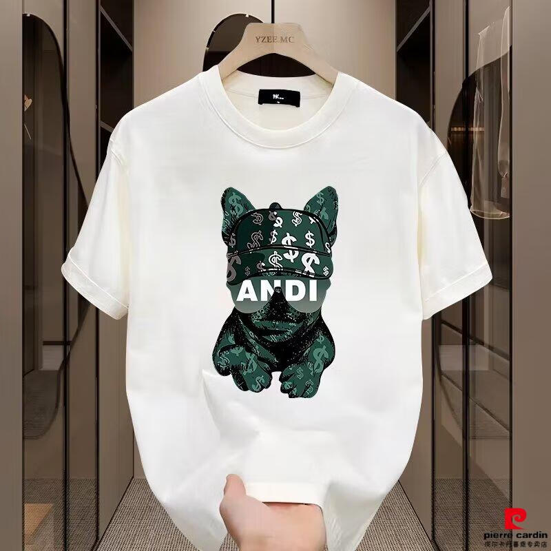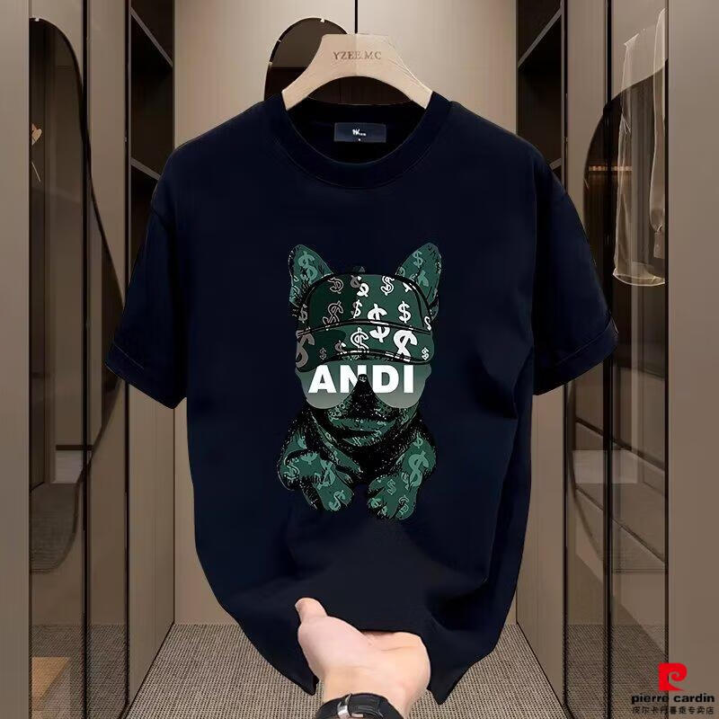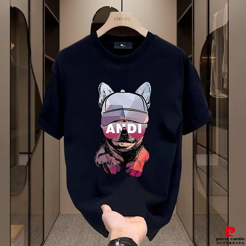 皮尔卡丹欧美潮牌夏季纯棉短袖t恤男2025新款体恤宽松大码情侣装男士半袖 V691黑色 S